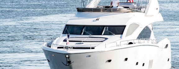 Built in 2004, the 82′ (24.9m) Sunseeker ALAINA is a flybridge motor yacht with full walk-around side decks and features both a spacious interior and exterior layout. She can accommodate 8 guests in 4 well-appointed staterooms, with a full beam master amidships which is finished in gorgeous cherry wood. Her teak deck has been replaced and her A/V system has been updated with the installation of 40″ Sony Bravia TVs, DirecTV, Apple TV and a Bose Lifestyle system.
