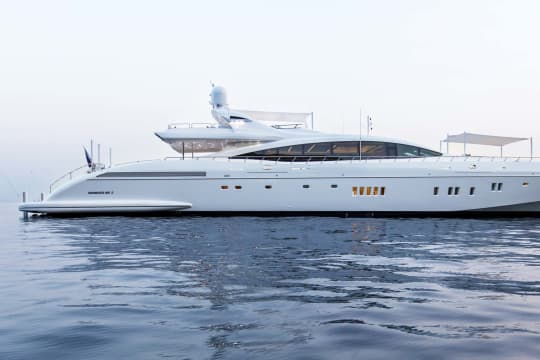 Built in 2010, this Sanlorenzo 88 offers sumptuous accommodation for up to 9 guests in 3 en-suite staterooms plus one convertible office cabin. An aft master stateroom is located on the lower deck level and is fitted with a walk-in wardrobe and large hammam shower. Additionally, she features a full-beam VIP en-suite cabin, a starboard […]