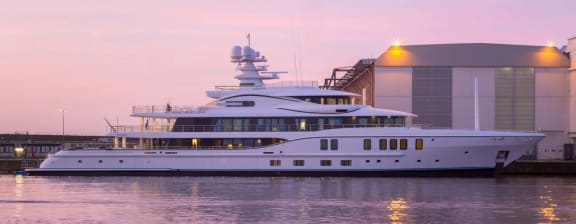 The new 74m Amels 242 Project FREEFALL emerged brielfy at the Dutch luxury yacht builder’s yard in Vlissingen, providing a glimpse into one of this years most exciting deliveries.