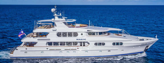 MAGIC was built in 2004 and refit in 2014. Designed by Setzer Design Group, she features generous accommodations for 10 guests in 5 staterooms. She was designed with a shallow draft of 6′ 8″ which is ideal for island cruising. Powered by MTU 12V 2000’s, she is both economical and performance oriented.