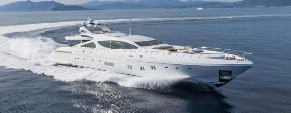 Built for an experienced yacht owner, MOONRAKER was launched by Overmarine in 2014 and is the 8th Mangusta 165, but the first in the yard’s new E, or EVOLUTION series. She boasts exterior designs by Stefano Righini and an elegant interior featuring over 250 textures and fine materials including exquisite stone, rare woods, mother of pearl, and luxurious leathers. MOONRAKER can sleep up to 10 guests in 4 spacious staterooms.