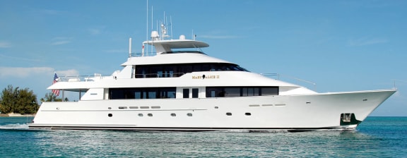 Launched in 2002, MARY ALICE II accommodates 10 guests comfortably in 5 staterooms. Powered by twin MTU 12V 4000s, she cruises at 22 knots and can reach a top speed of 26 knots. Upgrades include zero speed stabilizers, a stern thruster, shore power converter system and a new state-of-the-art entertainment system.