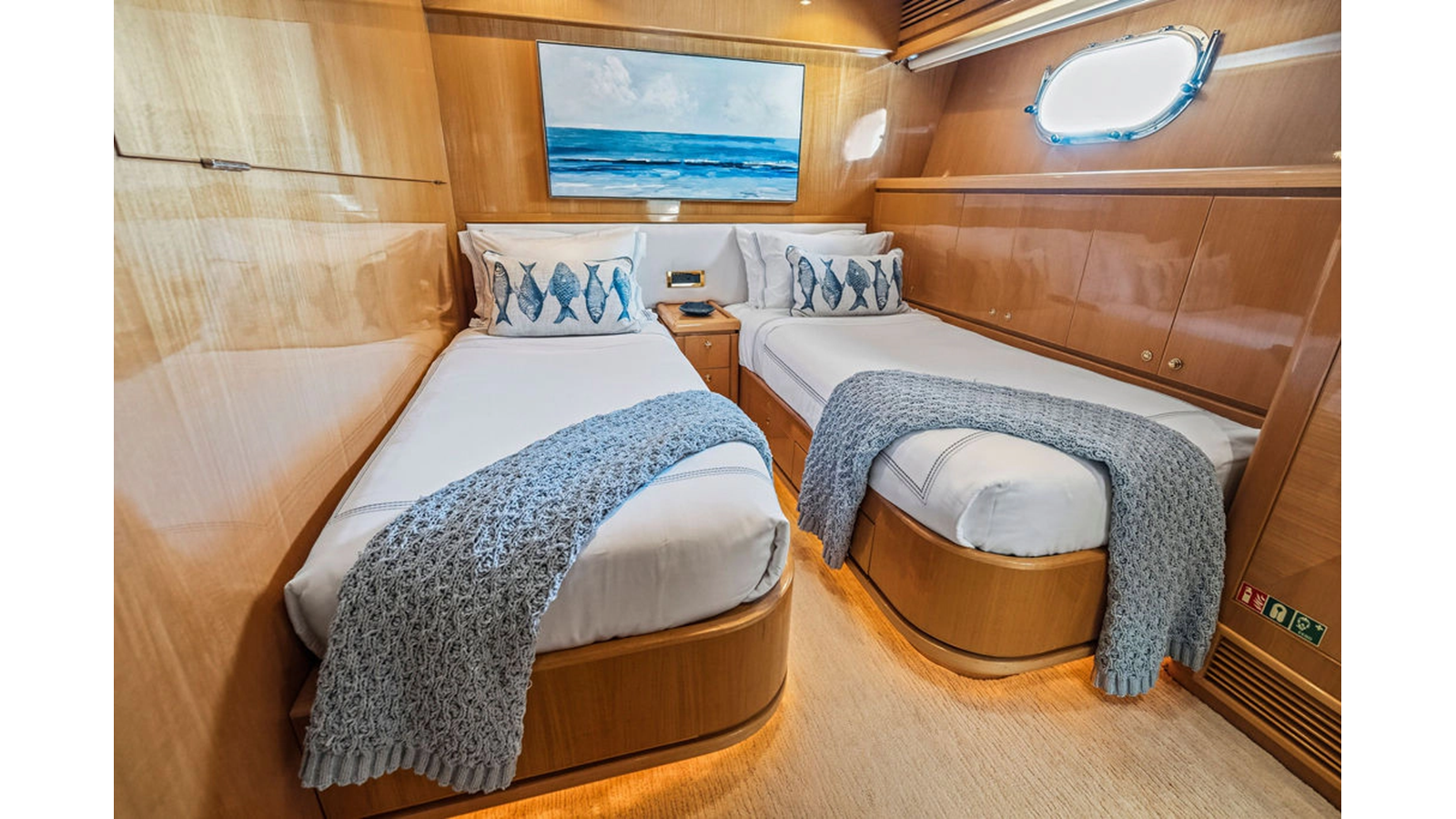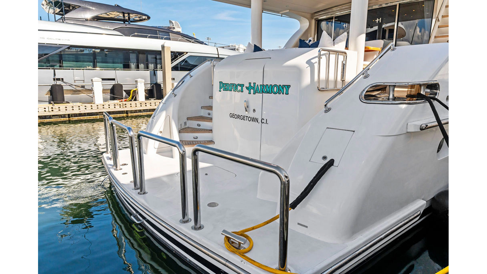 PERFECT HARMONY accommodates 9 guests in 4 well-appointed staterooms, including a full-beam Master Suite with a king-sized bed and raised views through large windows. She offers style, comfort, and functionality, making her perfect for both charter and private use.