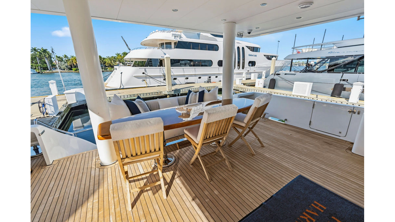 Built-in 2007 and continuously upgraded, PERFECT HARMONY is a stunning Hargrave 100’ raised pilothouse that combines incredible volume with timeless design. Her expansive 8M (26'03") beam offers ample space for alfresco dining and relaxation. Highlights include an aft deck with a large central table for outdoor dining, large jacuzzi and a 13' Walker Bay tender on the flybridge, and a forward outdoor bar area with a sink, refrigerator, and storage.