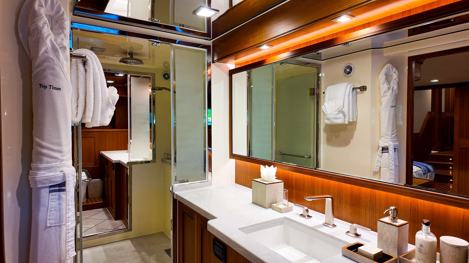 2022 Top Times 102' Motor Yacht by Marlow - Exceptional Luxury AfloatNEW TO MARKET - EXCELLENT CONDITION Introducing the stunning 2022 Marlow Voyager Series TOP TIMES, a remarkable tri-deck motor yacht that combines elegance and performance. With an impressive overall length of 102 feet, this vessel is crafted from durable fiberglass, ensuring both strength and beauty on the water. Powered by robust Caterpillar C32 engines, delivering an exhilarating 3800 horsepower, the yacht achieves a cruising speed of 13 knots and a maximum hull speed of 22 knots, making it perfect for adventurous voyages. Accommodating 4 guest cabins and 6 heads, the interior is designed for comfort and luxury. Notable features include joystick control for effortless maneuvering and an electric windlass for convenience. The Marlow Voyager Series invites you to explore the open seas with confidence and style. Experience the perfect blend of sophistication and performance aboard the TOP TIMES.