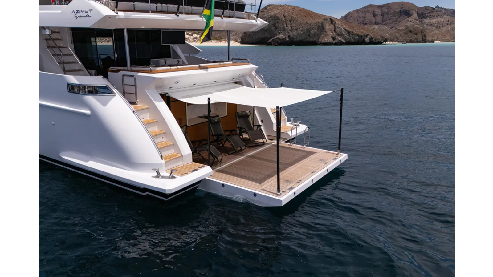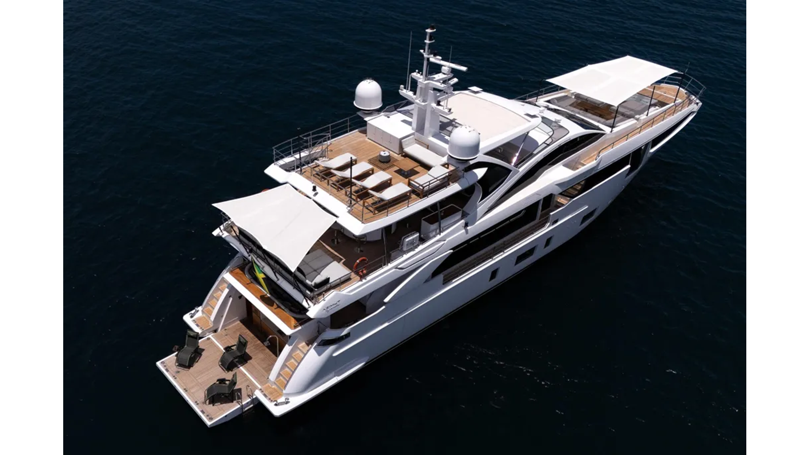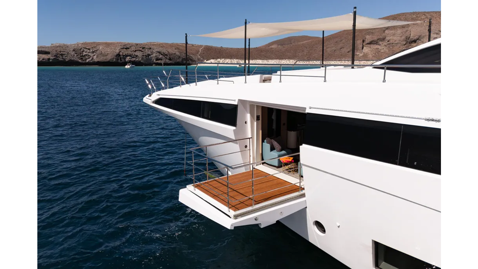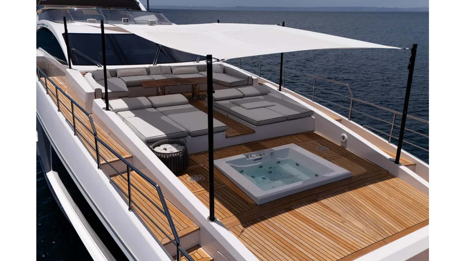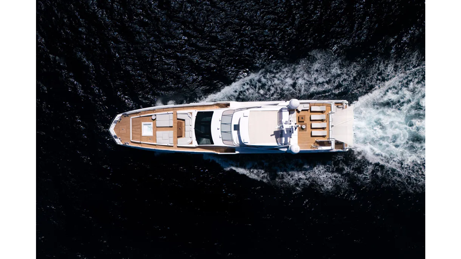 Grande 35 Metri offers unprecedented solutions, representing a masterpiece of style and space. A wide-body megayacht with a third level for an additional sundeck, side garage, two beach clubs in stern and bow and an owner’s suite with a spectacular fold out terrace.