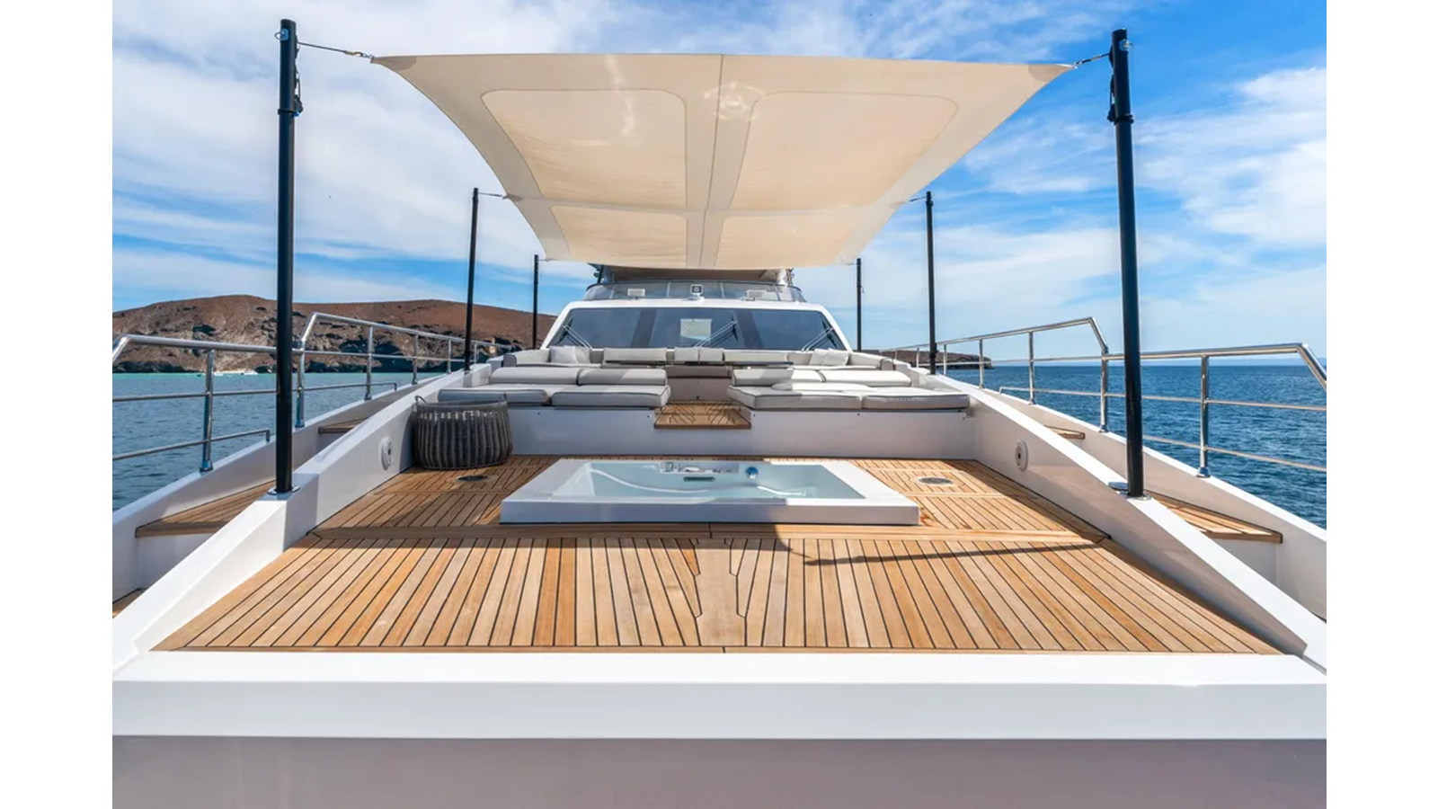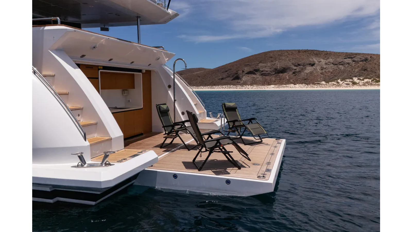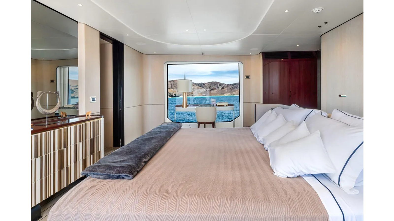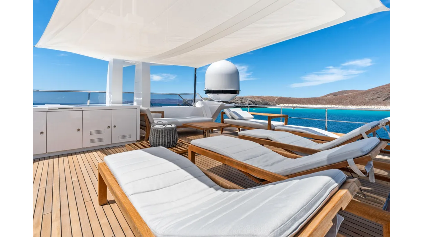 Grande 35 Metri offers unprecedented solutions, representing a masterpiece of style and space. A wide-body megayacht with a third level for an additional sundeck, side garage, two beach clubs in stern and bow and an owner’s suite with a spectacular fold out terrace.