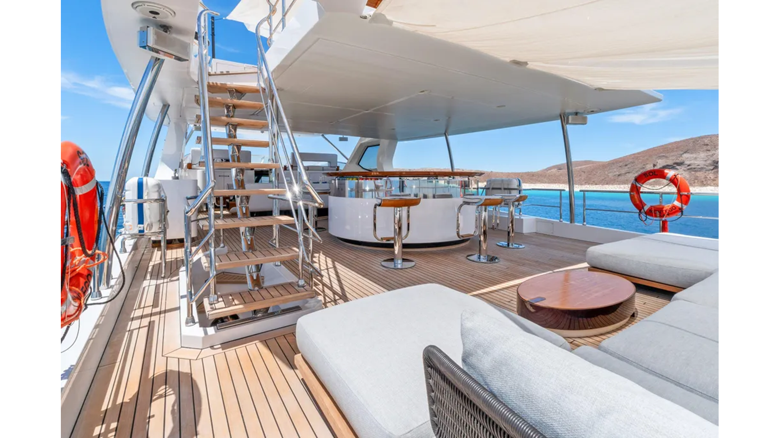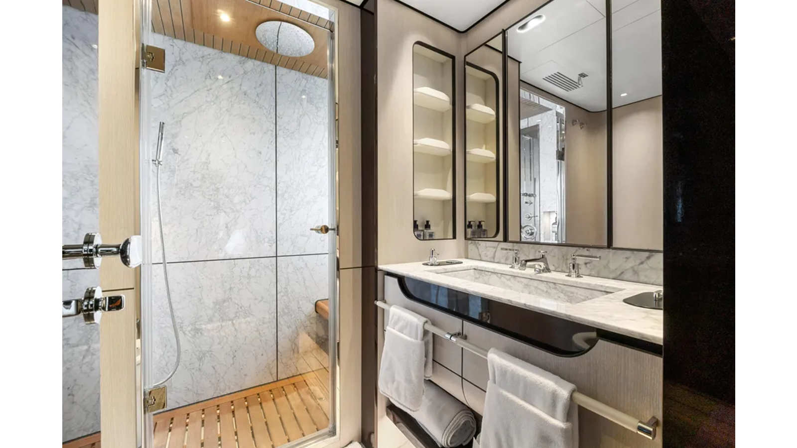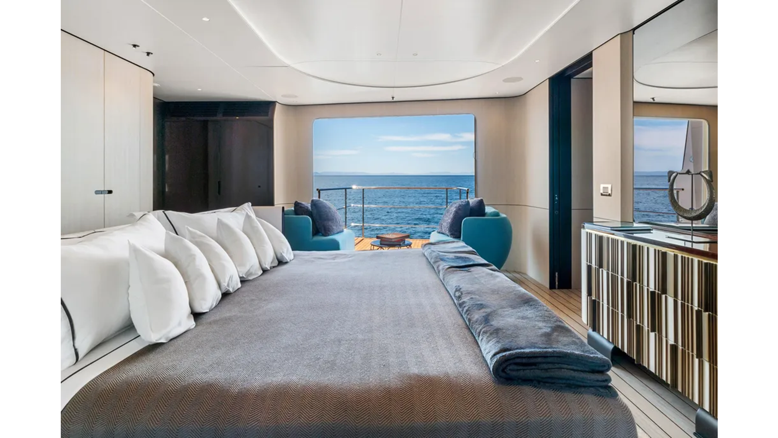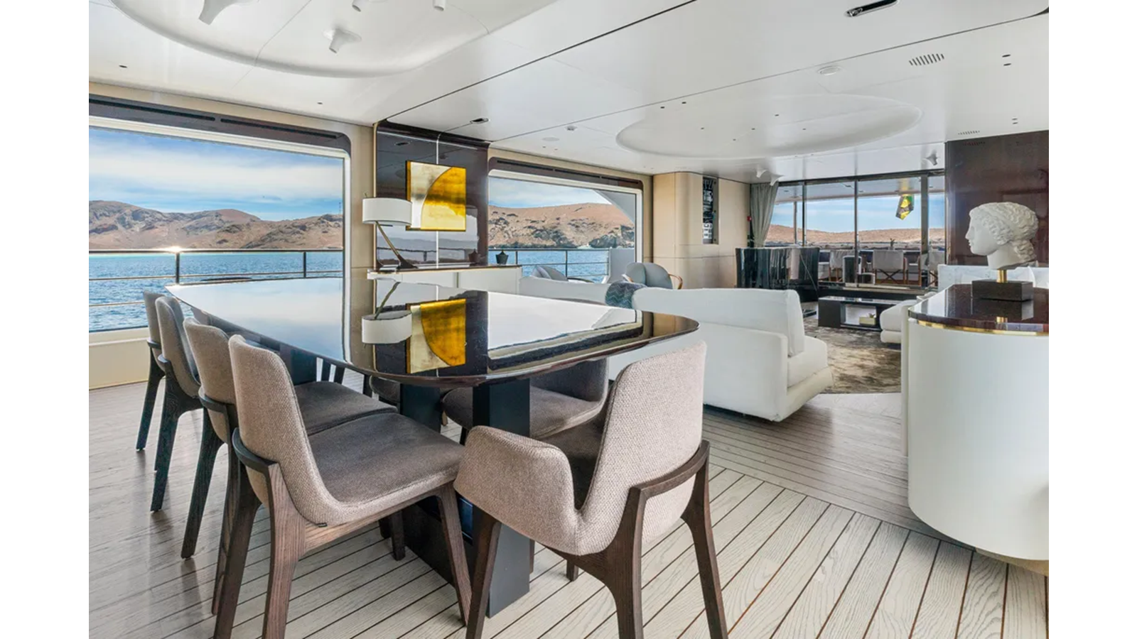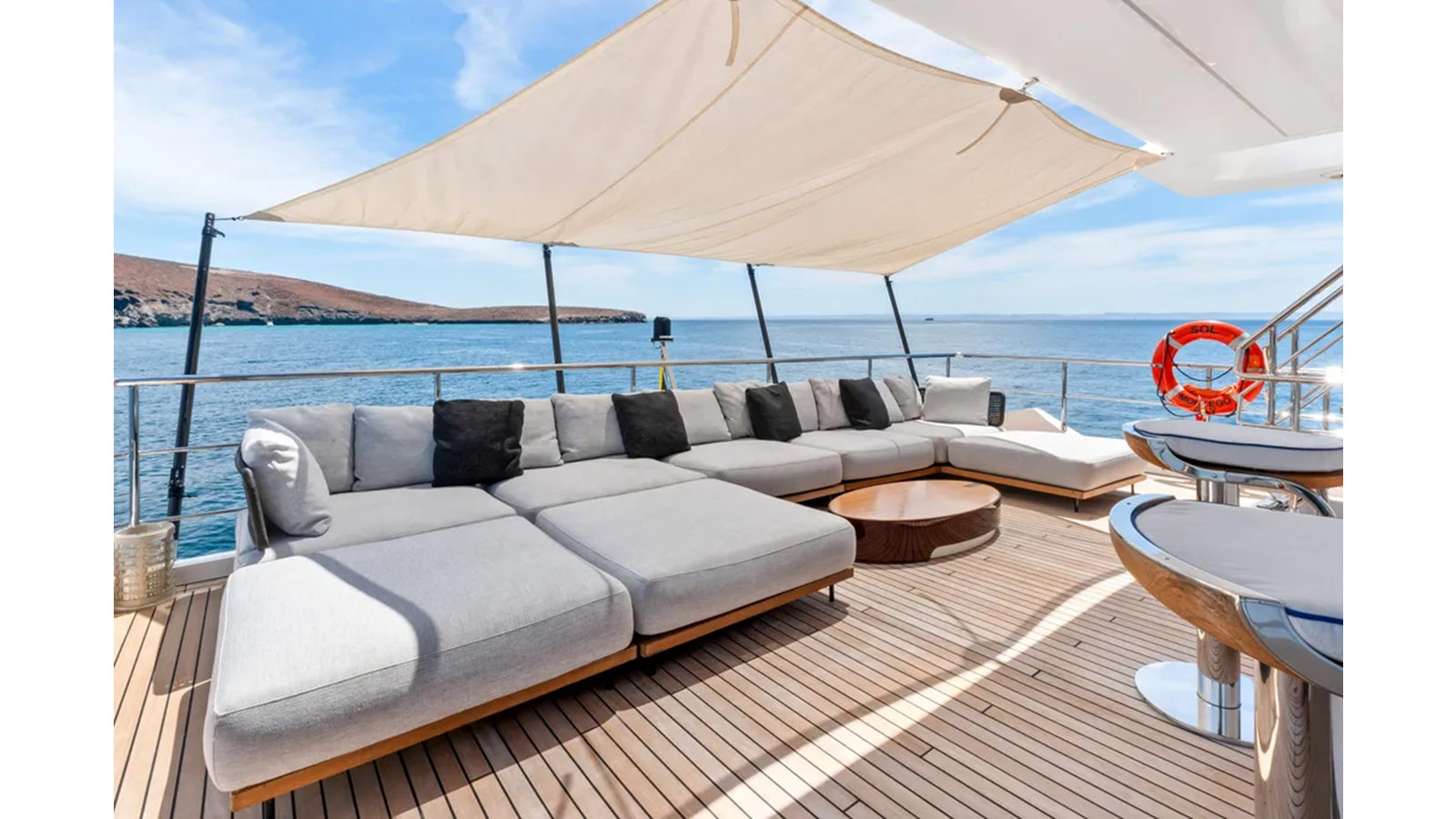 Grande 35 Metri offers unprecedented solutions, representing a masterpiece of style and space. A wide-body megayacht with a third level for an additional sundeck, side garage, two beach clubs in stern and bow and an owner’s suite with a spectacular fold out terrace.