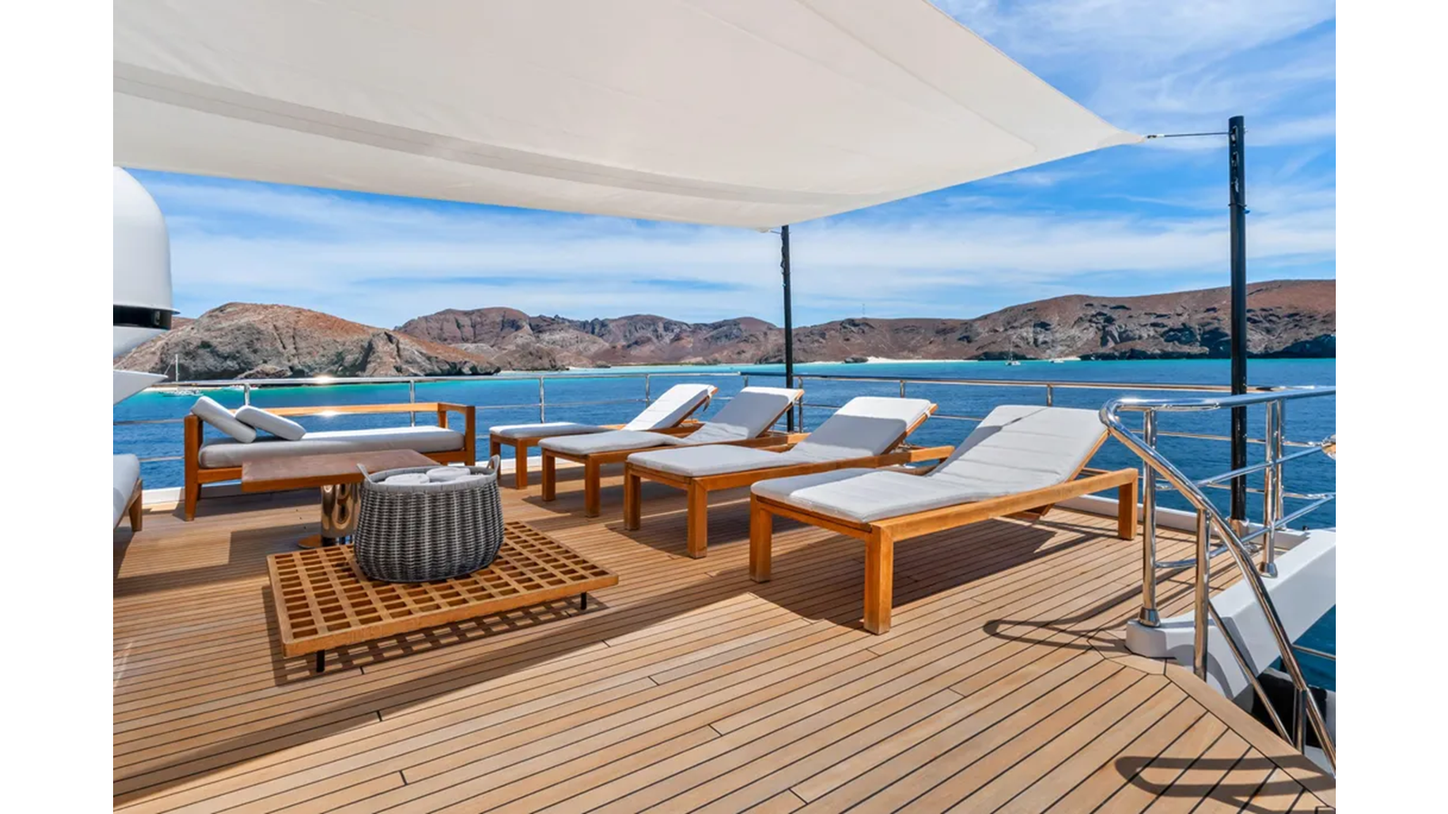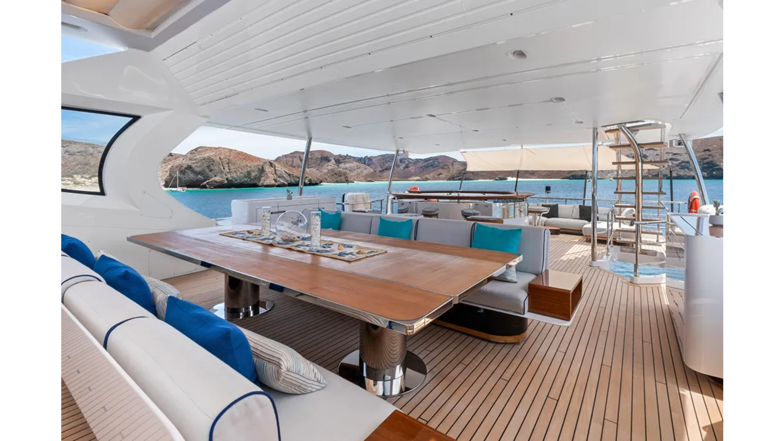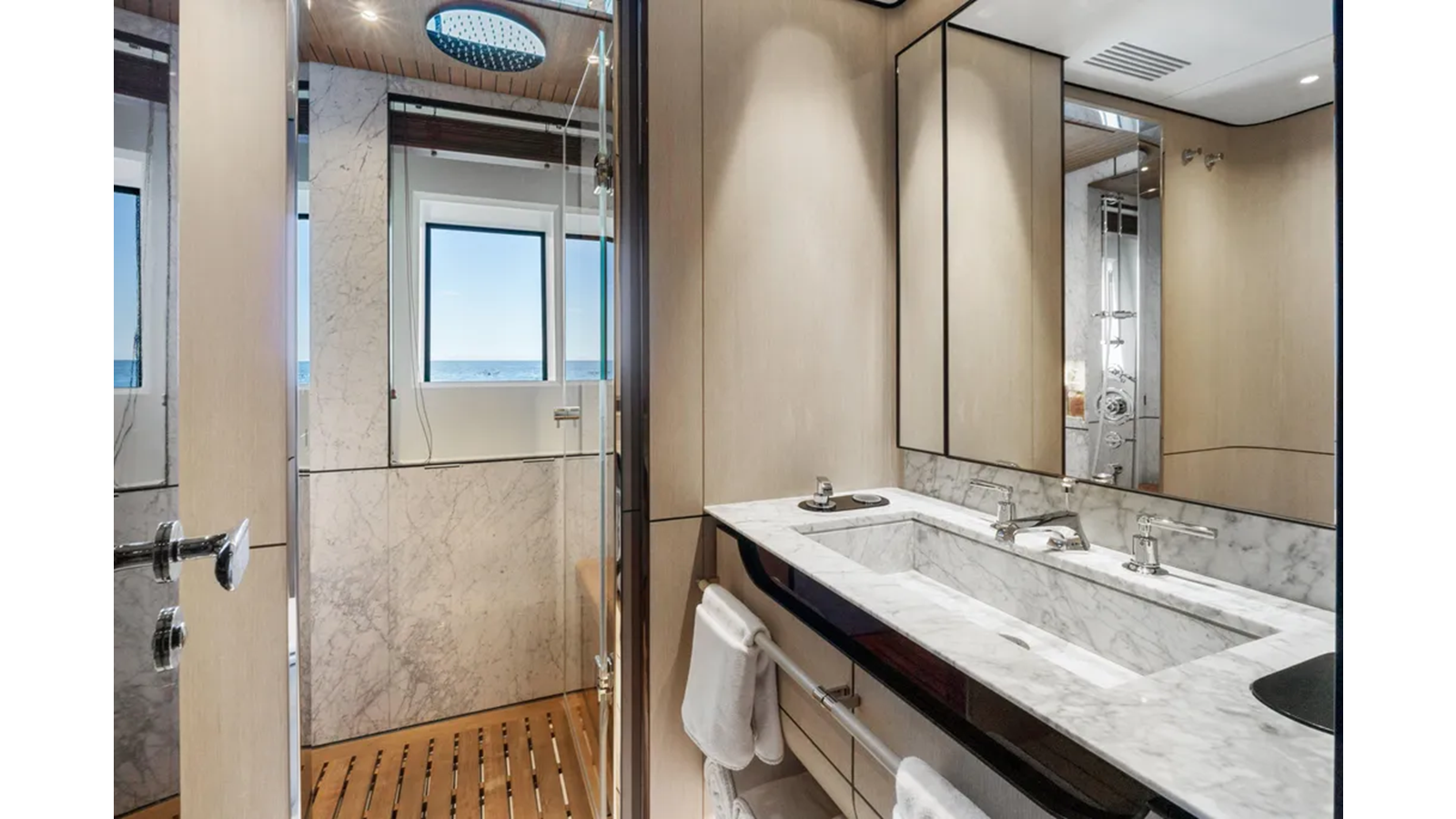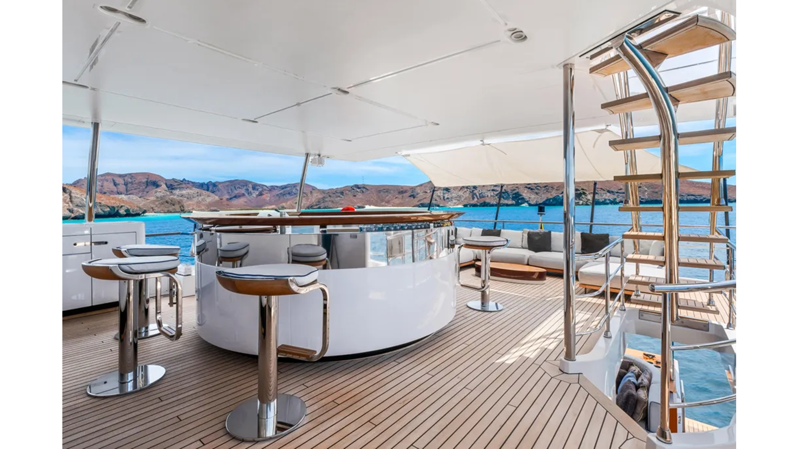 Grande 35 Metri offers unprecedented solutions, representing a masterpiece of style and space. A wide-body megayacht with a third level for an additional sundeck, side garage, two beach clubs in stern and bow and an owner’s suite with a spectacular fold out terrace.