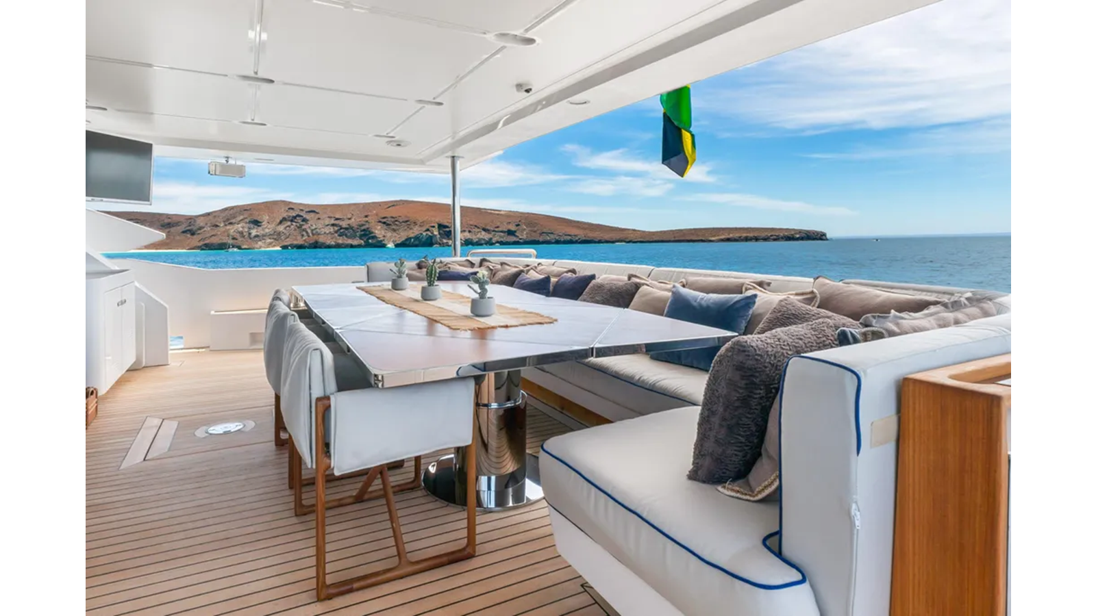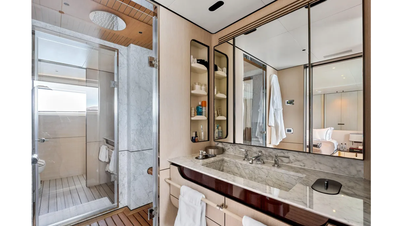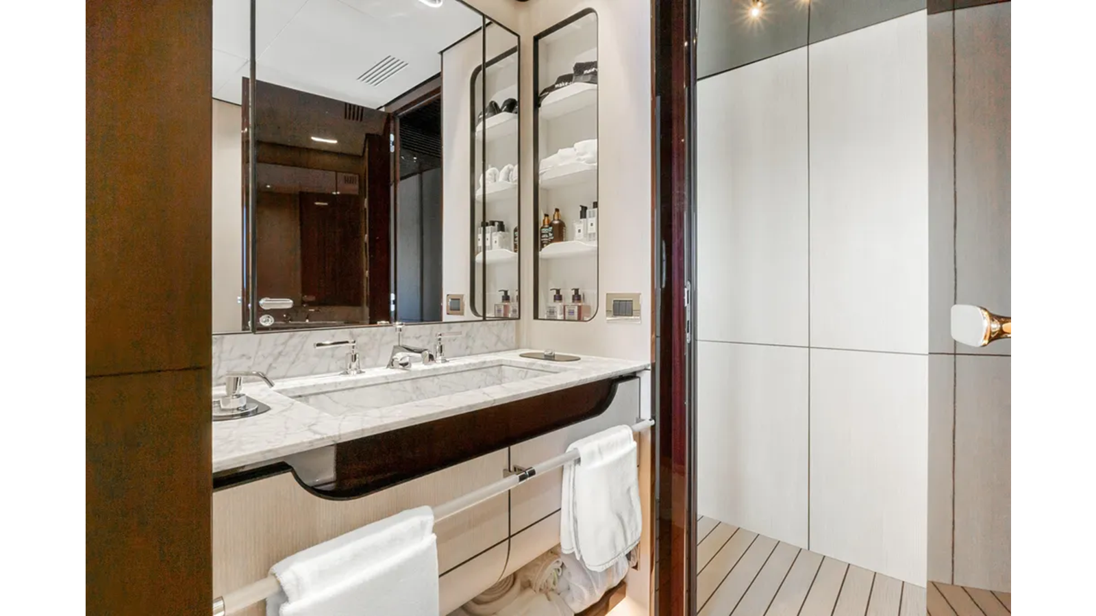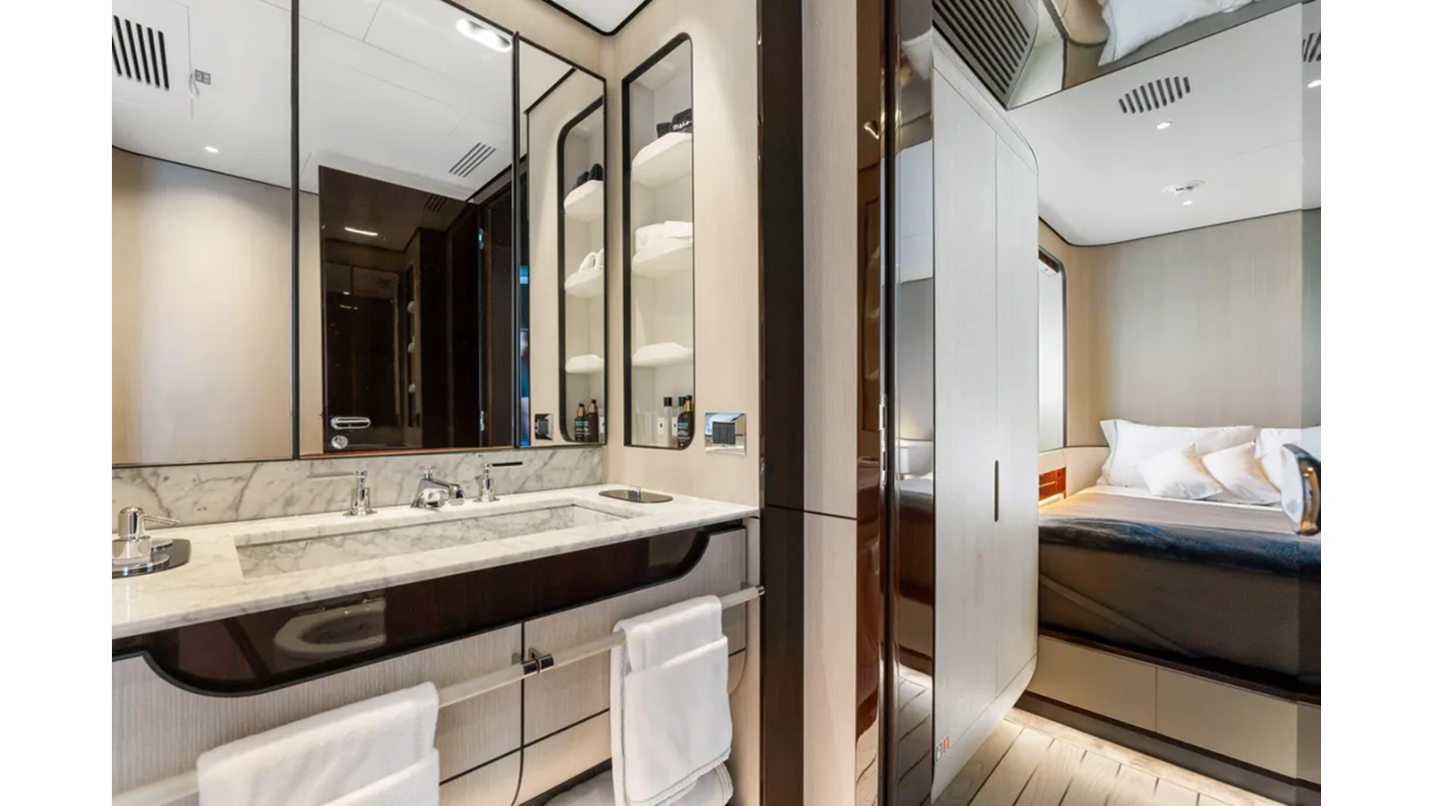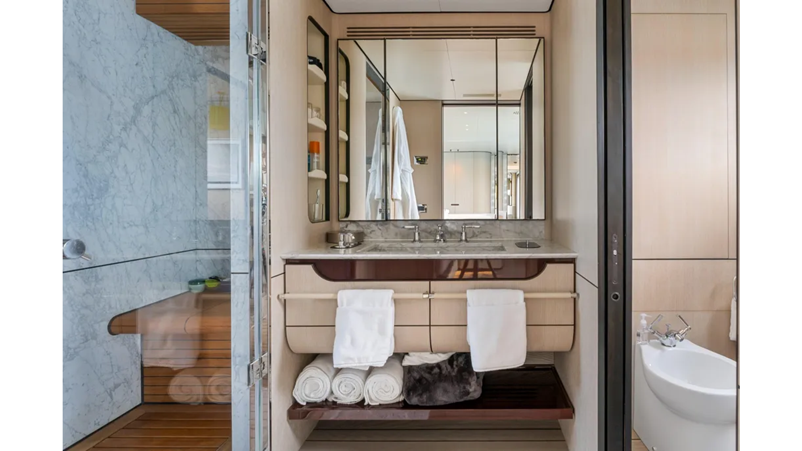 Grande 35 Metri offers unprecedented solutions, representing a masterpiece of style and space. A wide-body megayacht with a third level for an additional sundeck, side garage, two beach clubs in stern and bow and an owner’s suite with a spectacular fold out terrace.