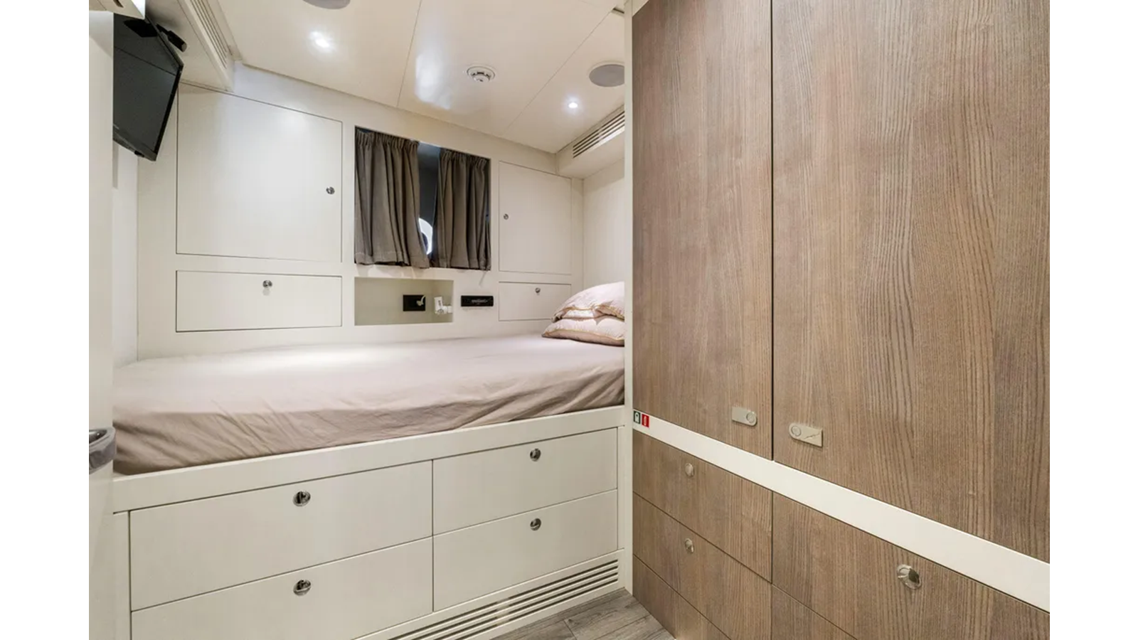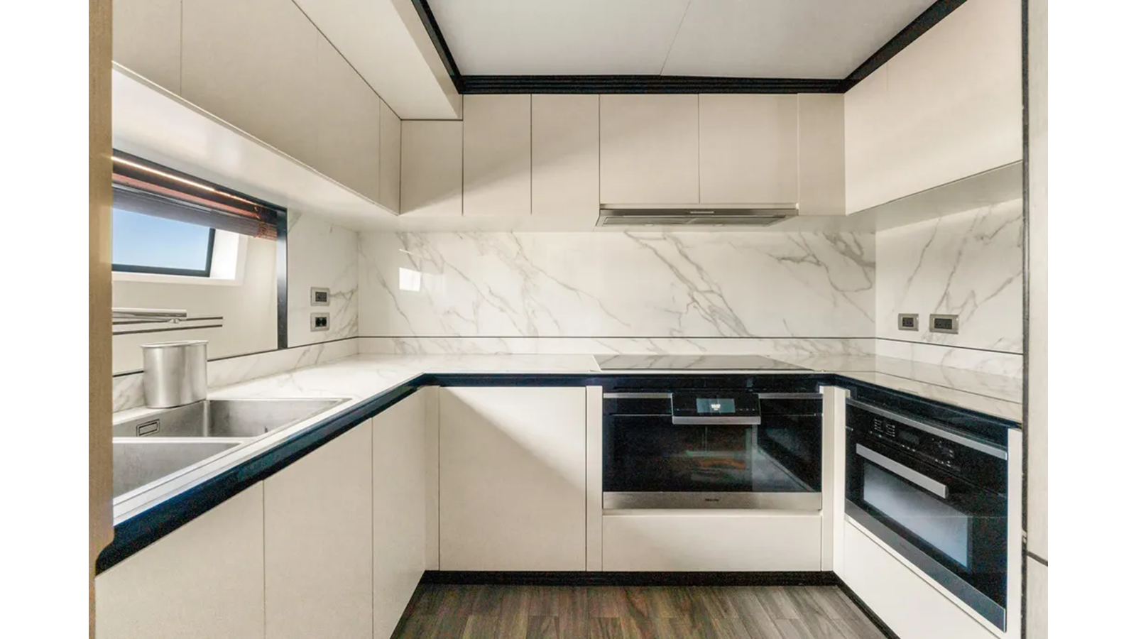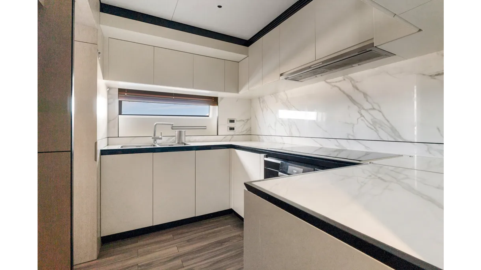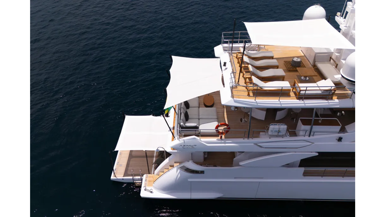 The large use of carbon fiber, which Azimut has pioneered, makes it possible to extend the space available with better performance in water and unprecedented comfort onboard. The hard top, roll-bar, flydeck, superstructure and transom are carbon fiber.