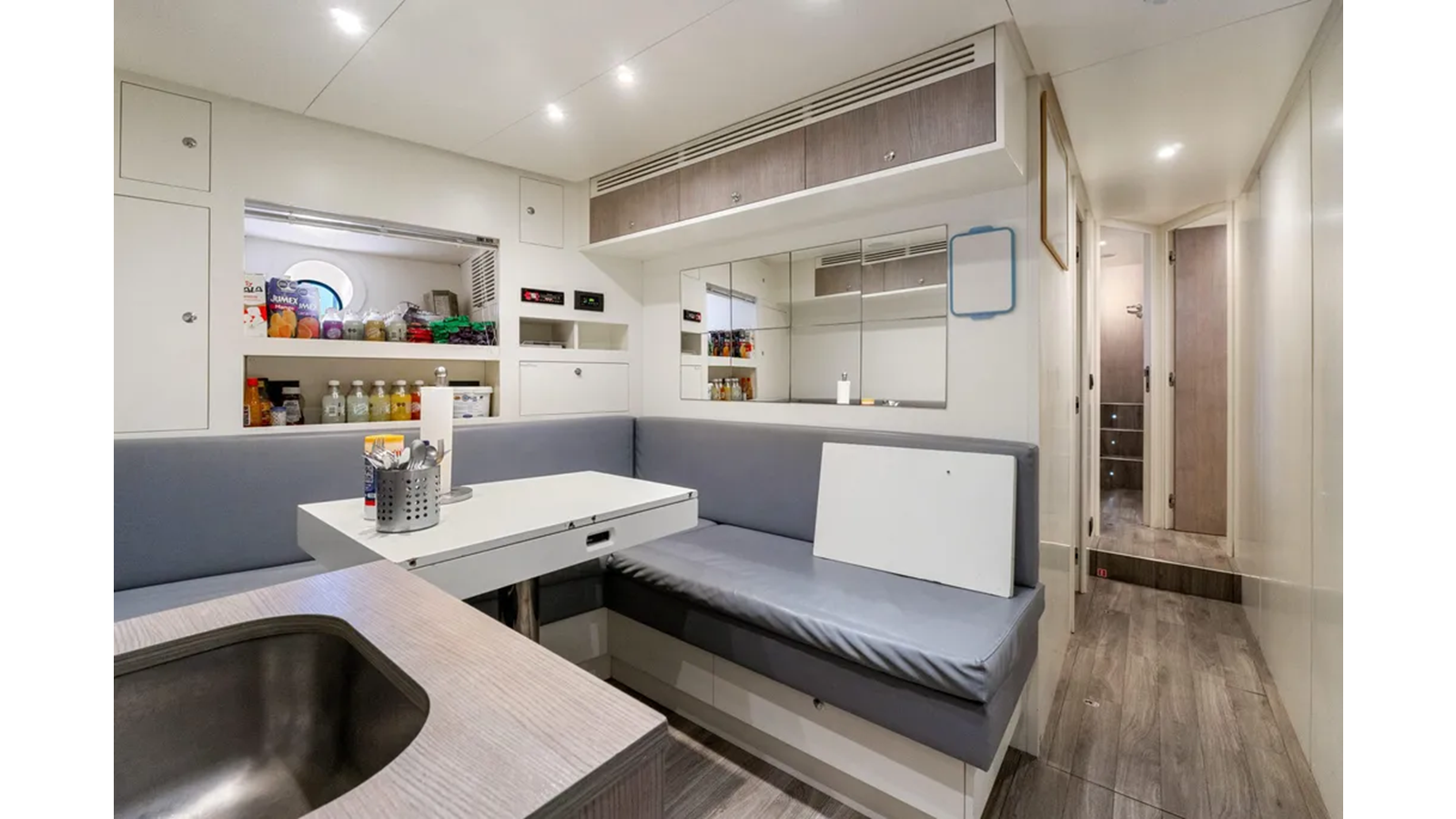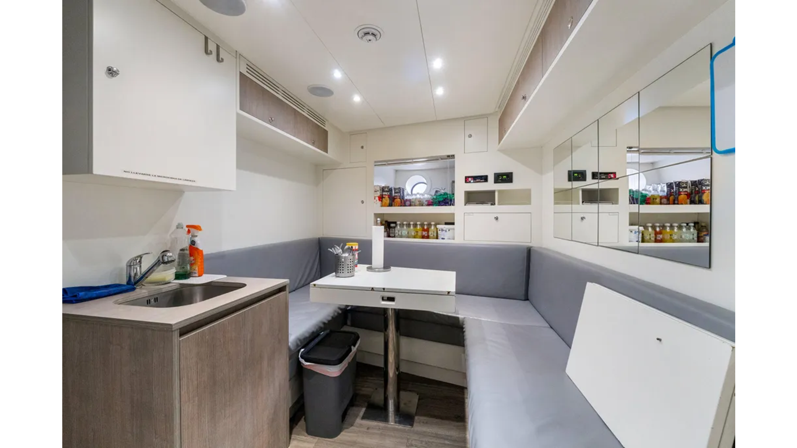 The D2P Displacement to Planing® hull combines the comfort typical of a displacement hull with the performance of a planing hull and a wave piercer to improve fuel efficiency.