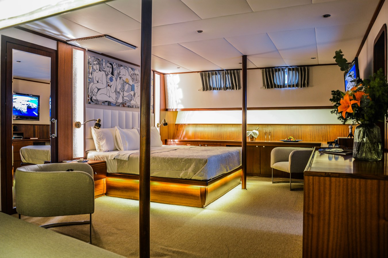 The design is slightly dated by today’s standards , but this is offset by her solid steel construction and consistent maintenance over the years. She represents one of the rare steel gulets on the market , making her a strong option for both private use and charter.