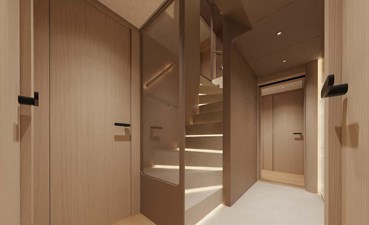 arrangements. A crew of seven can discreetly service the yacht via dedicated internal staircases connecting the lower and upper decks, ensuring maximum privacy for guests.