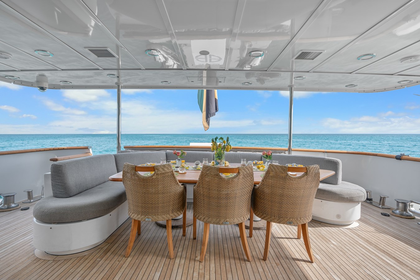 - Foredeck sun pad can be converted into a multifunctional dining area
