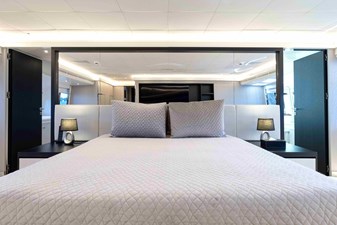 She features a full-beam main saloon with lounge and dining areas, as well as a large sunbathing space on the foredeck. The upper deck includes a dedicated cinema room, while the flybridge provides seating for up to twelve guests for open-air dining, along with a bar area.