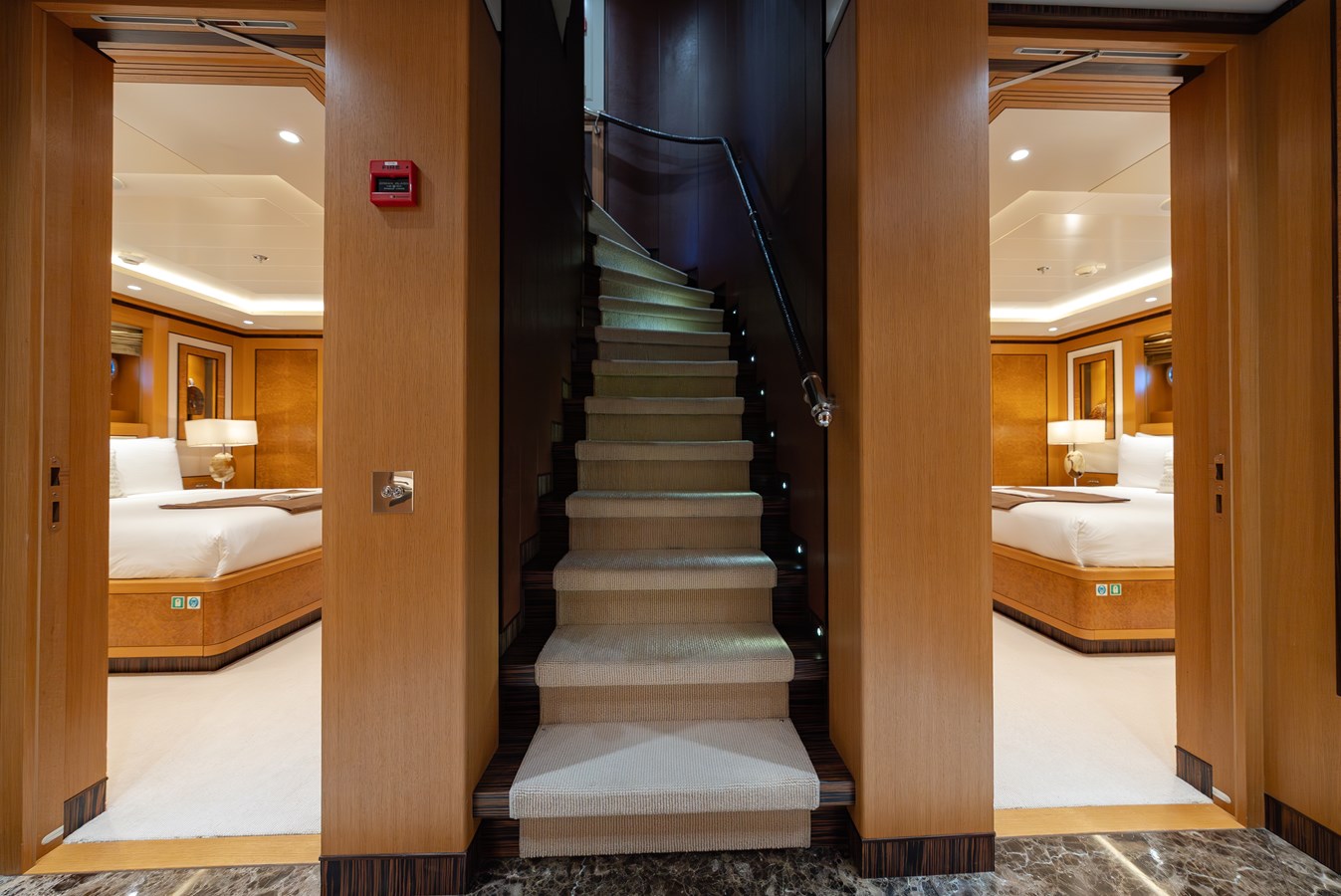LATITUDE doesn’t pretend to be an explorer; she’s proven it from the polar ice cap to tropical anchorages. Fresh from an eleven-month refit, she carries a fully equipped aquatic sports center with the finest nitrox dive compressor found on any yacht, beach club, a huge sun deck, Quantum Zero-Speed stabilizers for comfort at anchor, and richly appointed interior spaces. Five cabins including a Master, two VIPs, and two versatile guest cabins outfitted with Murphy beds for flexible accommodations. A dedicated supernumerary cabin provides ideal accommodation for pilots, guides, or personal staff, making LATITUDE fully prepared for sophisticated, globe-spanning adventure.