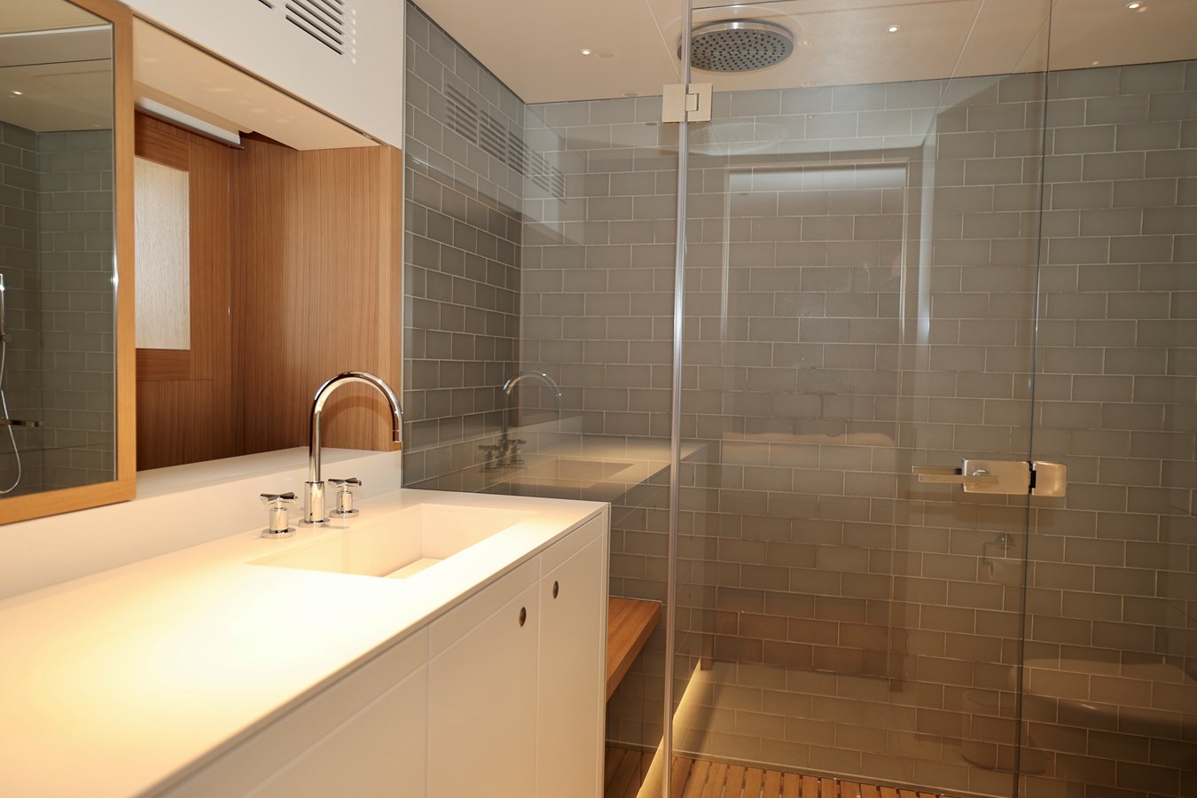 The free flowing minimalistic design is done in such a way to make this yacht feel like an extension of your home. Many costly details will go unnoticed but will add to the feeling you will enjoy throughout the yacht's spaces. Having performance in mind throughout construction every material specified was methodically tested against the weight ratios allowing this 160 foot yacht to glide along the sea at an astonishing 30+ knots.