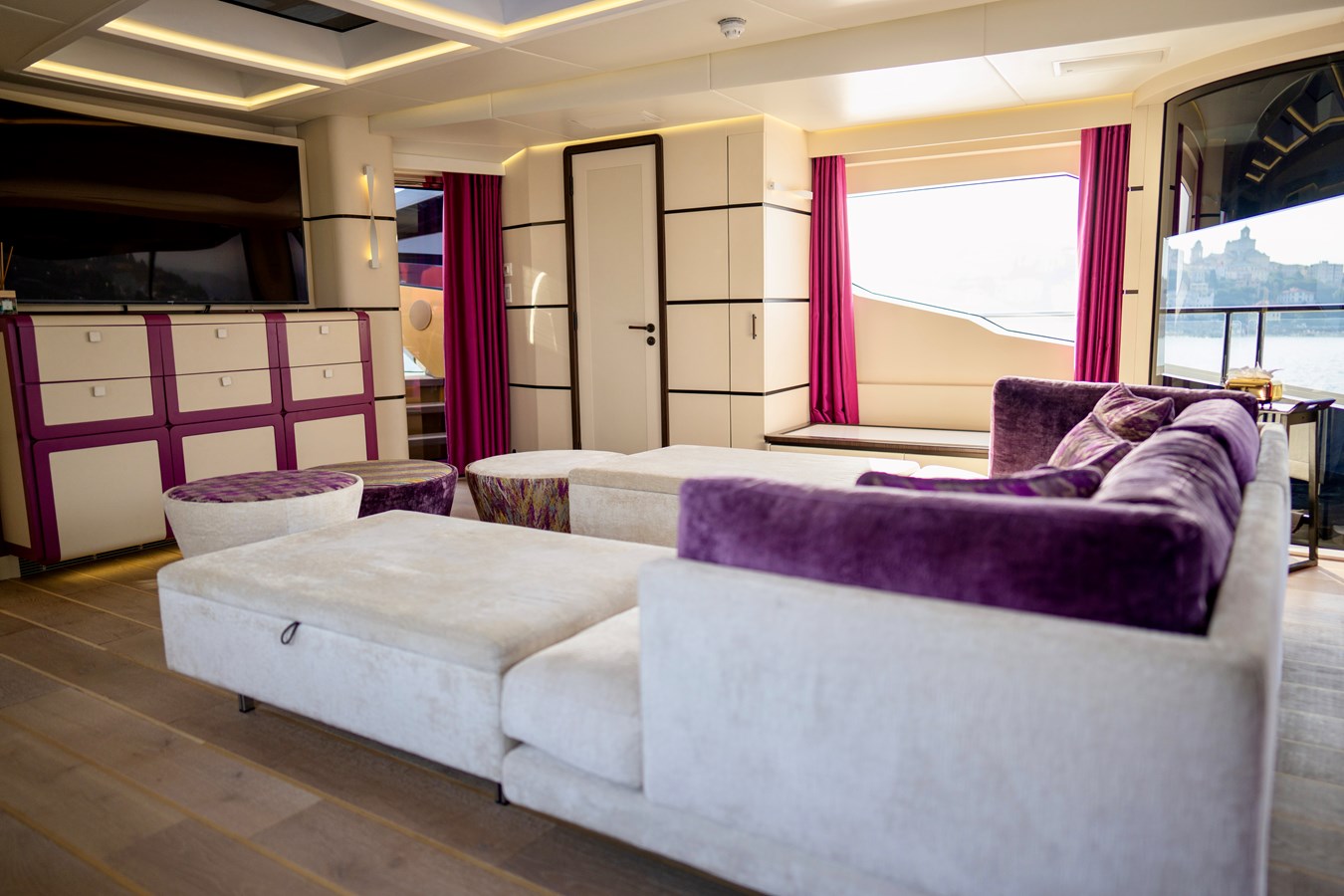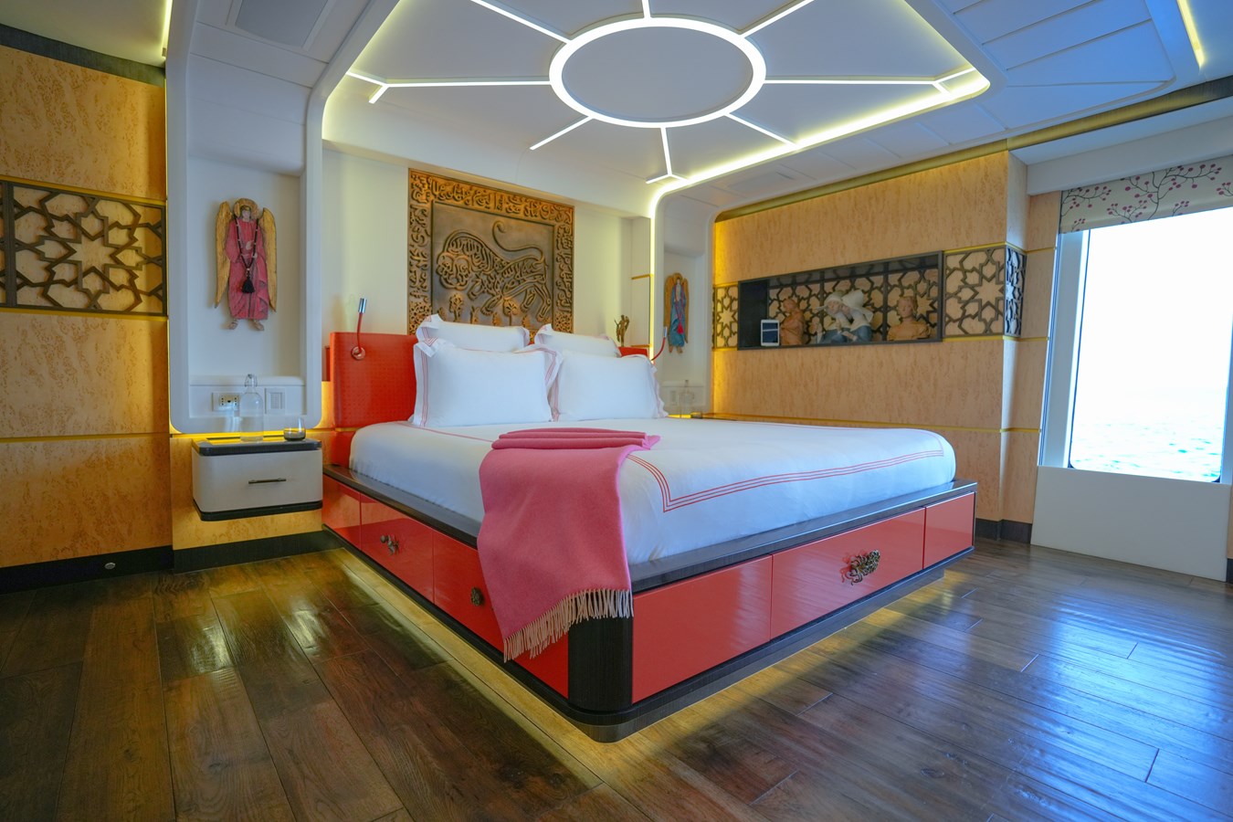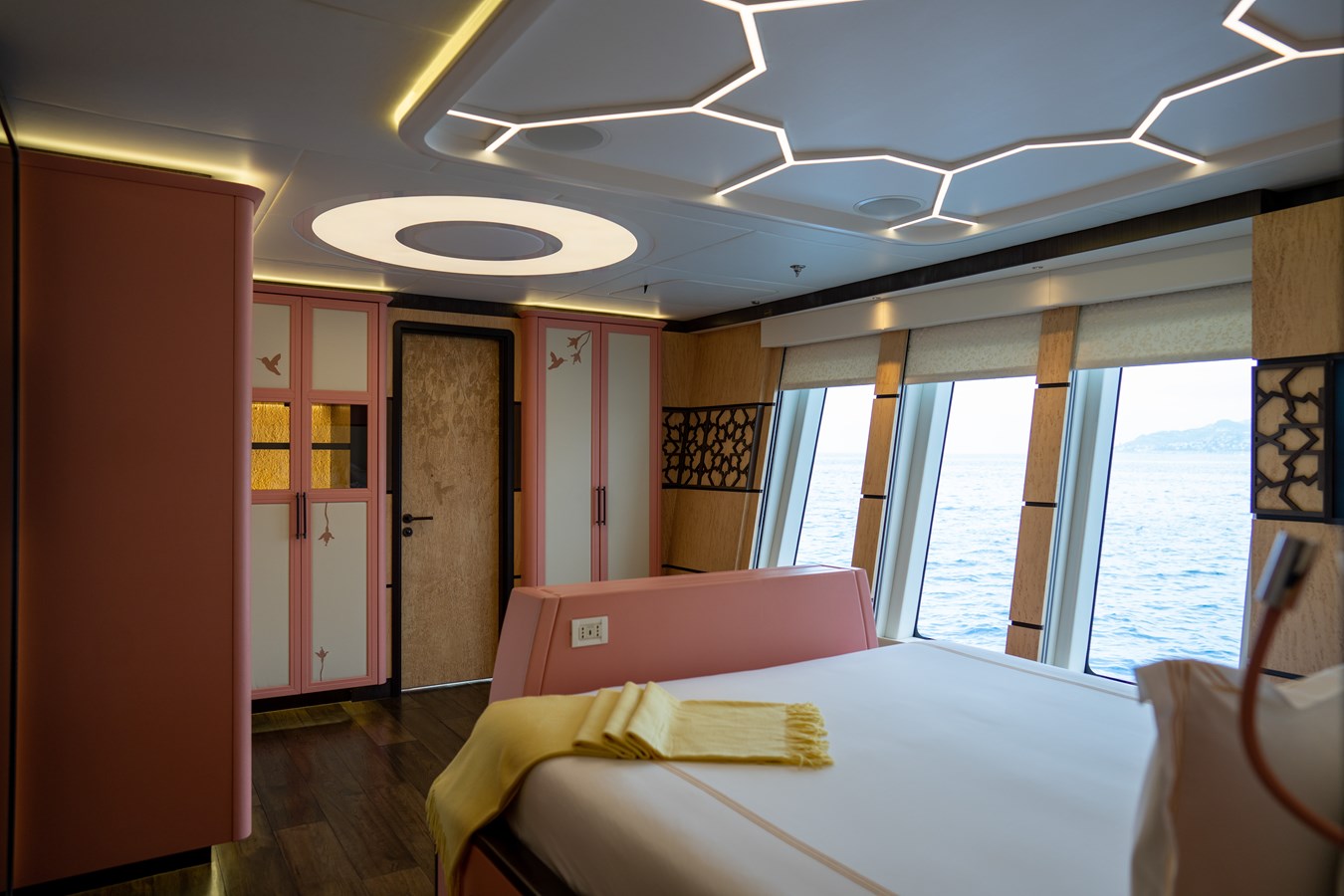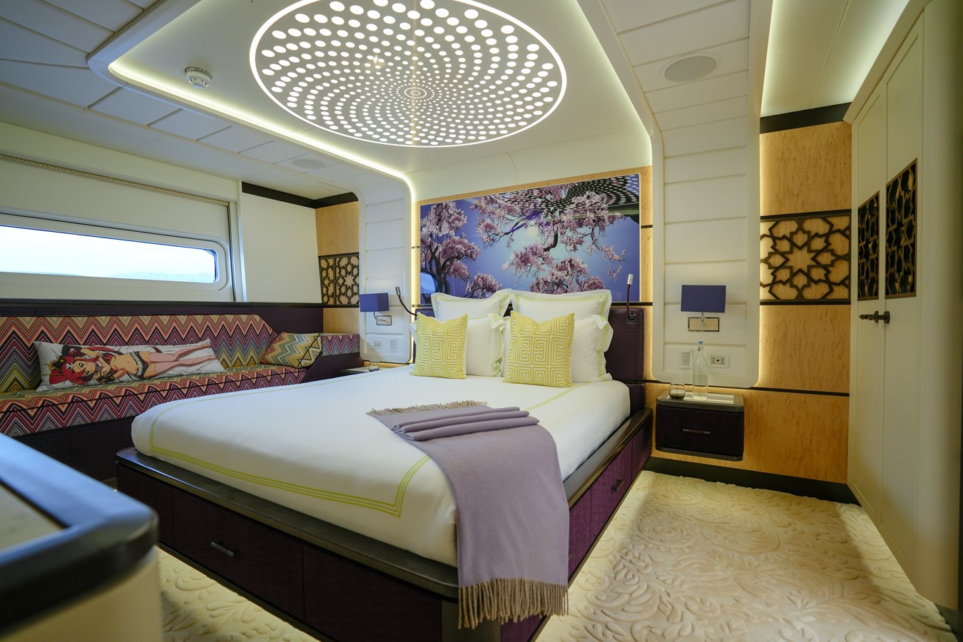 One of the most Iconic yachts in the world KHALILAH offers a refined balance of performance, comfort and her unique design. the exceptional 50m Palmer Johnson, recently completed refit as well as her 10 years RINA survey in 2023, stands out with her striking colour, all-carbon construction, and spacious decks.