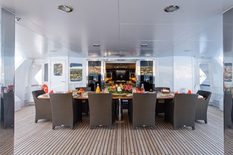 THE WELLESLEY boasts some of the largest open deck spaces of any 56 meter on the water, the ideal yacht for entertaining family and friends. She offers exterior dining on both the main and sun decks, as well as multiple sun-lounging and relaxation areas. The sundeck also features a sizeable jacuzzi, perfect for socialising but still private when docked in port.
