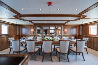 Inside, THE LANGLEY features a fresh, contemporary interior with soft tones, natural textures, and ambient lighting throughout. The main saloon includes a spacious lounge, formal dining area, and panoramic windows that fill the space with natural light. Accommodation is for up to 12 guests across six staterooms (with a further 7th cabin ideal for staff as necessary), including a full-beam master suite located aft in a private section of the lower deck. This expansive suite features a king-size bed, owner’s desk, sofa, large wardrobe space, and a generous en suite with shower.