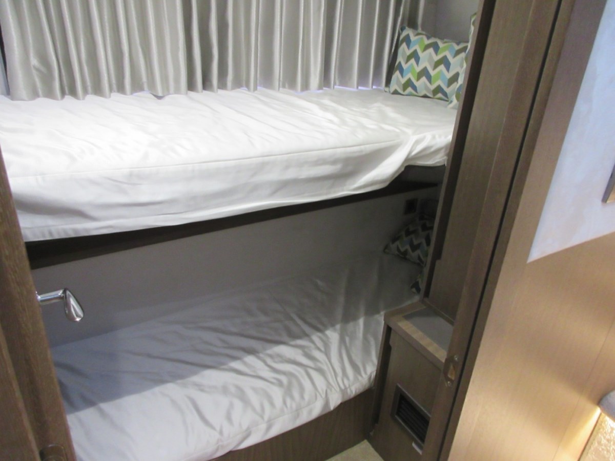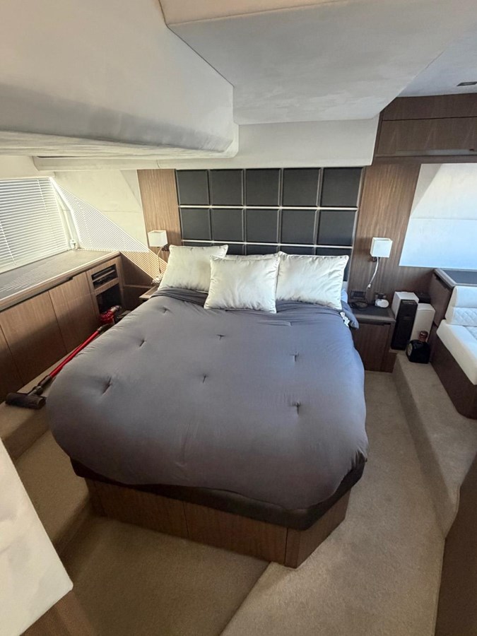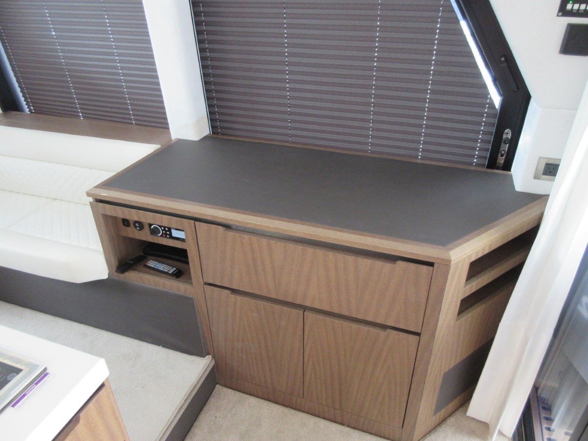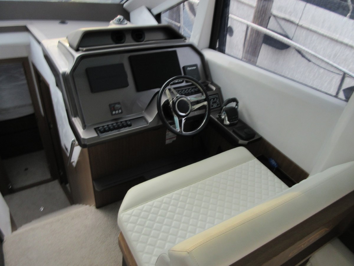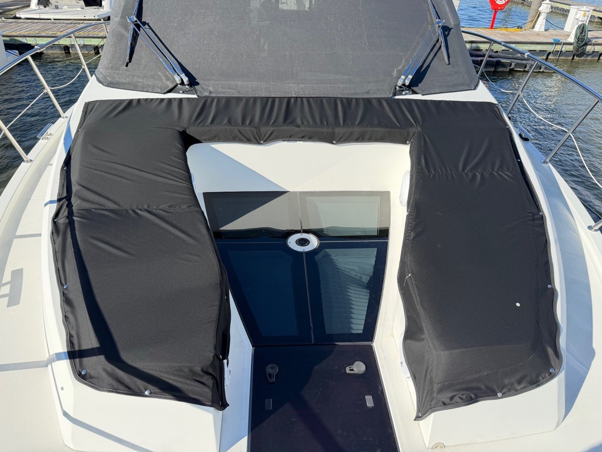 The main deck is fitted with a galley, dinette and plenty of storage areas to stow away items. The optional Beach Mode allows to drop down both sides and create a vast area near the cockpit, perfect for entertaining guests. Three different cockpit solutions are available, including the popular roto-seat option. Bow area can be fitted with an automatic settee for even more convenience outside. Down below three cabins and two bathrooms await the guests. The guest cabins offer a double in the bow area, and bunk beds starboard side. The owner’s cabin is located midship with an ensuite bathroom for extra privacy.