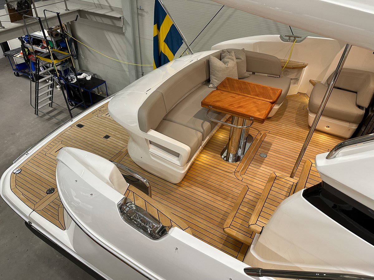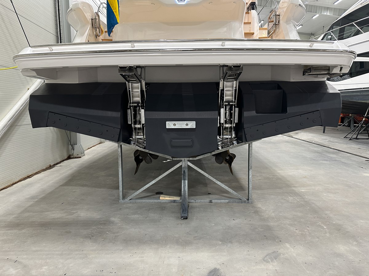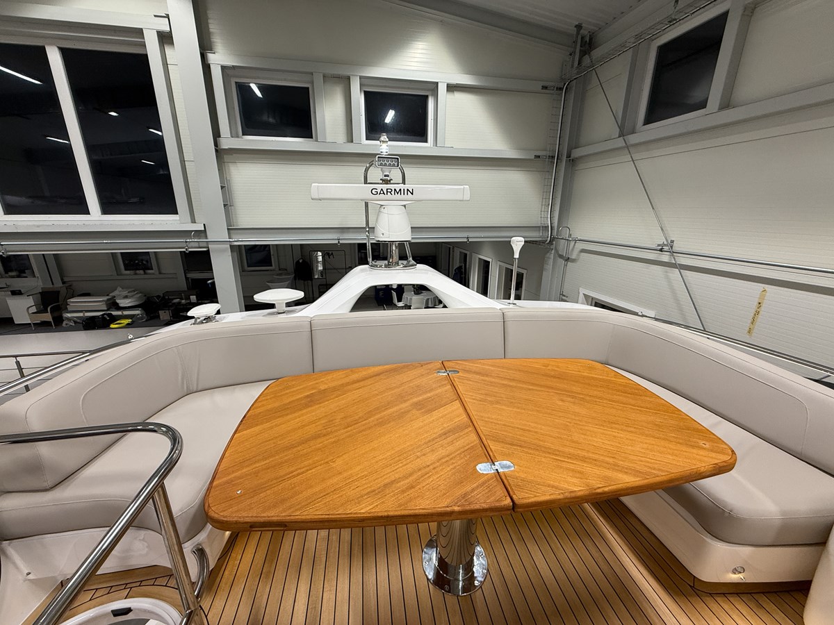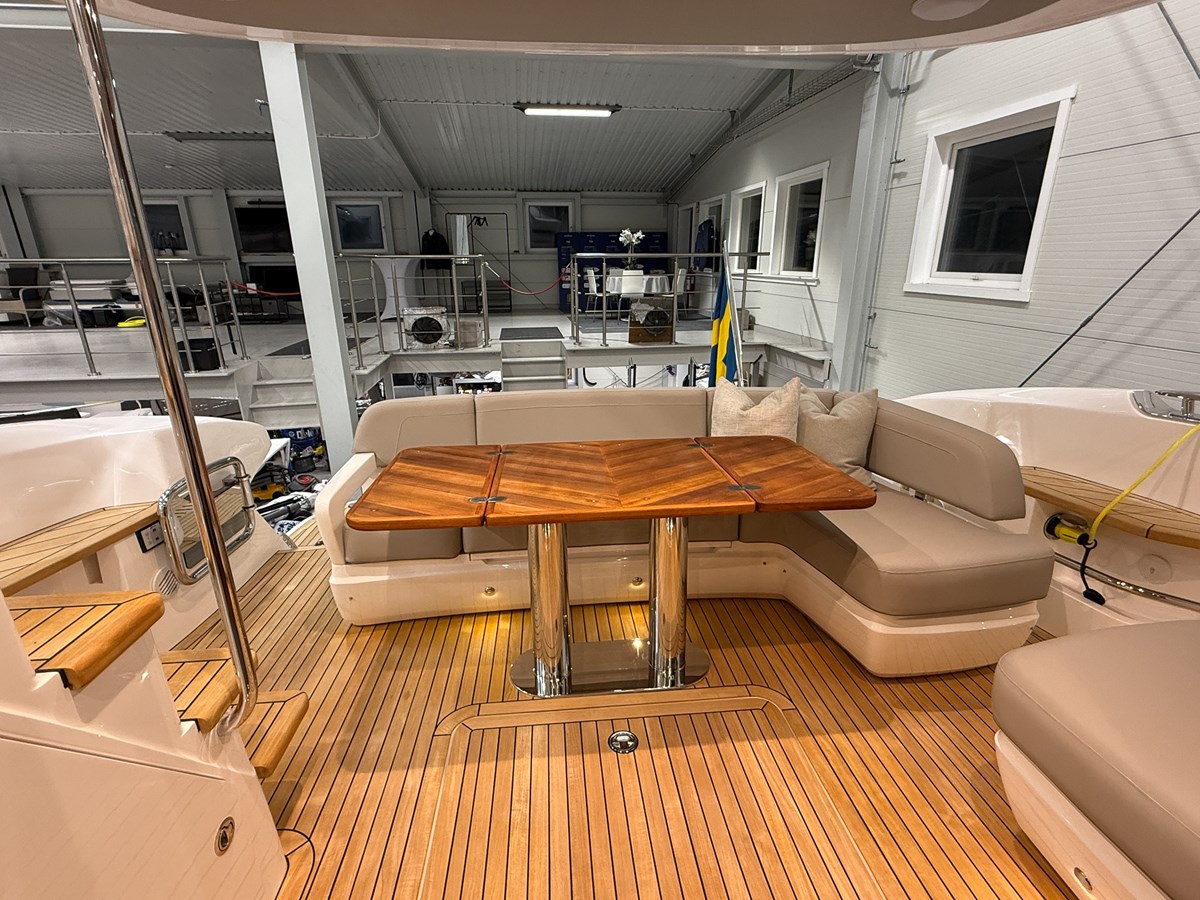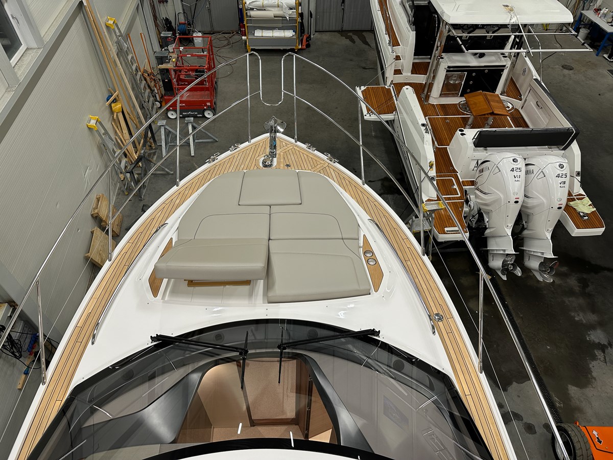 2024 year model • Twin Volvo IPS 650 (2 x 480hp each) diesel engines • Volvo Joystick control • Assisted Docking • Dynamic Positioning System / DPS • Automatic trim system • Variable bowthruster with hold • Hydraulic platform • Walnut interior wood, satin finish • Saloon berth conversion • Heated bathroom floors • Washed/dryer • Dishwasher • Full teak • ONAN generator • BBQ in wetbar • 4x Garmin Glass Cockpit 16 inch chartplotters integrated with Volvo autopilot • Radar • Demist • Heating