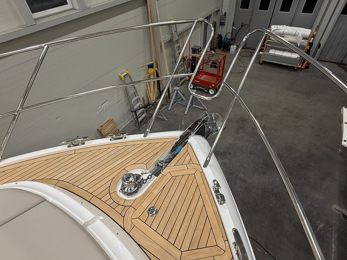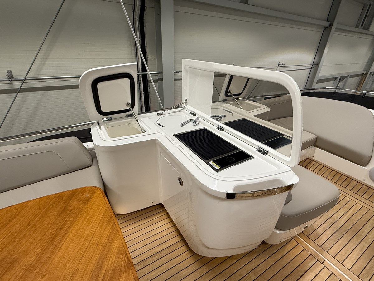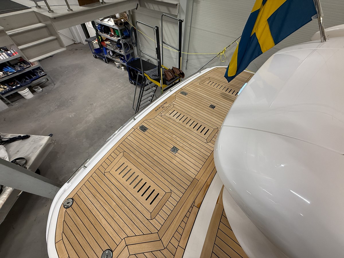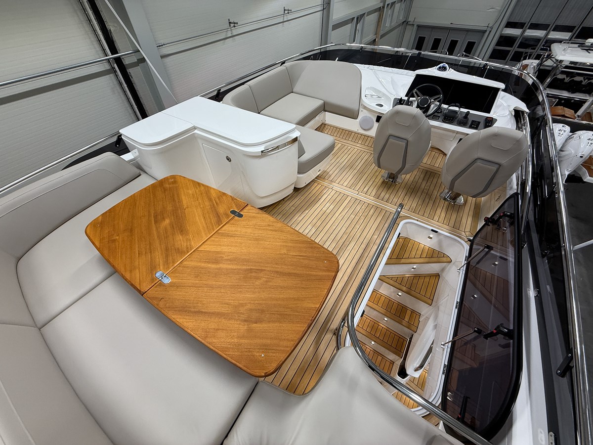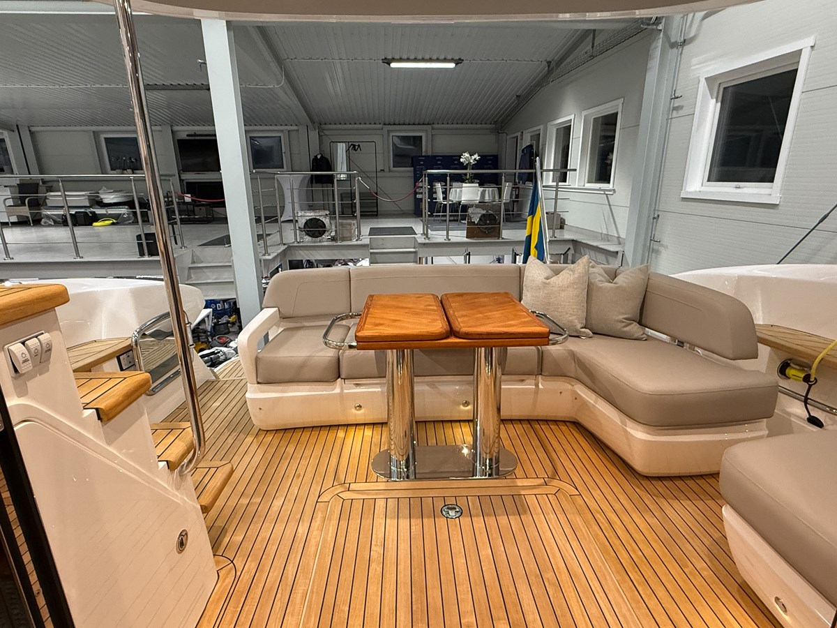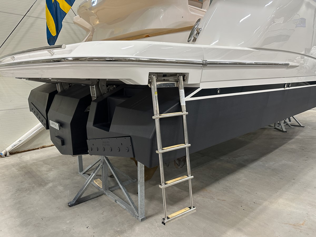 2024 year model • Twin Volvo IPS 650 (2 x 480hp each) diesel engines • Volvo Joystick control • Assisted Docking • Dynamic Positioning System / DPS • Automatic trim system • Variable bowthruster with hold • Hydraulic platform • Walnut interior wood, satin finish • Saloon berth conversion • Heated bathroom floors • Washed/dryer • Dishwasher • Full teak • ONAN generator • BBQ in wetbar • 4x Garmin Glass Cockpit 16 inch chartplotters integrated with Volvo autopilot • Radar • Demist • Heating
