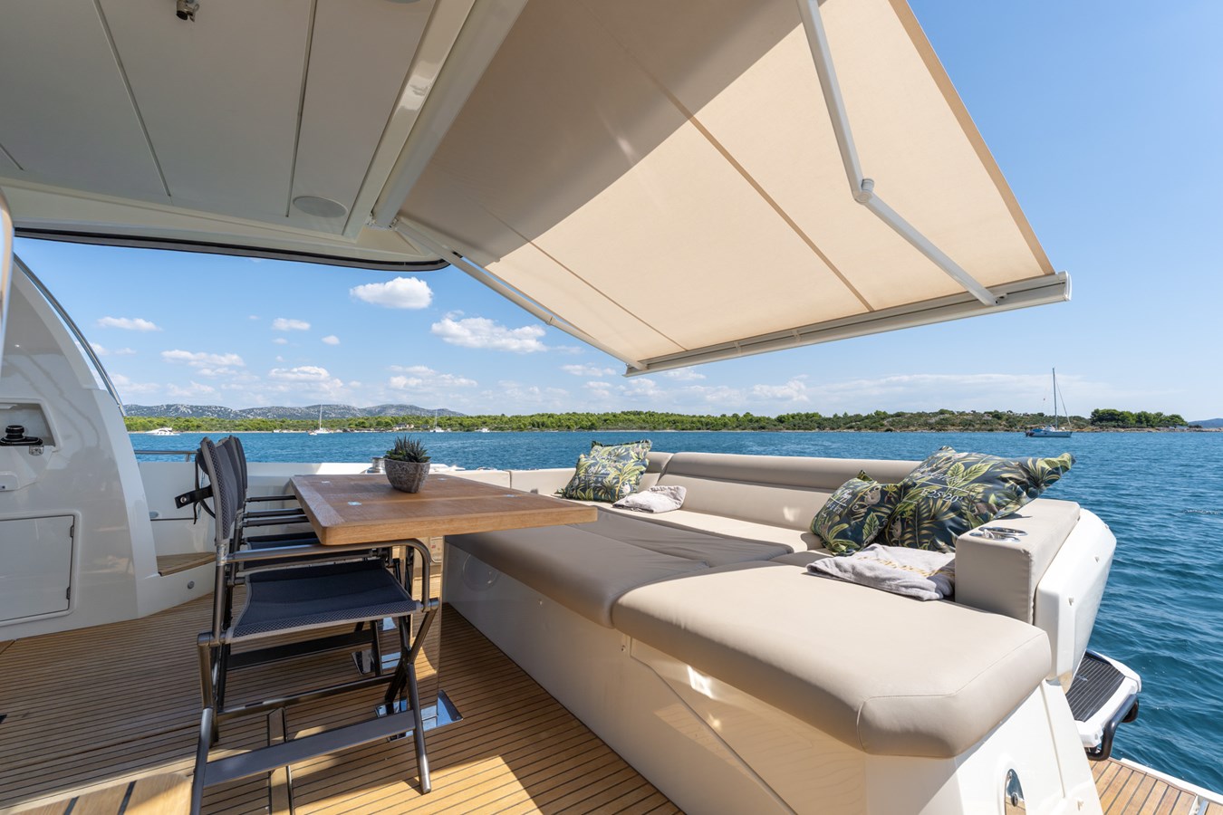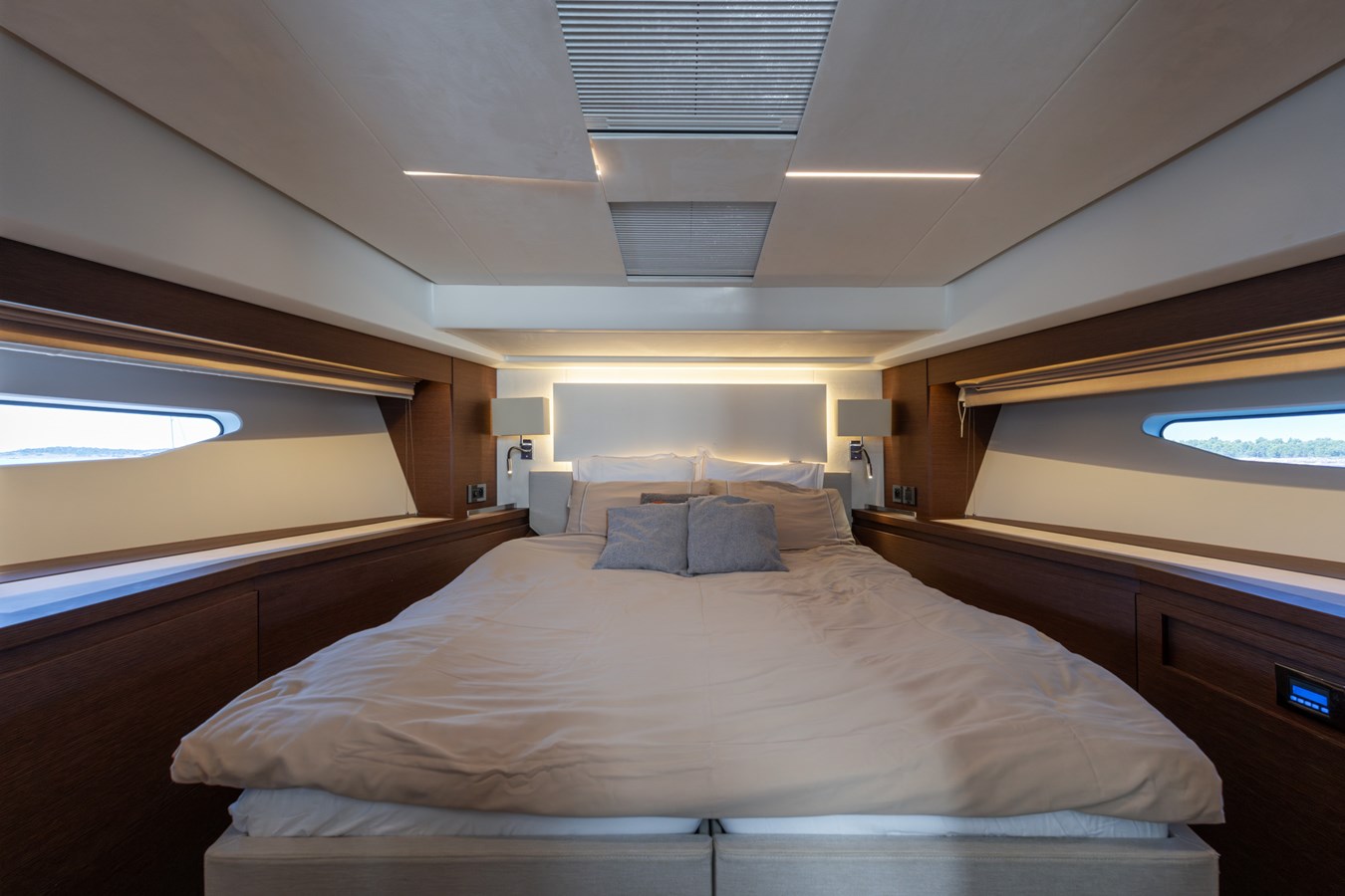 Designed for entertaining and relaxation, her exterior spaces include expansive bow sunpads, a flybridge with grill and fridge for those long summer days and generous al fresco dining aft. Inside, Prestige’s signature contemporary design creates a light-filled, welcoming atmosphere. She accommodates 6 guests in absolute comfort across 3 cabins, including a full-beam Master, a VIP and a versatile Twin/Double, plus separate crew quarters aft.
