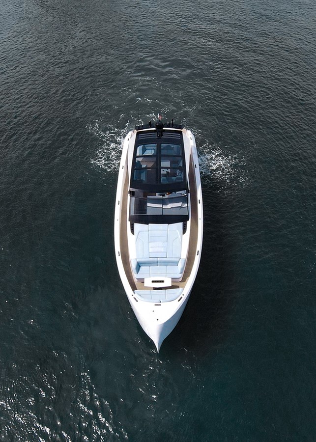 Her sleek white aluminum hull , teak decks, and carbon-fiber hardtop turn heads anywhere she goes. Inside, two stylish cabins, a bright open salon, and premium finishes create an inviting luxury atmosphere.
