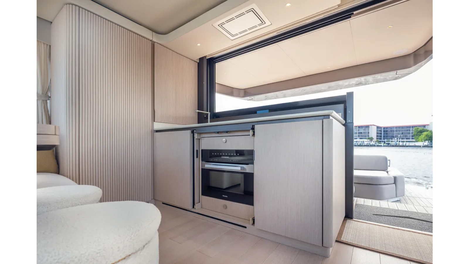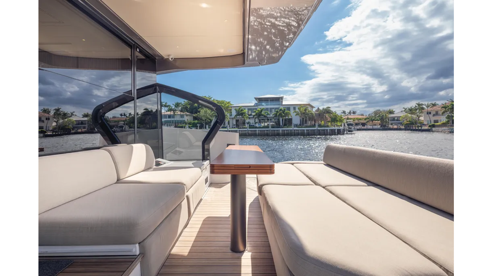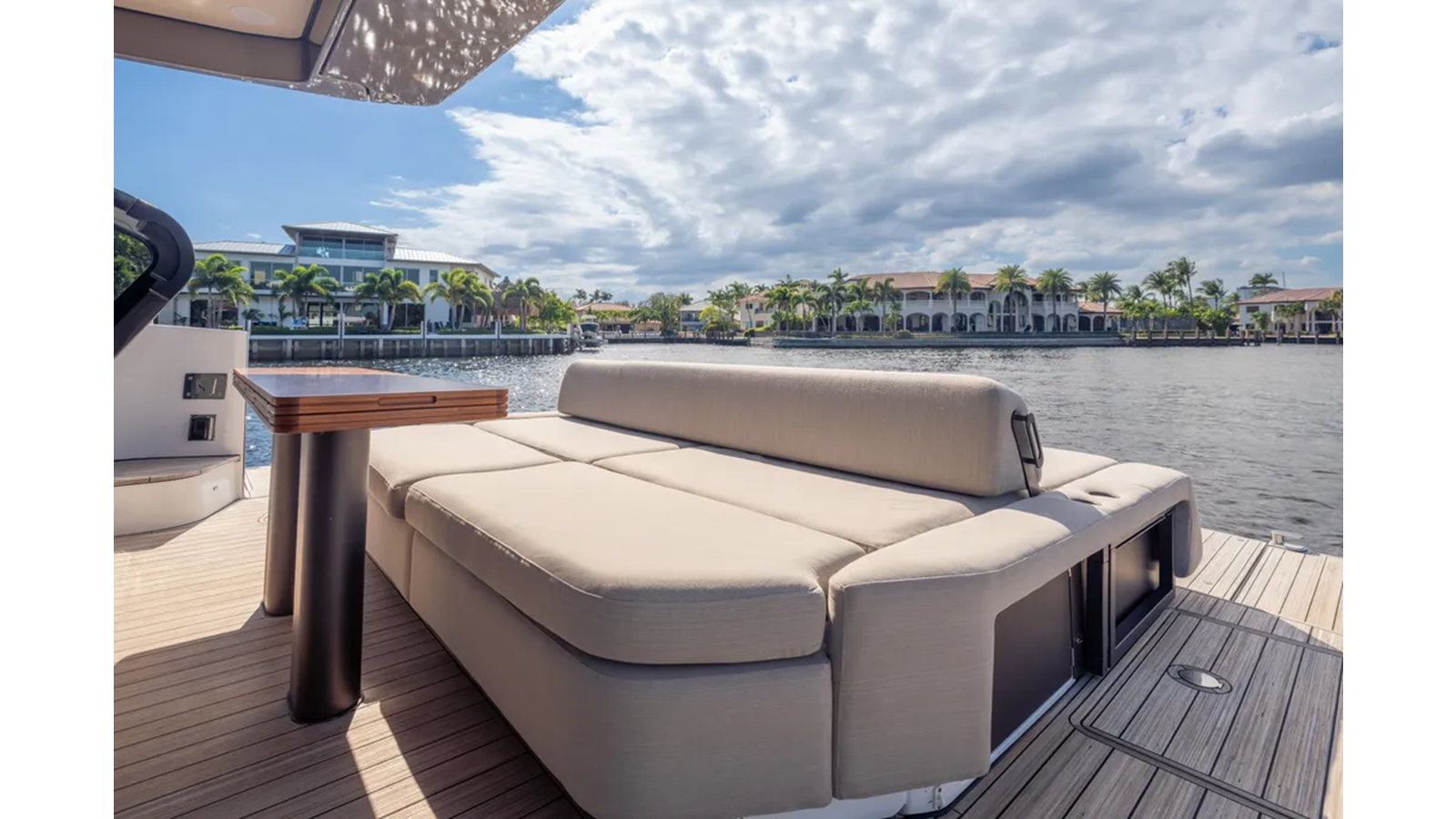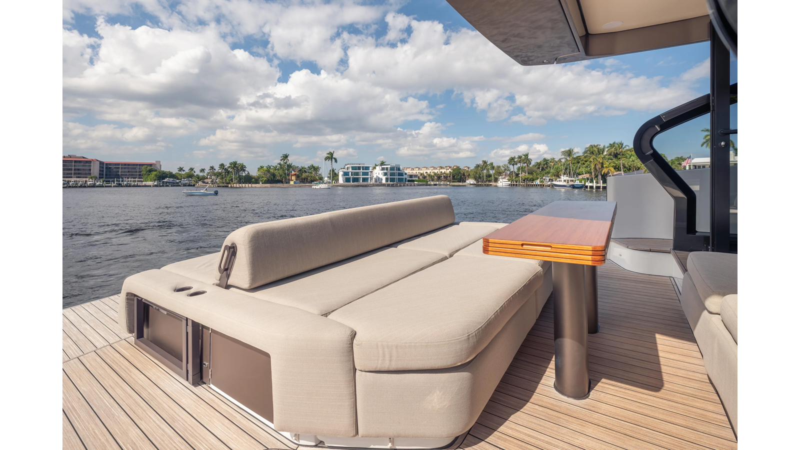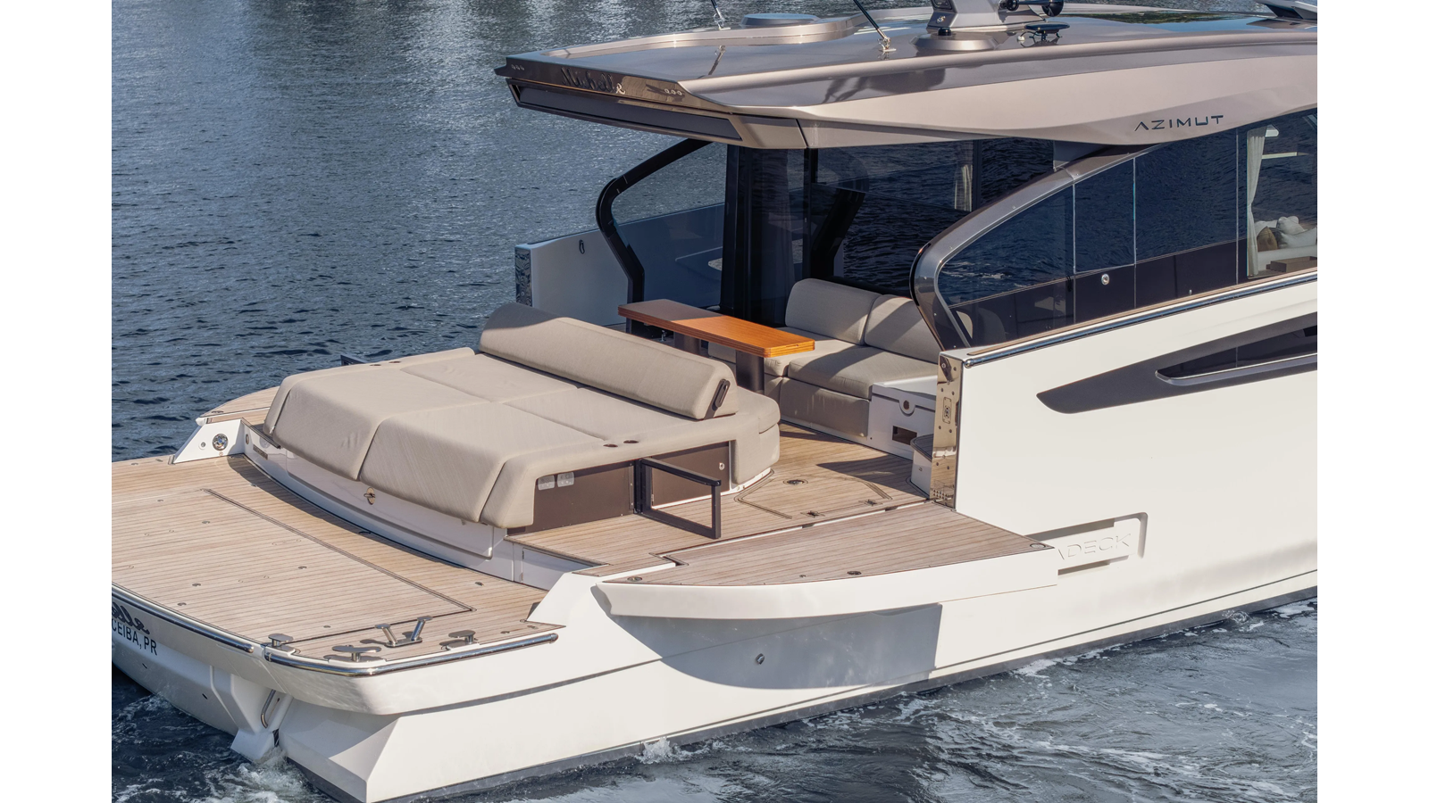 The first model of the first hybrid Series for families developed by Azimut offers seamless cruises with a barrierless, authentic contact with the sea. Embracing a more conscious relationship with nature, Seadeck 6 is the first yacht of the most efficient Series of boats ever designed, thanks to technological solutions aimed at reducing emissions by up to 40% and the Fun Island, a reinvented cockpit that embraces the sea, an unprecedented sea-level outdoor lounge for limitless contact with the water, maximizing the relationship with the ocean to offer an immersive and harmonious natural experience all around and a lifestyle based on well-being.