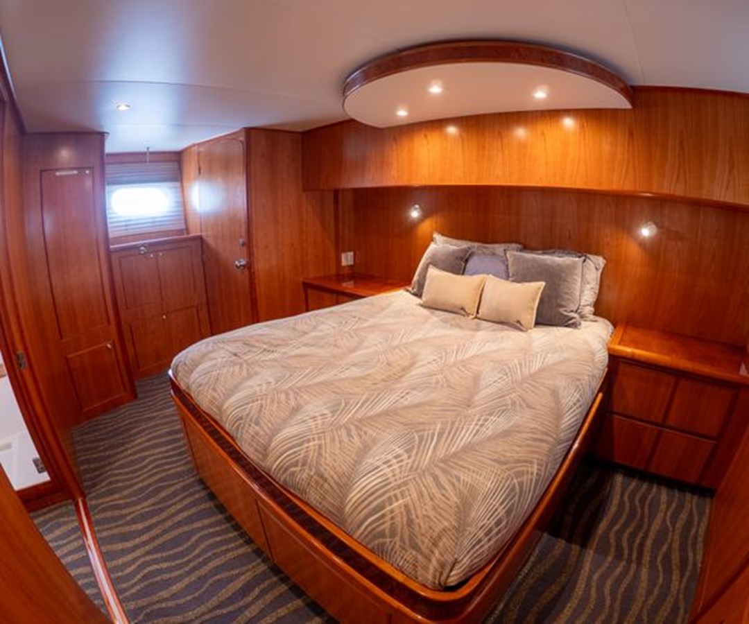 “Foot n Half” is hull #022 of the Nomad Series, a (3) stateroom configuration (plus twin aft crew quarters) with a gorgeous interior and upgrades such as the 3-foot cockpit extension, custom flying bridge (with hardtop & tower), Seakeeper 16 Gyro Stabilizer, Eskimo Ice Machine & extra refrigeration/freezer capacity.