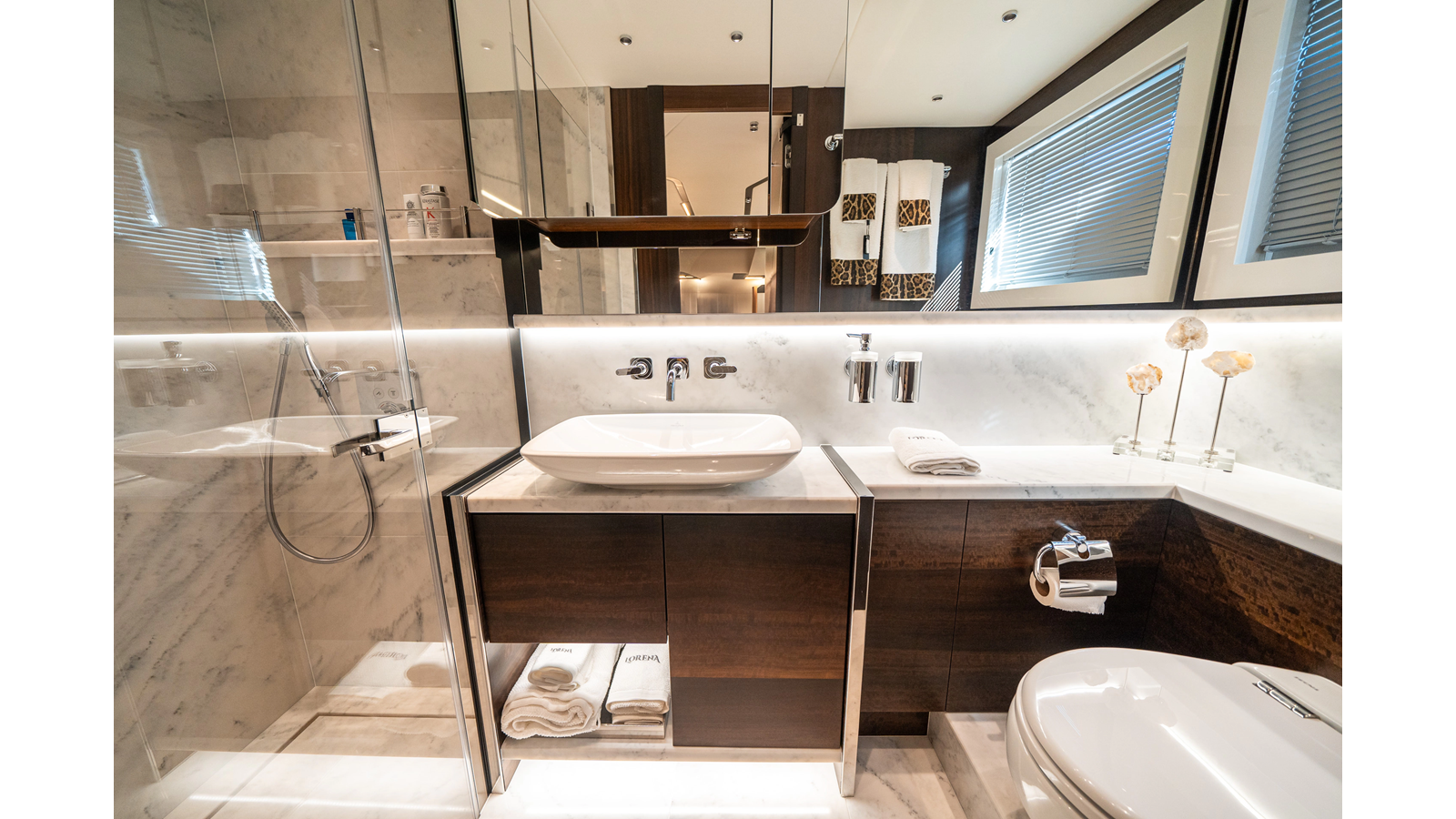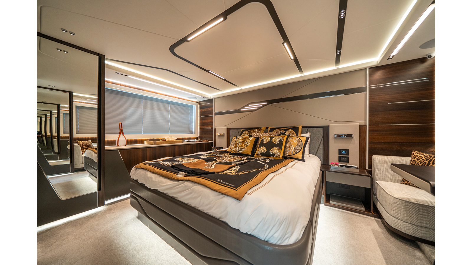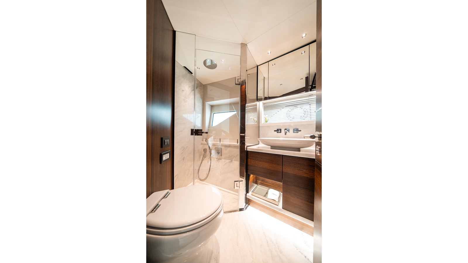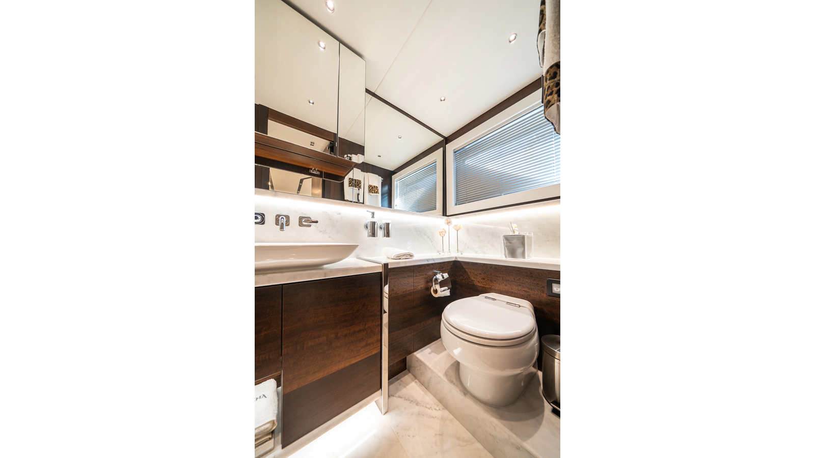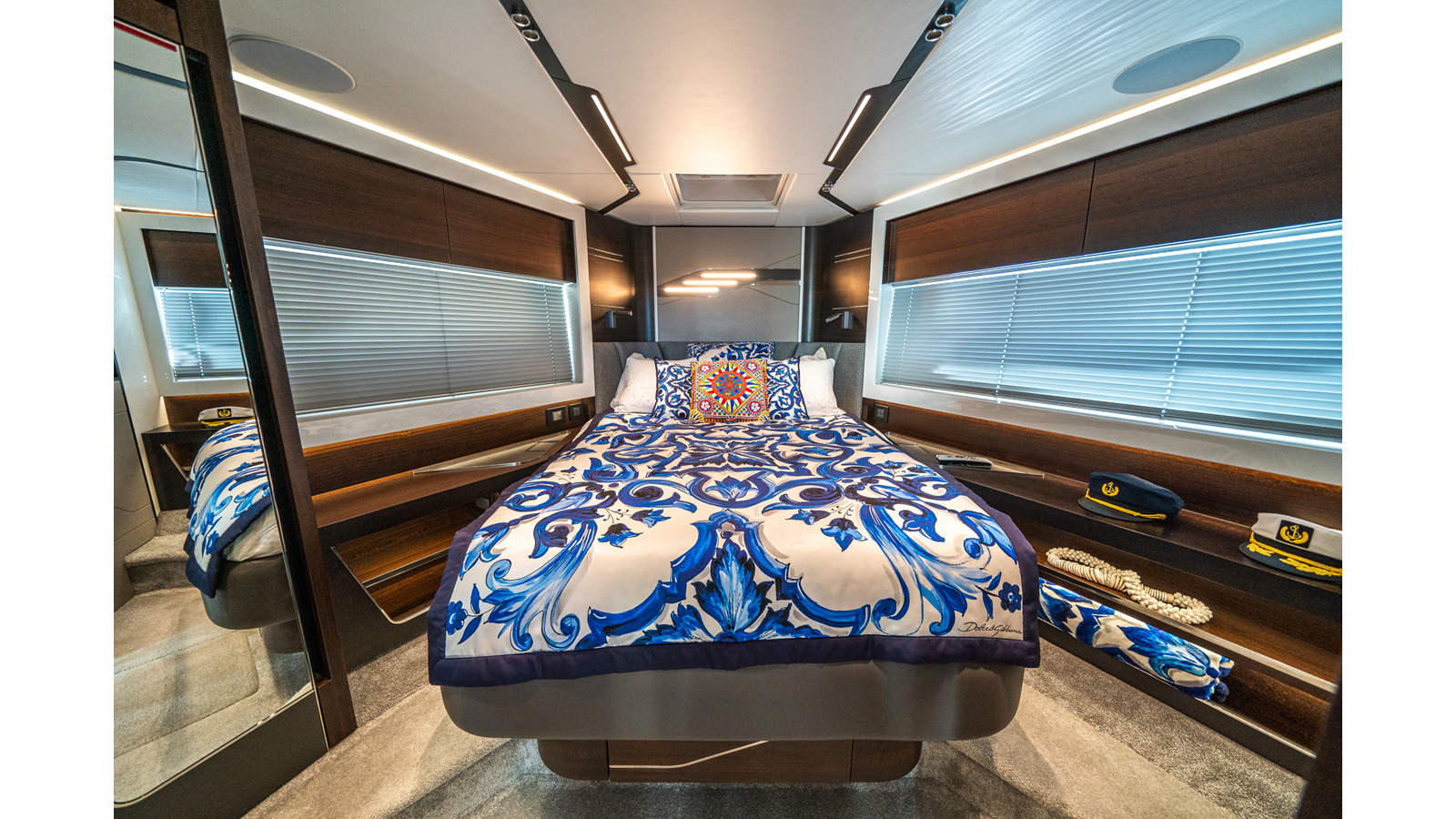 She is powered by twin Volvo IPS 1350s , delivering smooth, efficient performance and top speeds up to 35 knots . Equipped with bow and stern thrusters, Dynamic Positioning System (DPS) , and a Seakeeper stabilization system , this yacht ensures absolute comfort both underway and at anchor.