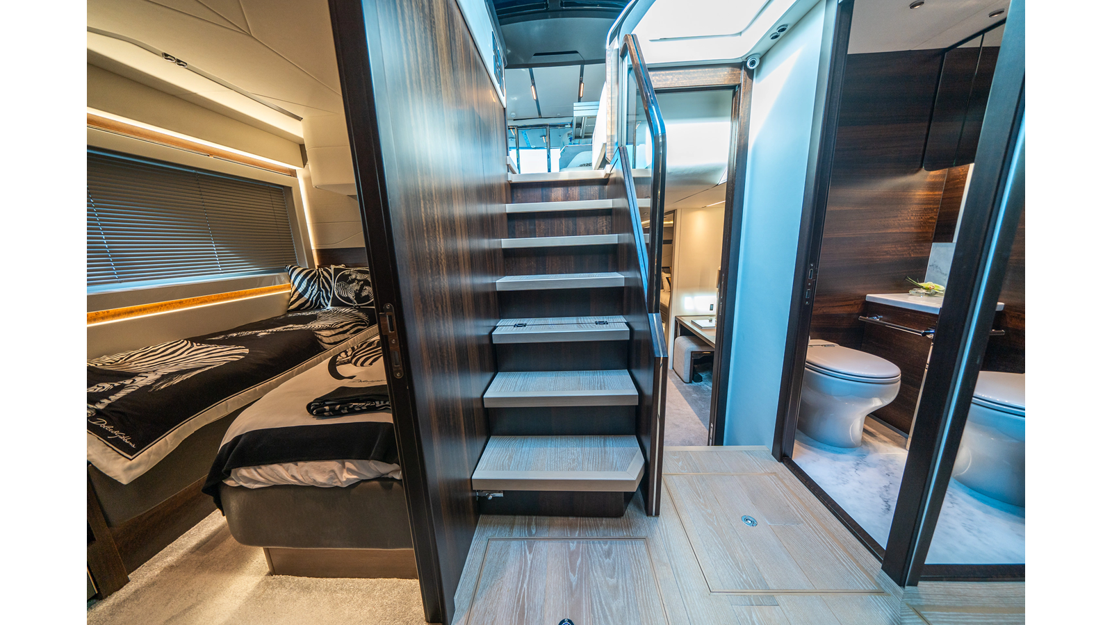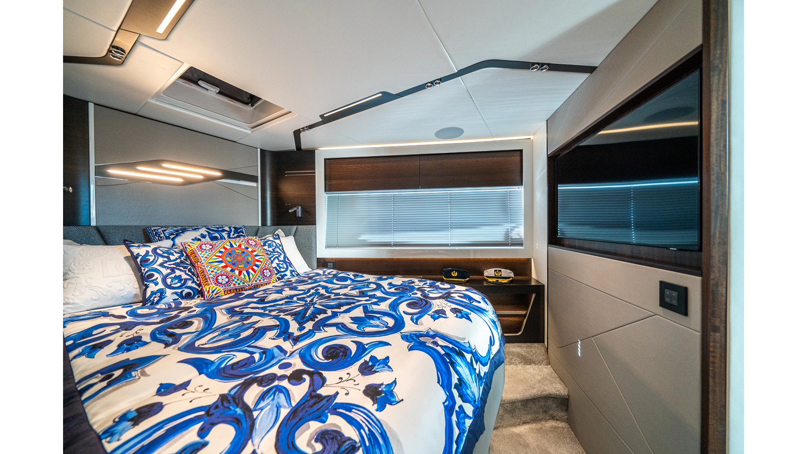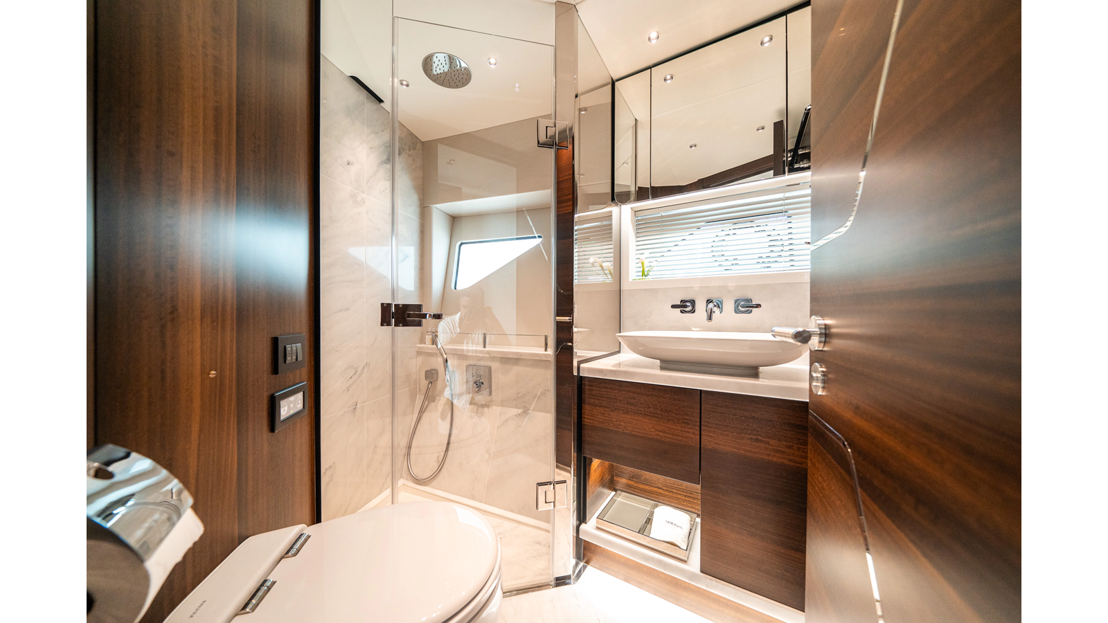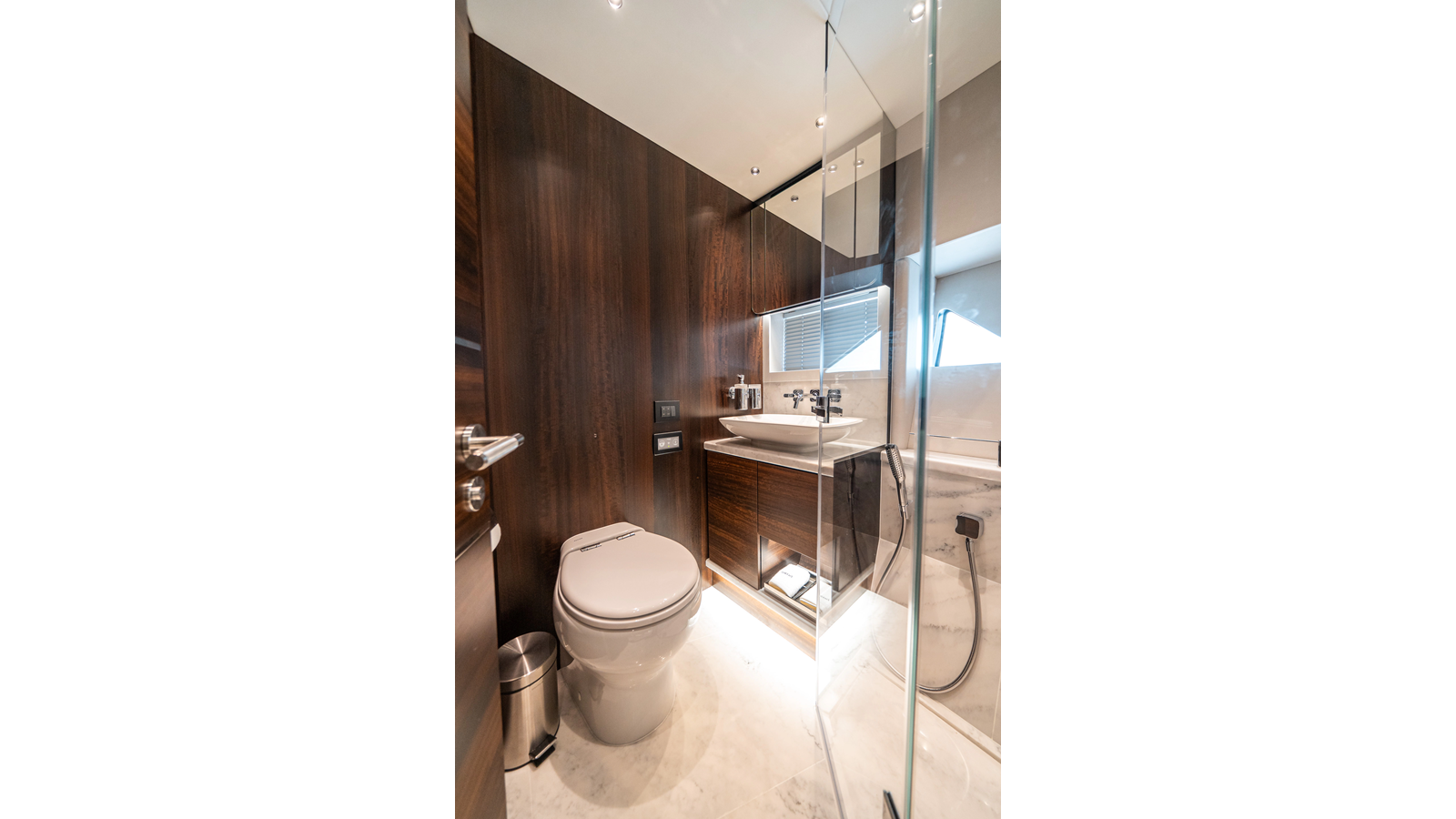 She is powered by twin Volvo IPS 1350s , delivering smooth, efficient performance and top speeds up to 35 knots . Equipped with bow and stern thrusters, Dynamic Positioning System (DPS) , and a Seakeeper stabilization system , this yacht ensures absolute comfort both underway and at anchor.