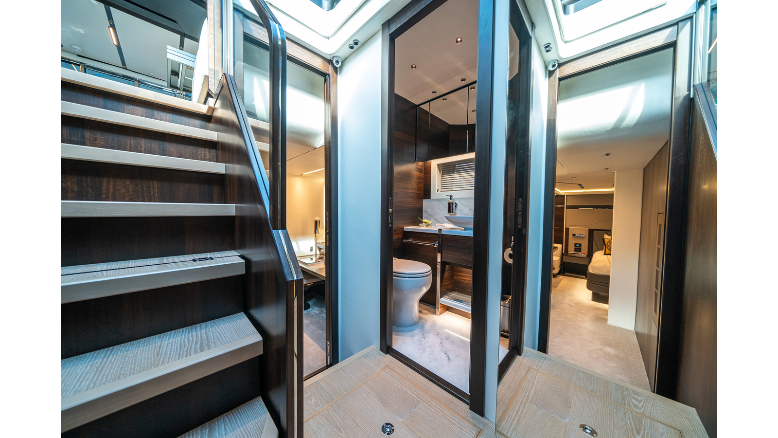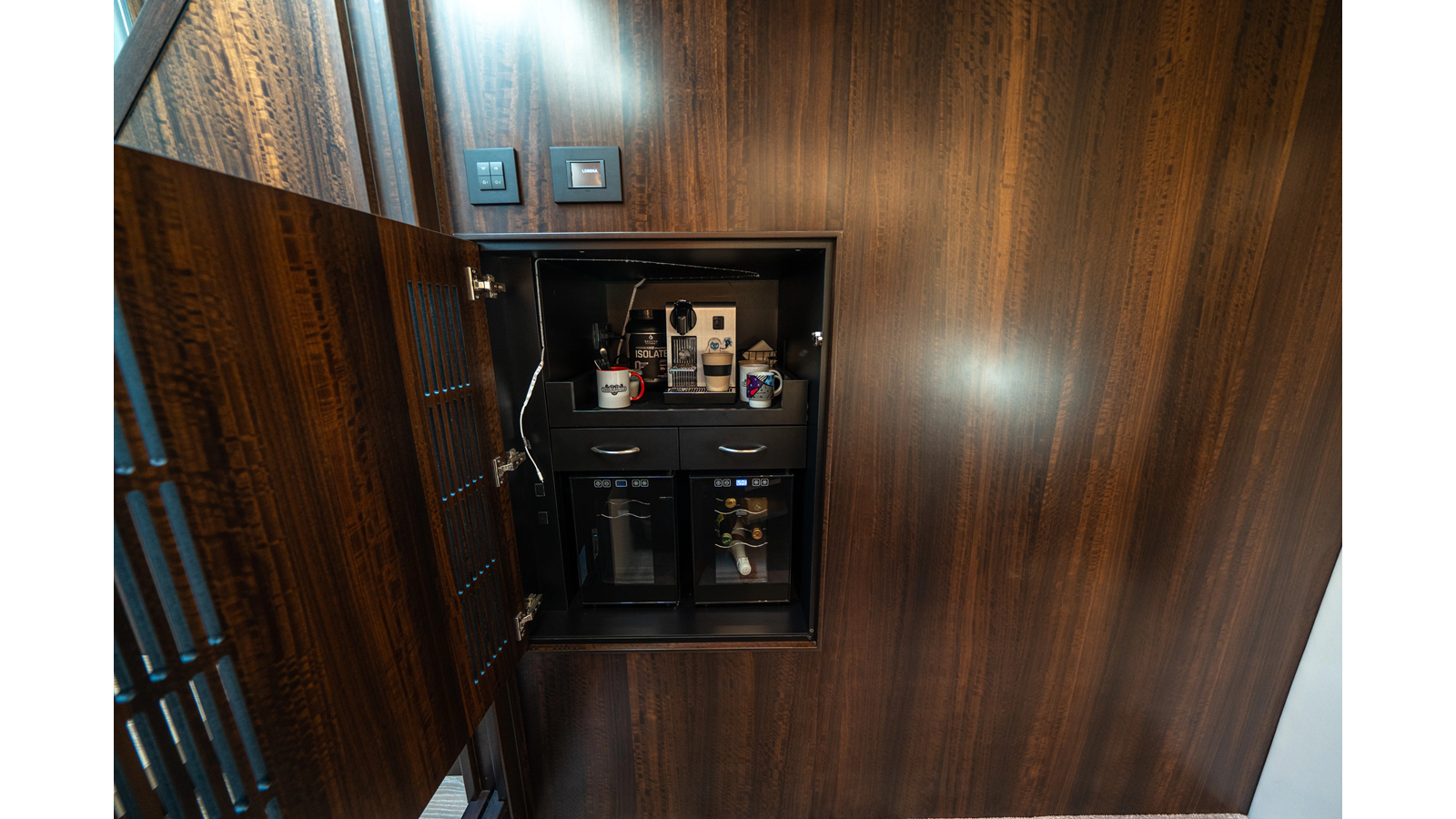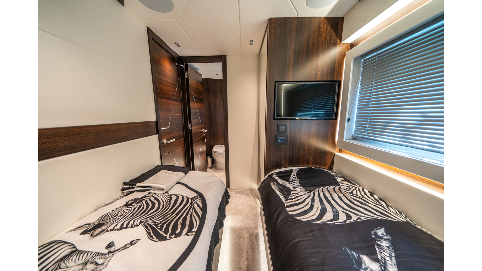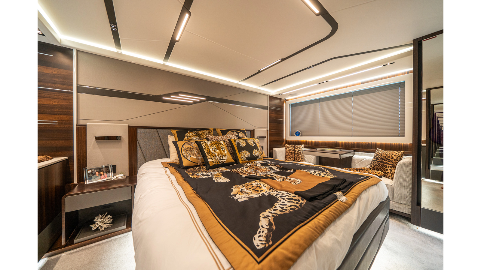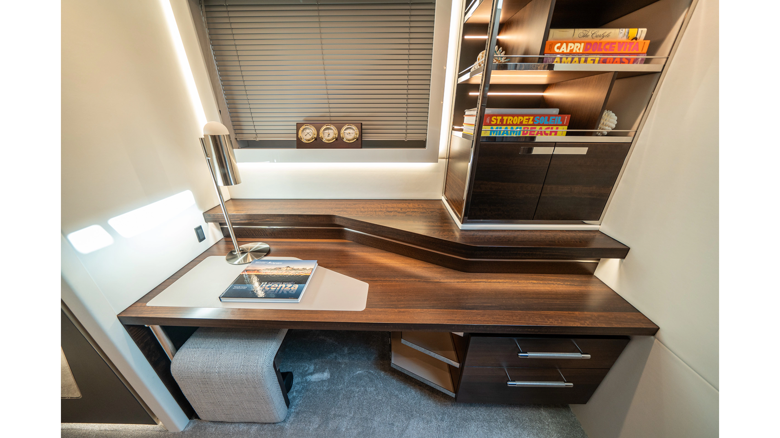 She is powered by twin Volvo IPS 1350s , delivering smooth, efficient performance and top speeds up to 35 knots . Equipped with bow and stern thrusters, Dynamic Positioning System (DPS) , and a Seakeeper stabilization system , this yacht ensures absolute comfort both underway and at anchor.