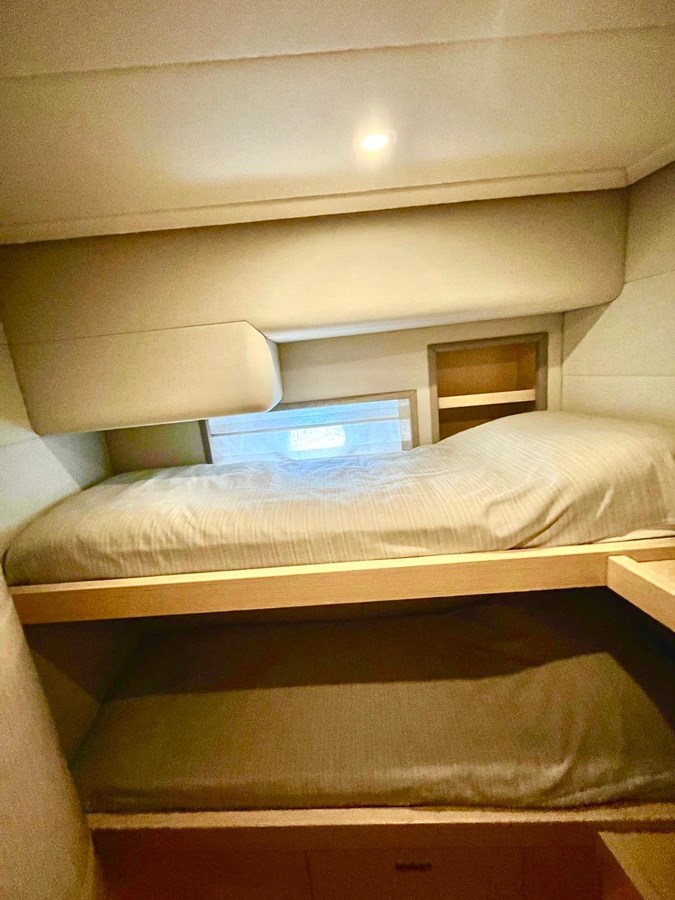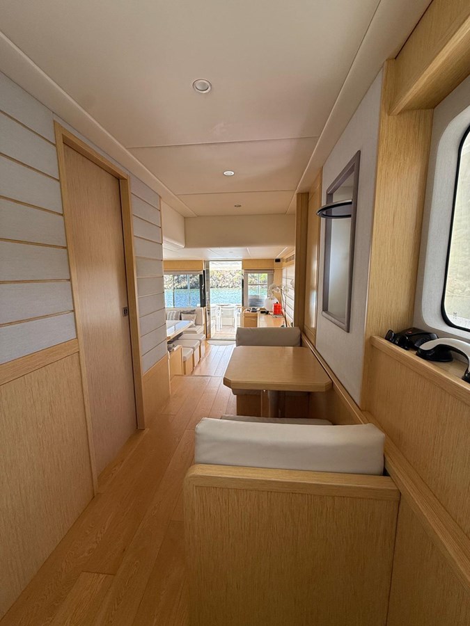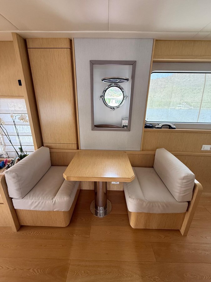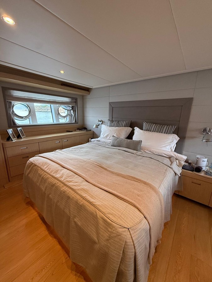 The interior is a masterpiece of refined woodwork, fine leather, and premium fabrics, creating a warm and inviting atmosphere. Her smart layout ensures comfort for both owner and guests, making her ideal for family cruising as well as entertaining.