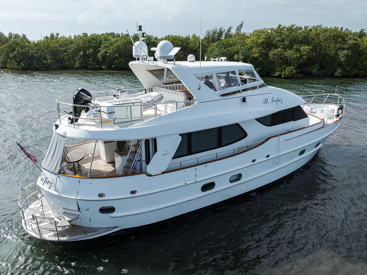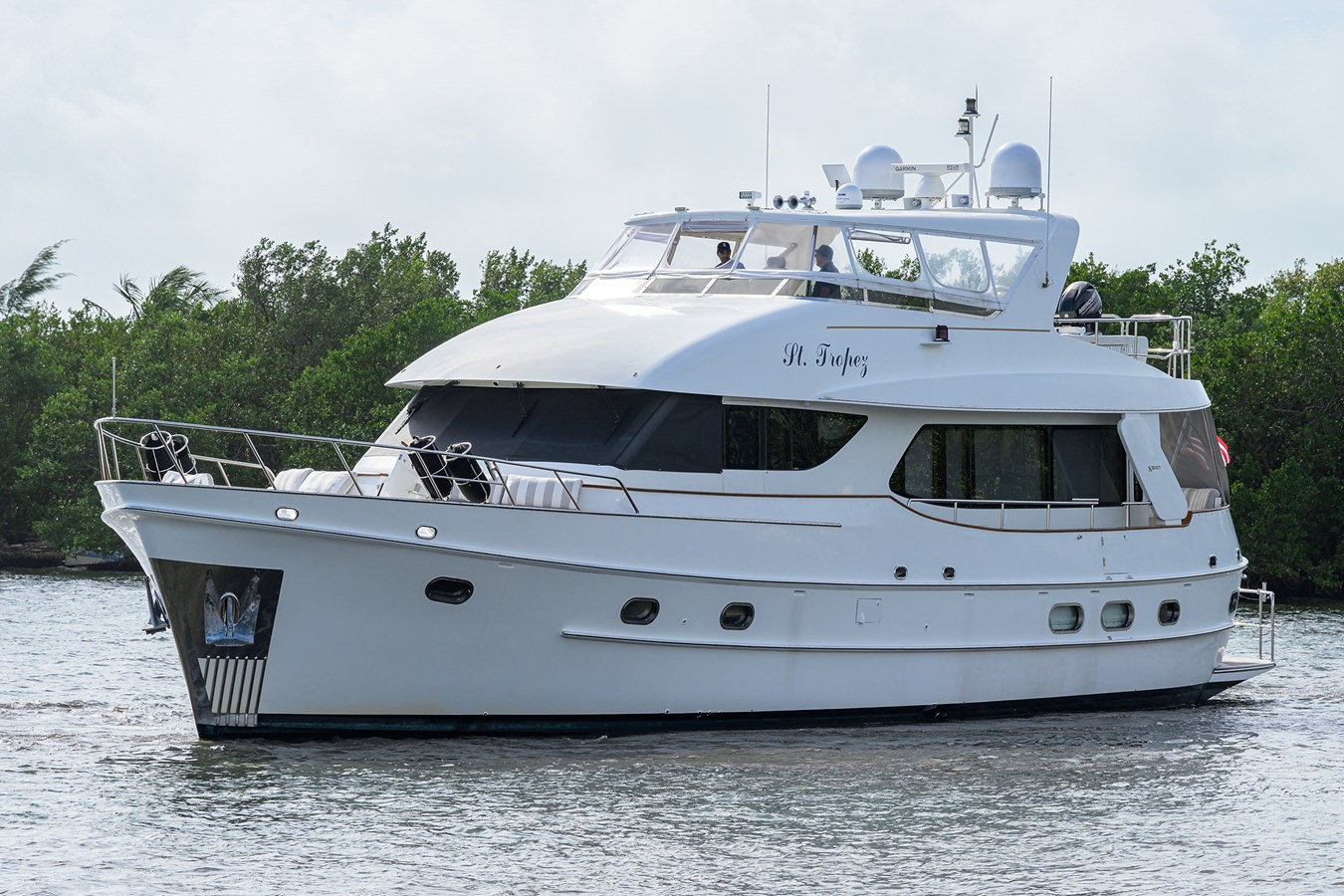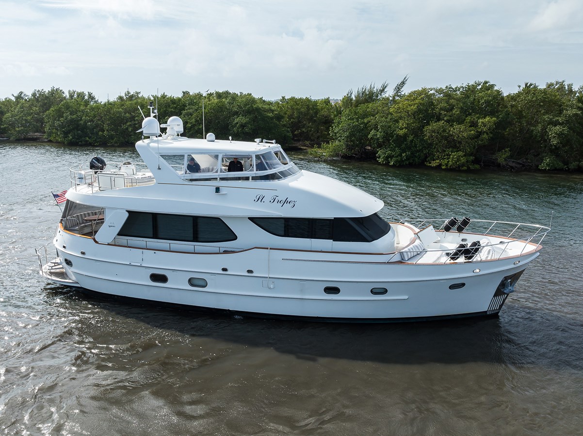 Built by Cheoy Lee, the shipyard known for building heavy-duty commercial vessels expected to operate 24/7 in demanding conditions. Why would you expect less from your yacht? This little ship has a range of 2420 NM at 8.7 knots and the top speed is 12.5 knots. ST. TROPEZ has numerous factory options including an award-winning Sylvia Bolton interior design. The interior features 4 staterooms, a spacious salon and dining area, a main deck day head, a separate functional galley with full-size appliances, a separate pilothouse, a beautiful master with a bathtub, 2 luxurious VIPs and either a crew stateroom or the 4th stateroom, all with en-suite heads. Complete navigational electronics in flybridge helm and inside pilothouse, audio/visual electronics in each stateroom and salon, upgrades include granite countertops throughout, a day head, stainless steel appliances, leather settees, upgraded engine package and power rotating davit just to mention a few. Dinghy and outboard are included in the sale. St.Tropez is owned by a pilot and an airplane enthusiast, she is maintained with the philosophy of aircraft reliability and quality.