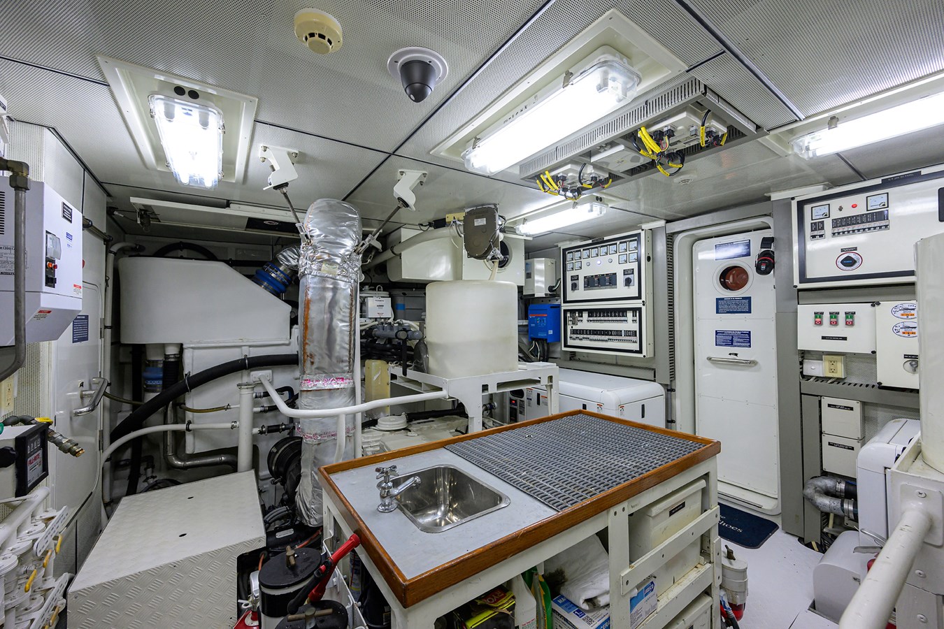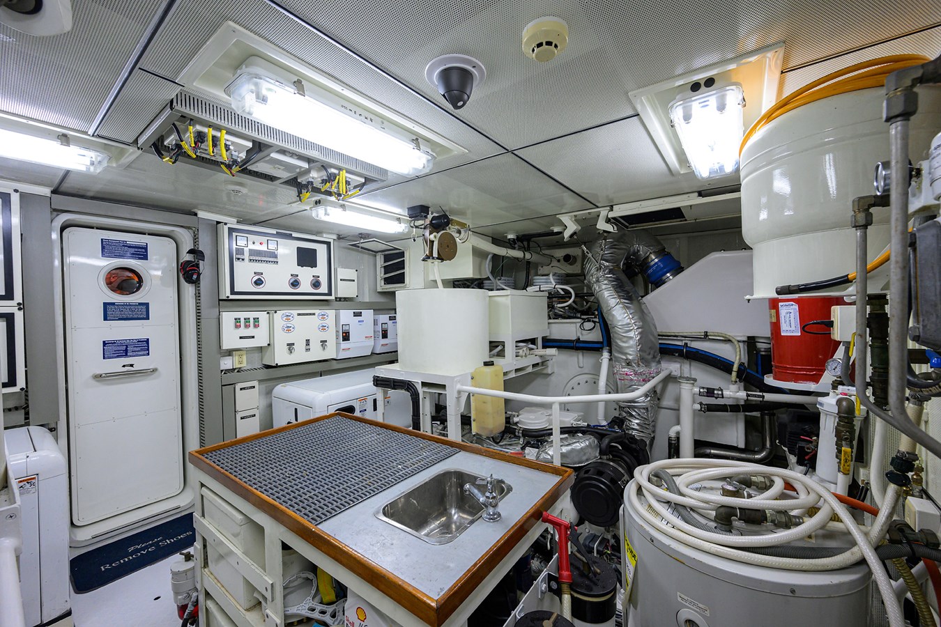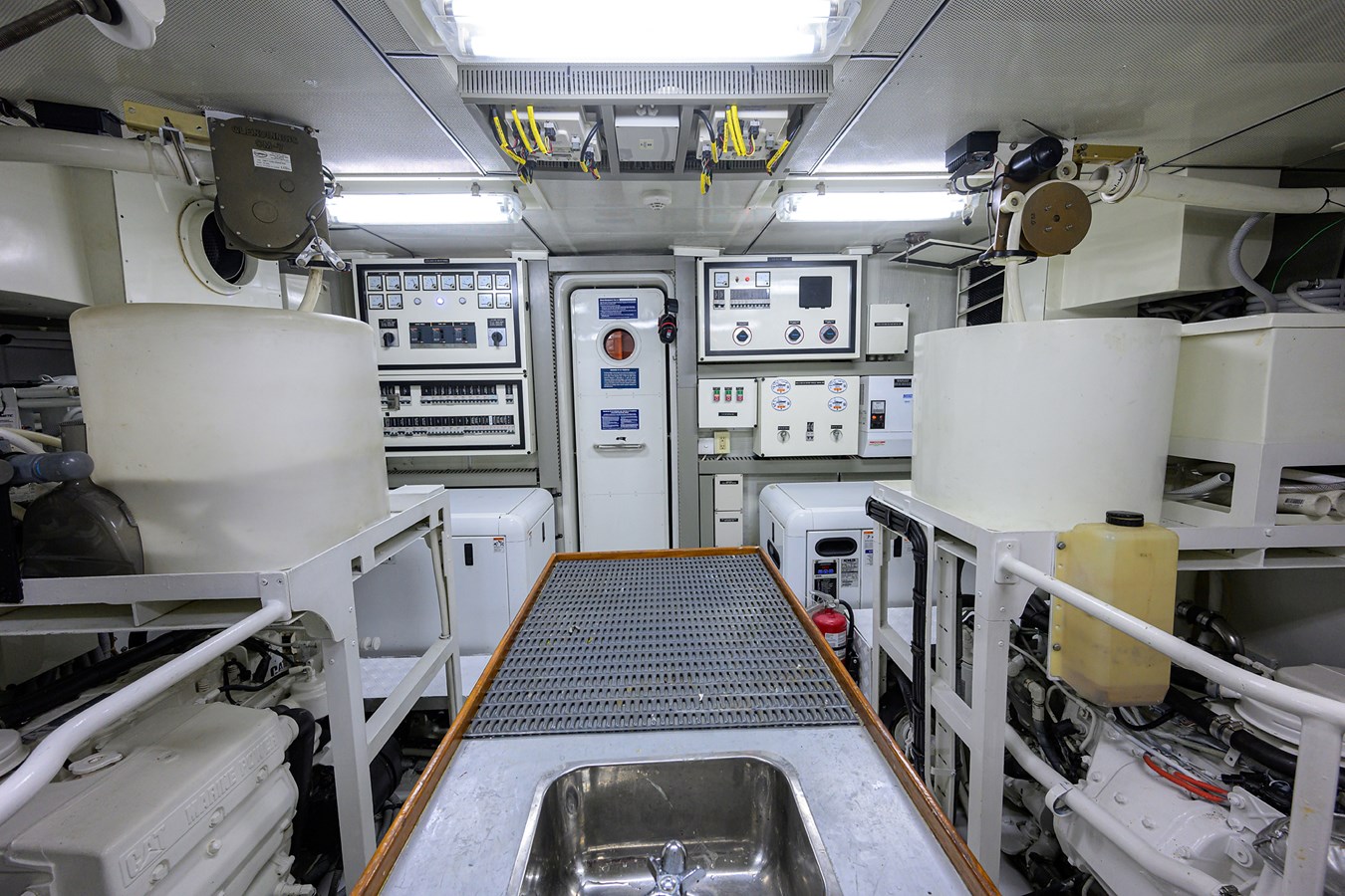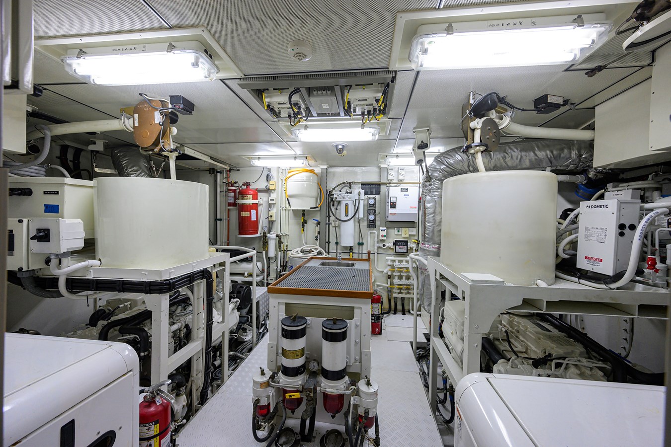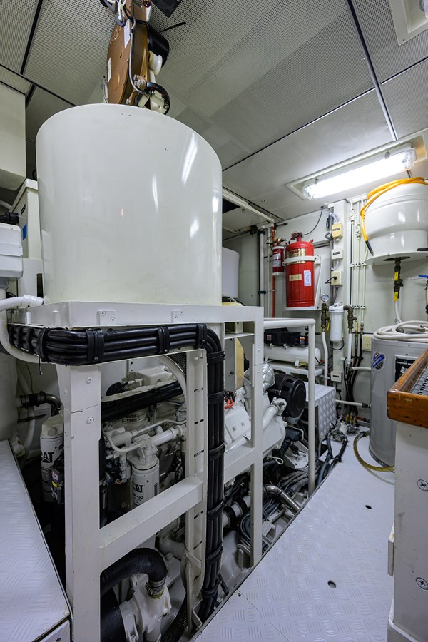 Powered by twin Caterpillar C7 ACERT 454BHP diesels offering extremely long-range cruising, bow thruster for ease of docking with remote electronic engine controls, twin 20kW Kohler generators, and much more. Only 1300 hours on mains and 1600 on generators.