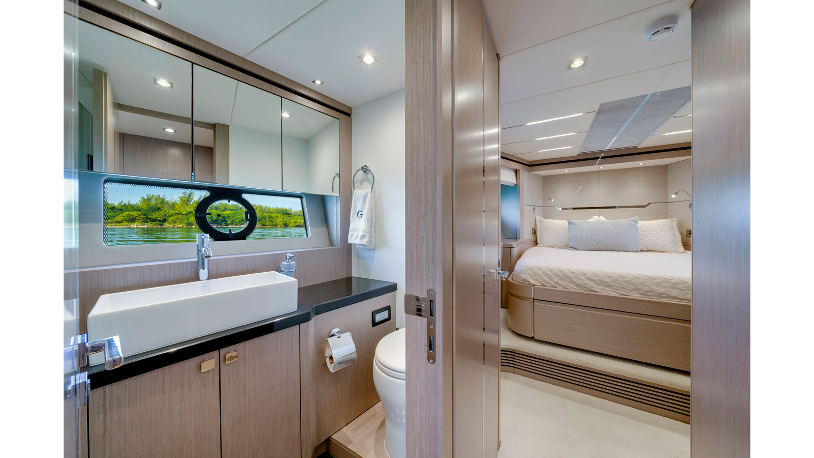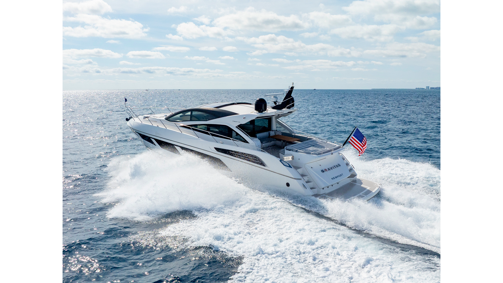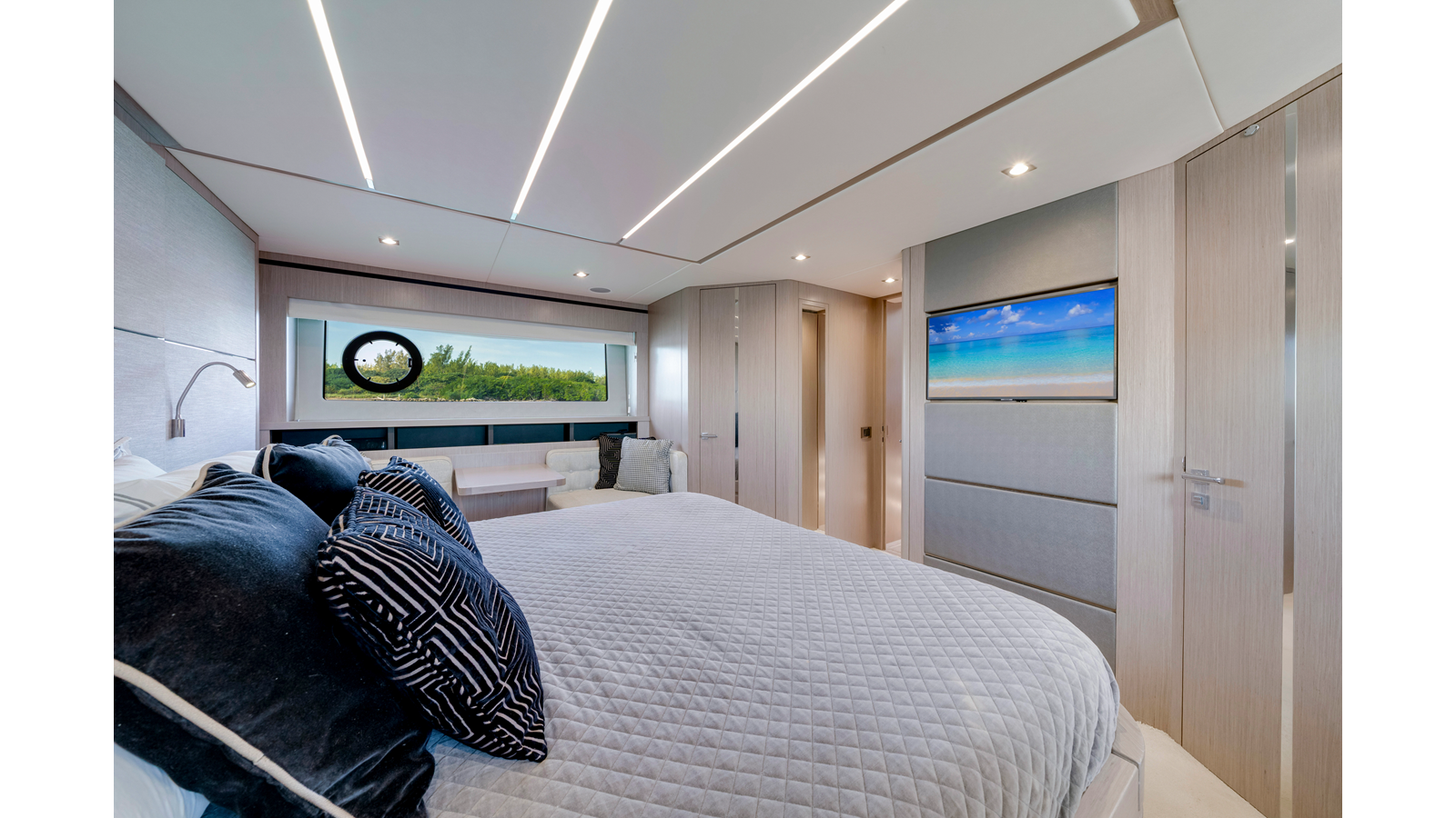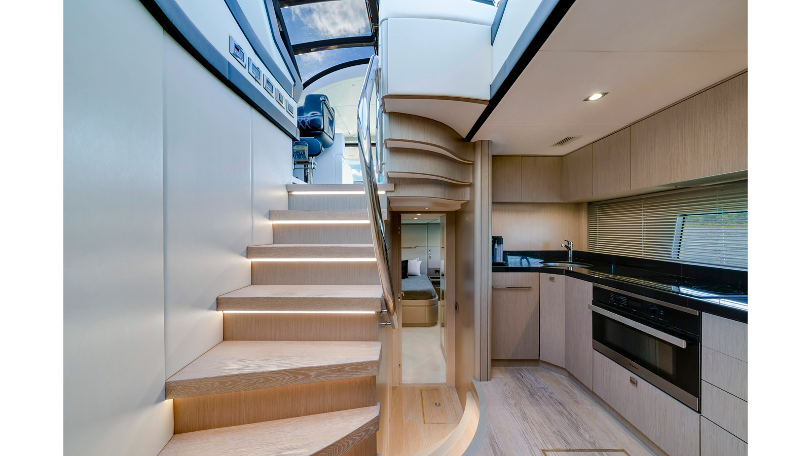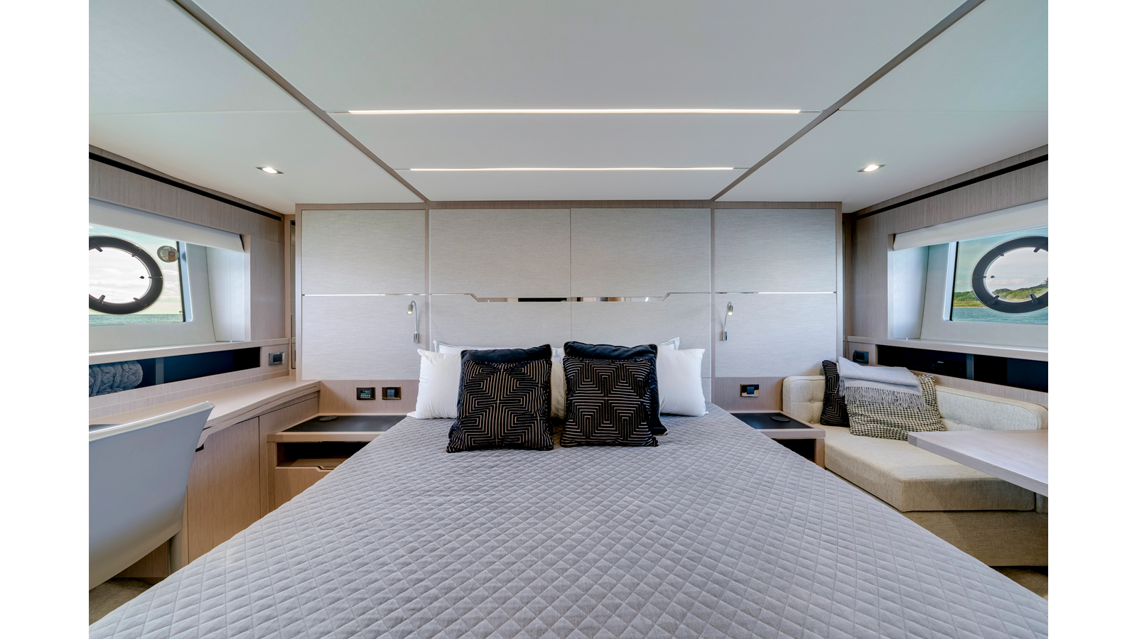 The Predator 68 offers aggressive styling, powerful performance of up to 36 knots, and luxurious light-filled interiors.