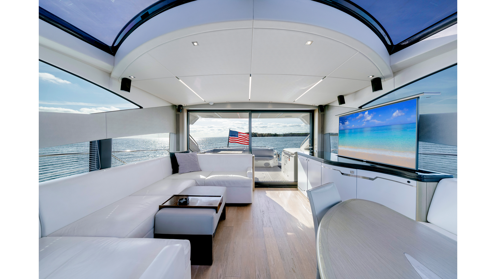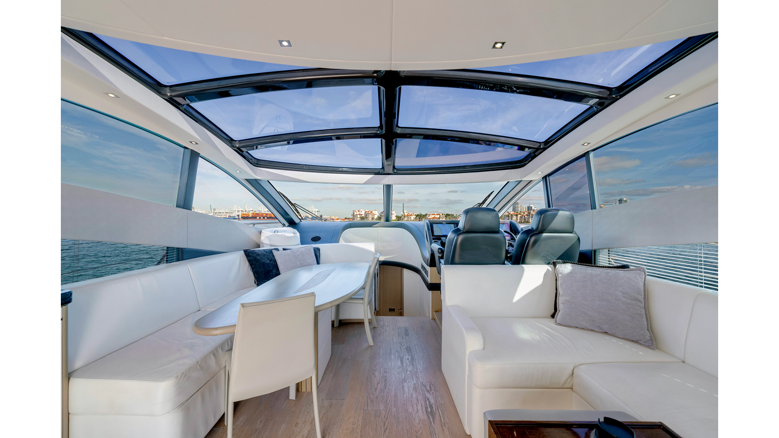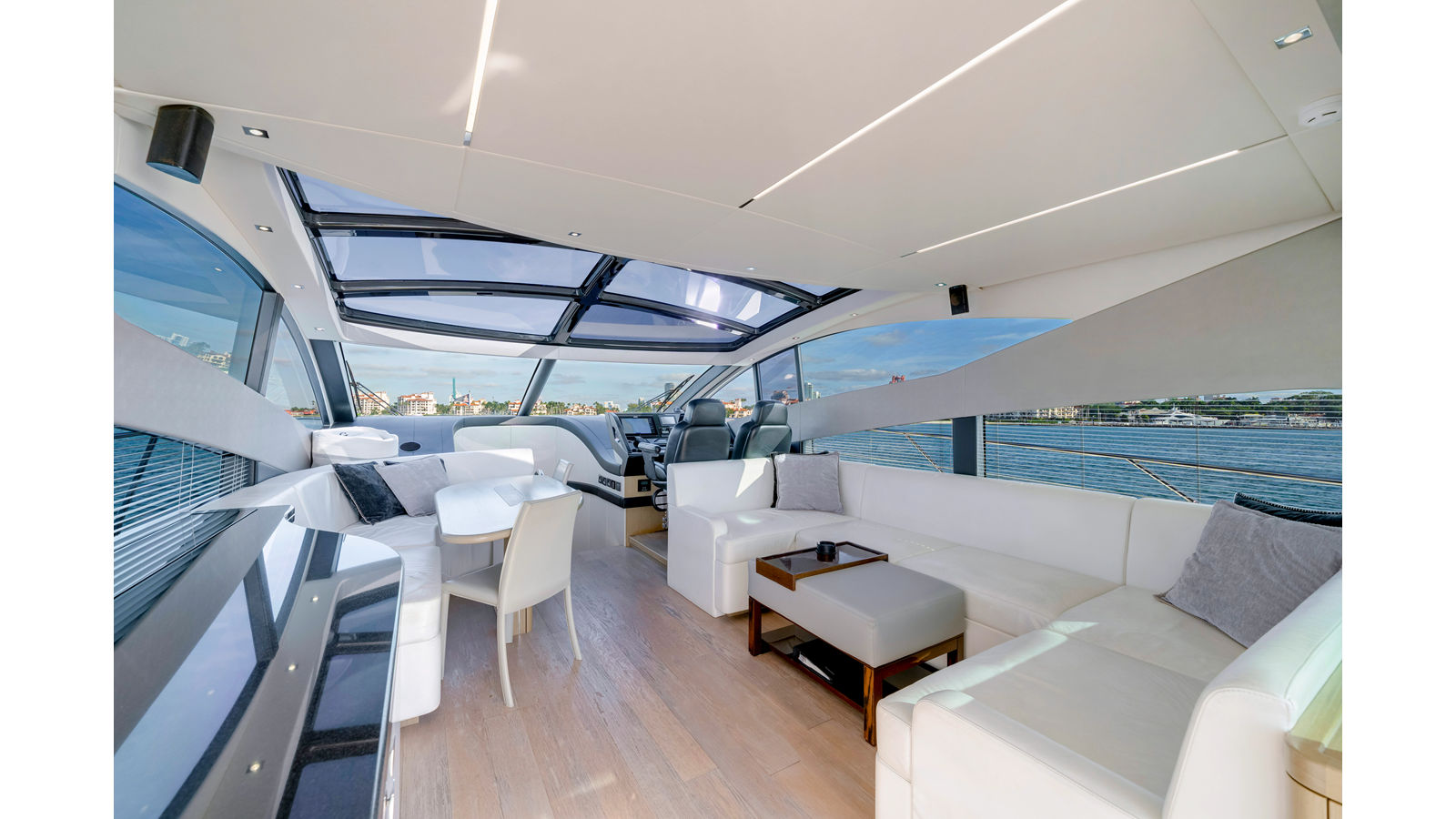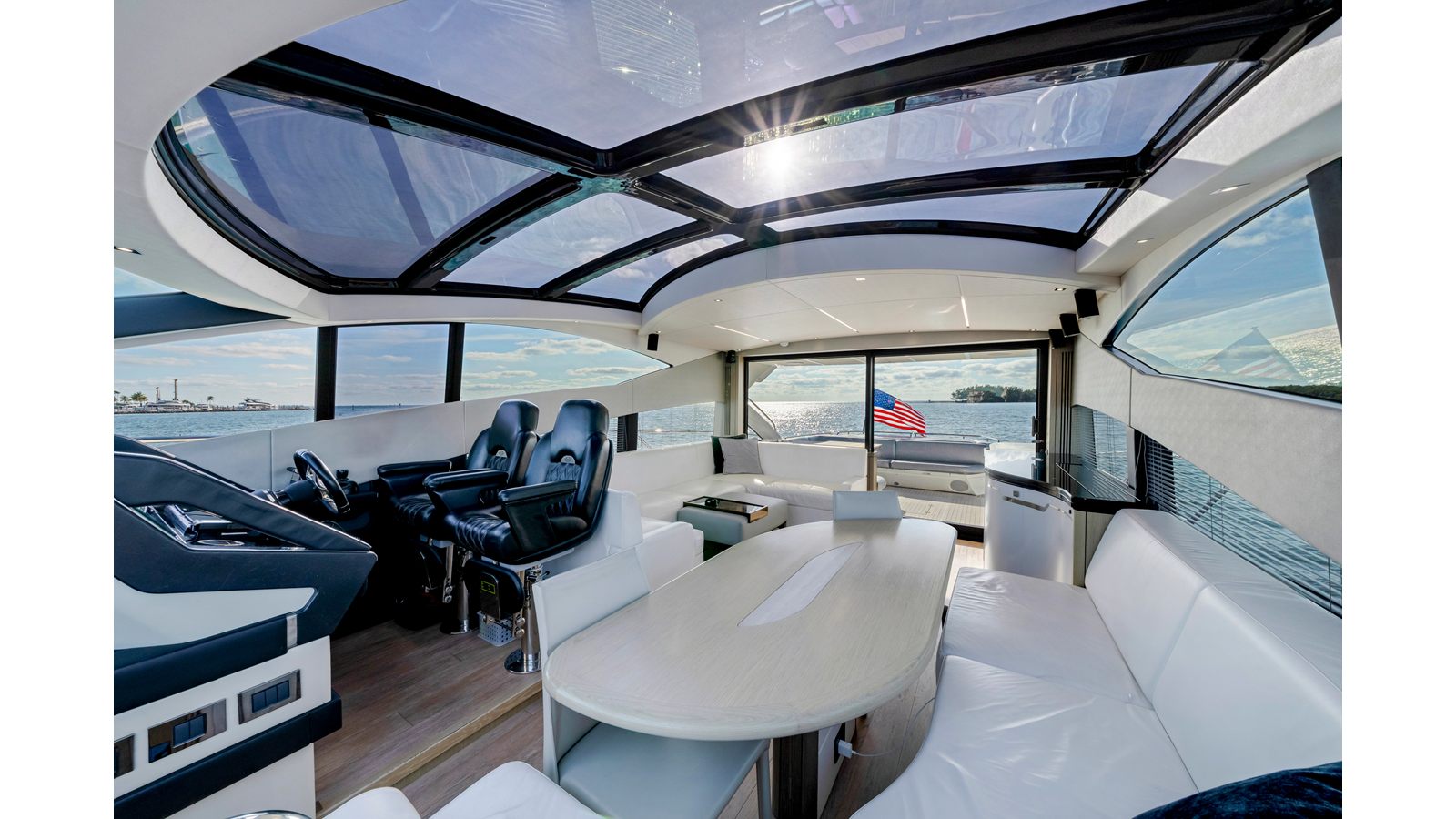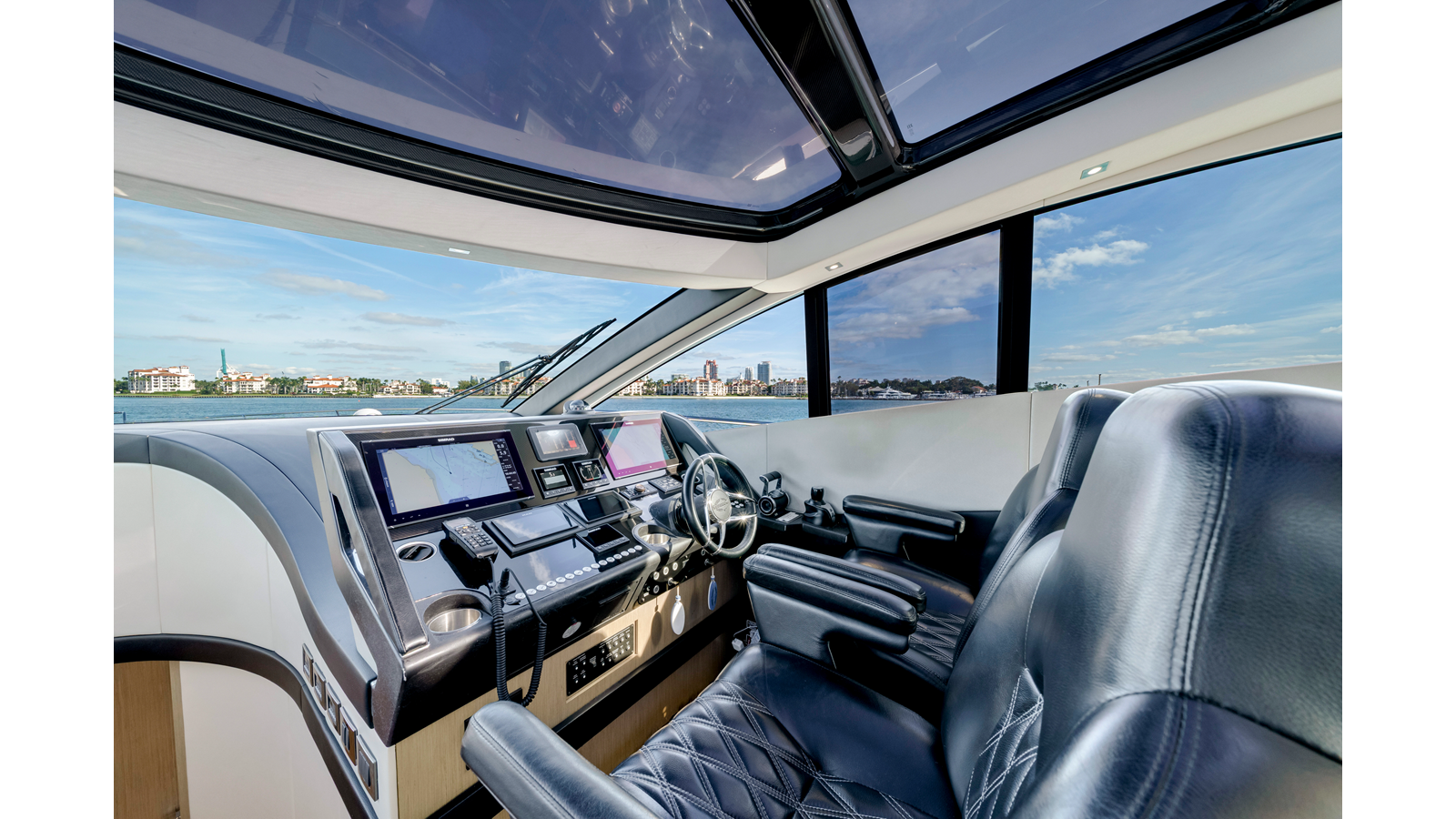 With a large sunroof, frameless windows, a hydraulic swim platform, tender garage, and premium finishes, she blends indoor/outdoor living while delivering the speed, style, and comfort ideal for effortless entertaining.
