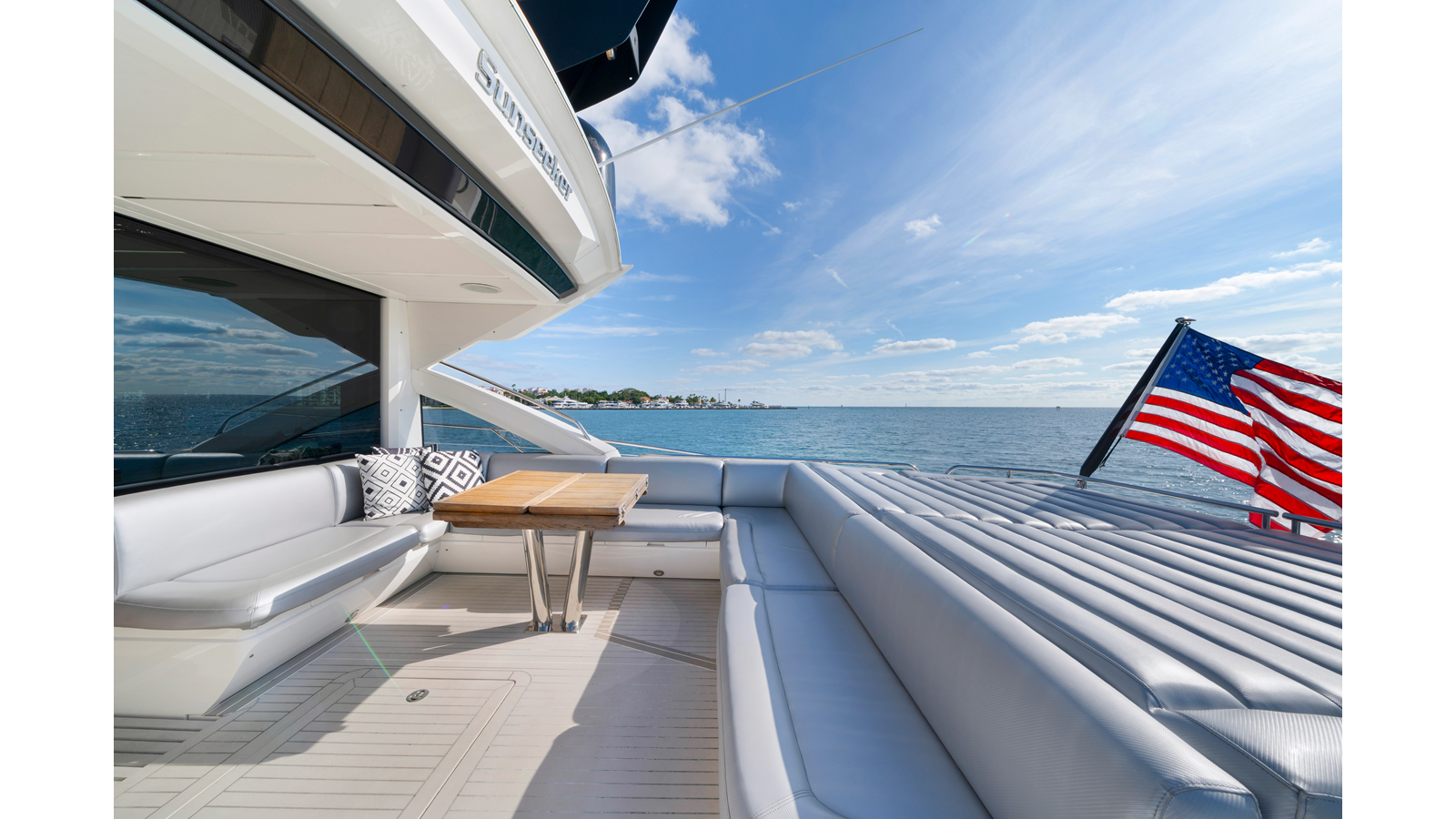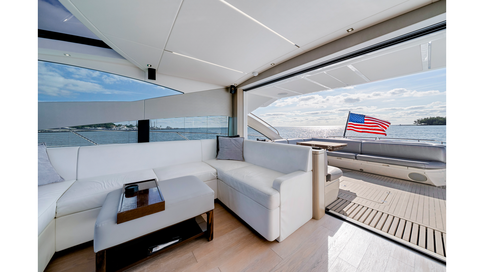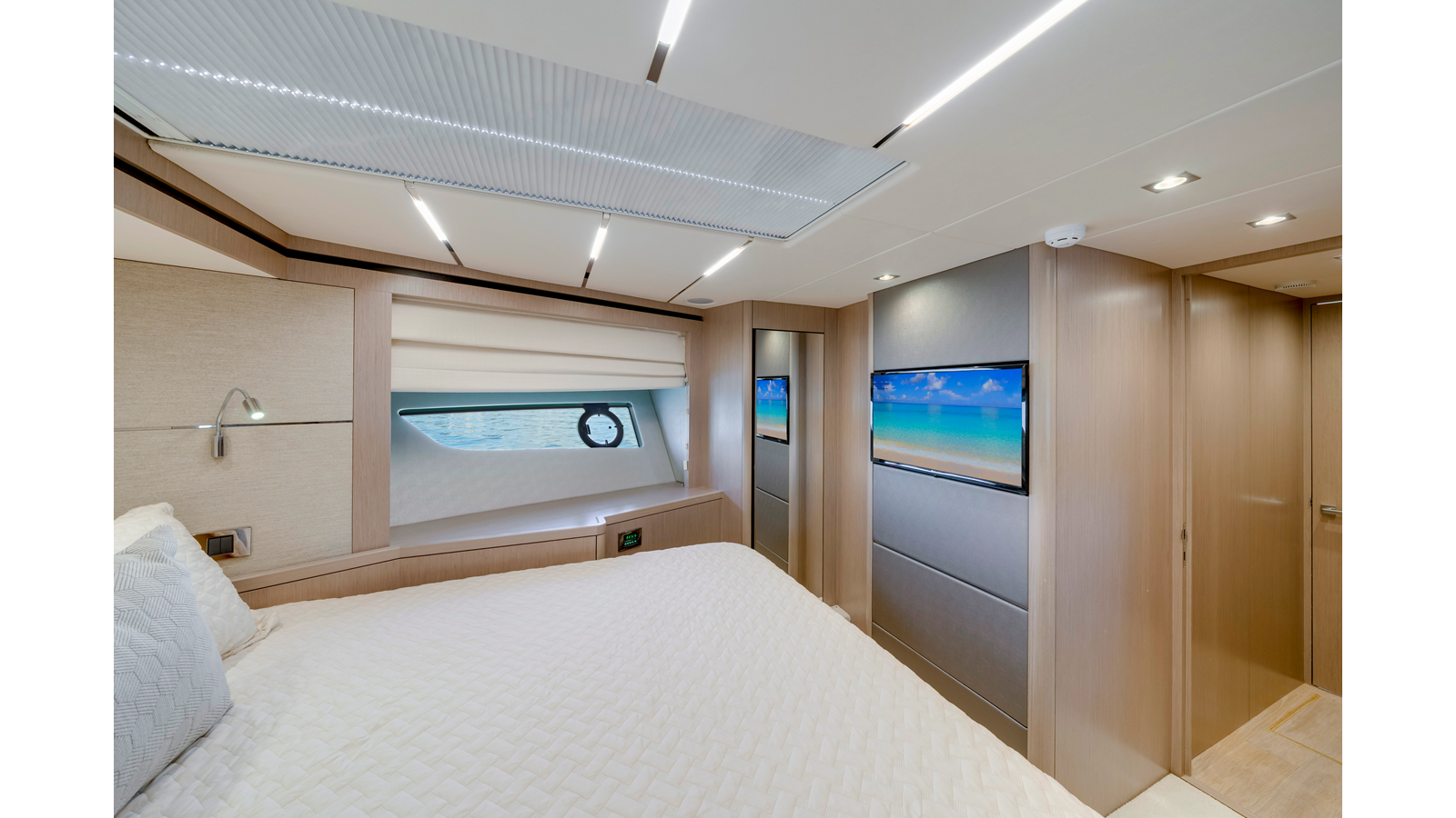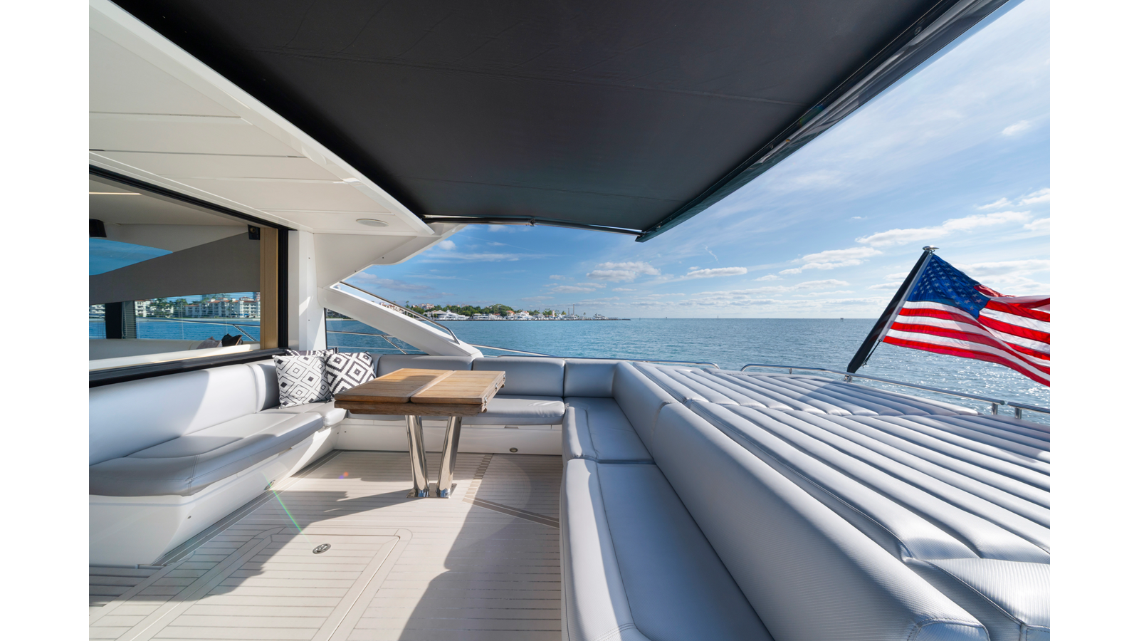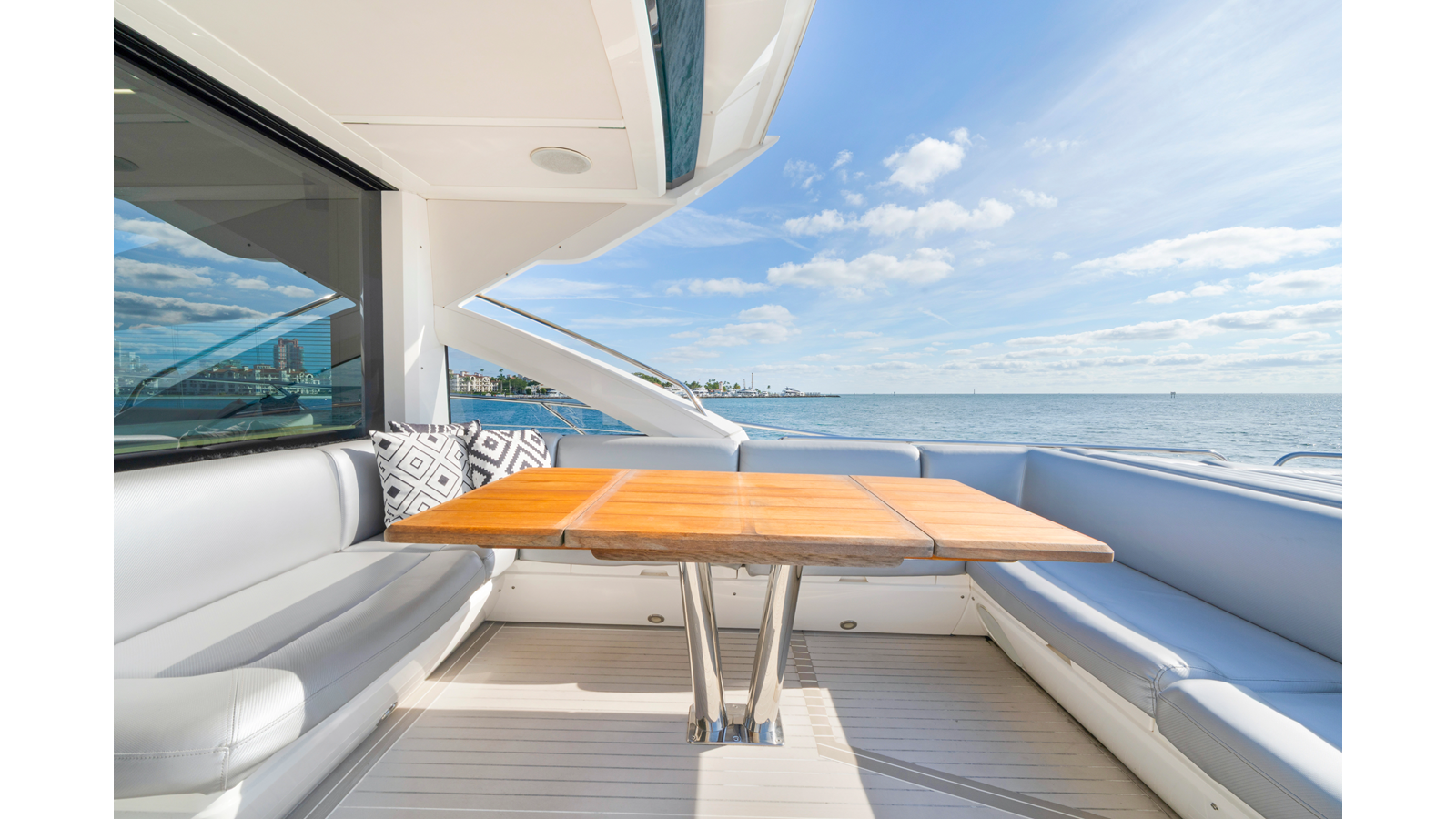 With a large sunroof, frameless windows, a hydraulic swim platform, tender garage, and premium finishes, she blends indoor/outdoor living while delivering the speed, style, and comfort ideal for effortless entertaining.