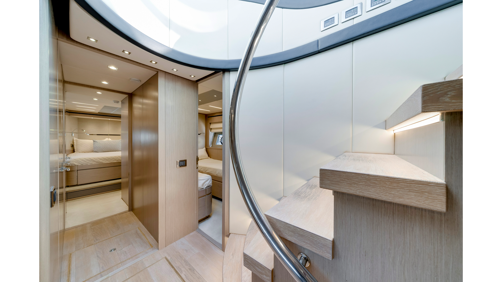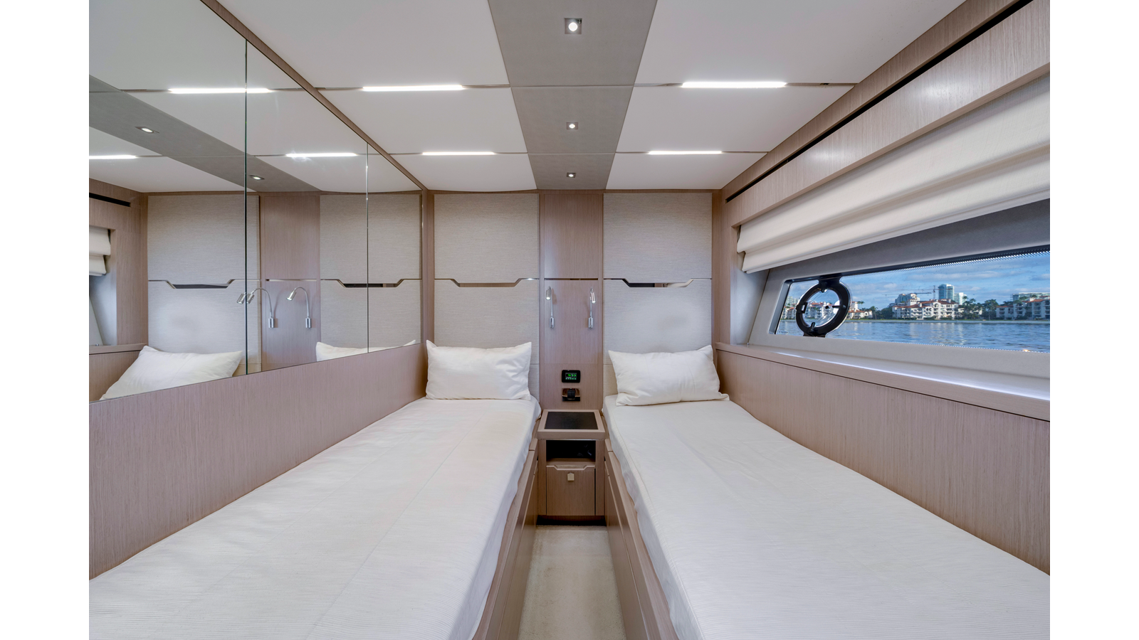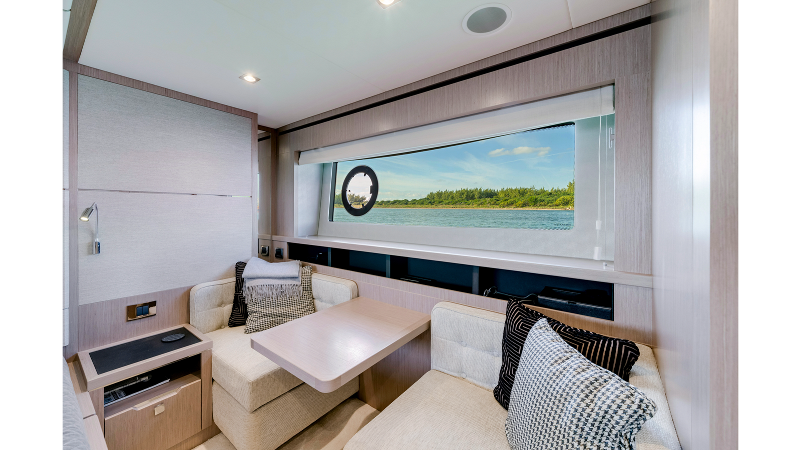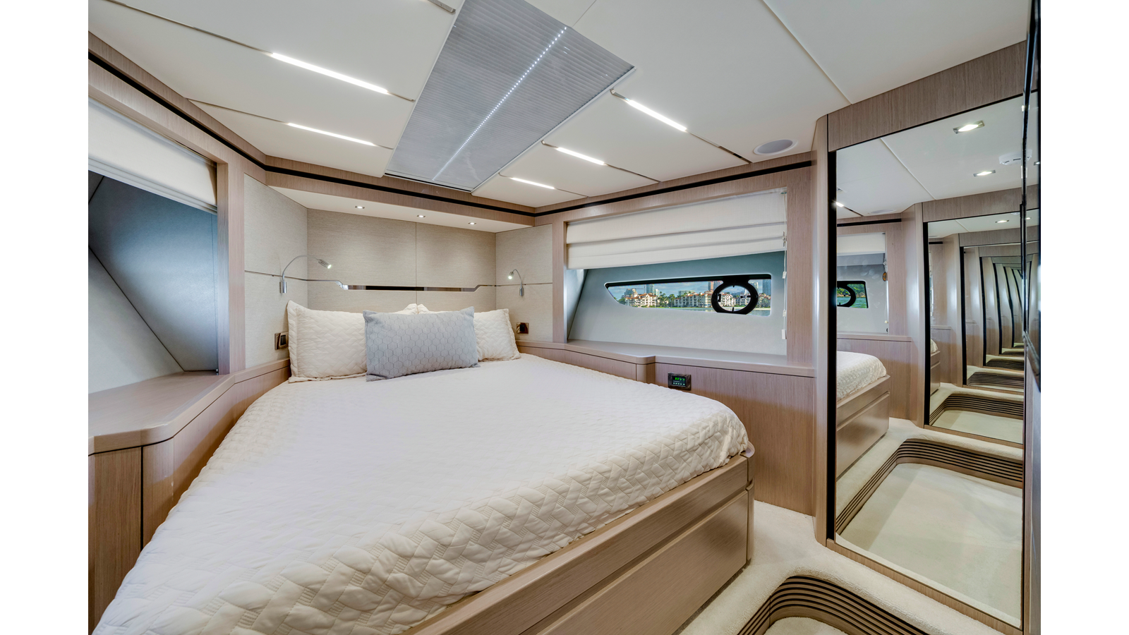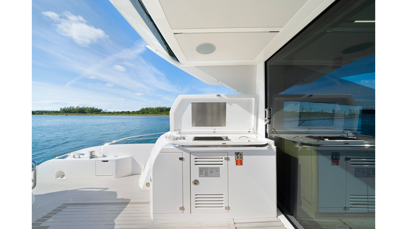 With a large sunroof, frameless windows, a hydraulic swim platform, tender garage, and premium finishes, she blends indoor/outdoor living while delivering the speed, style, and comfort ideal for effortless entertaining.