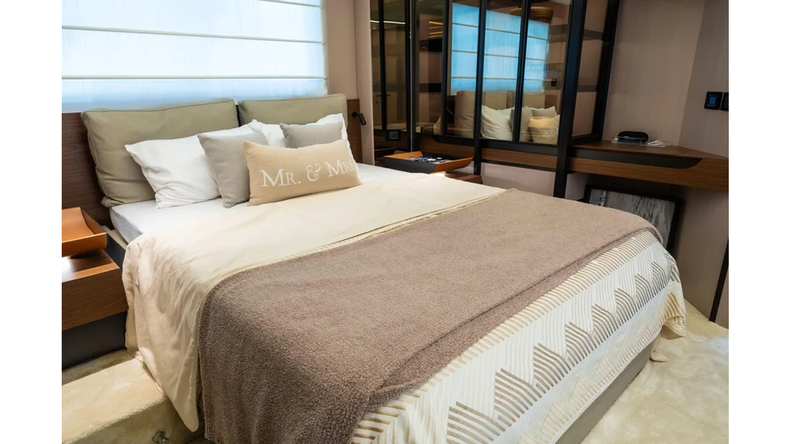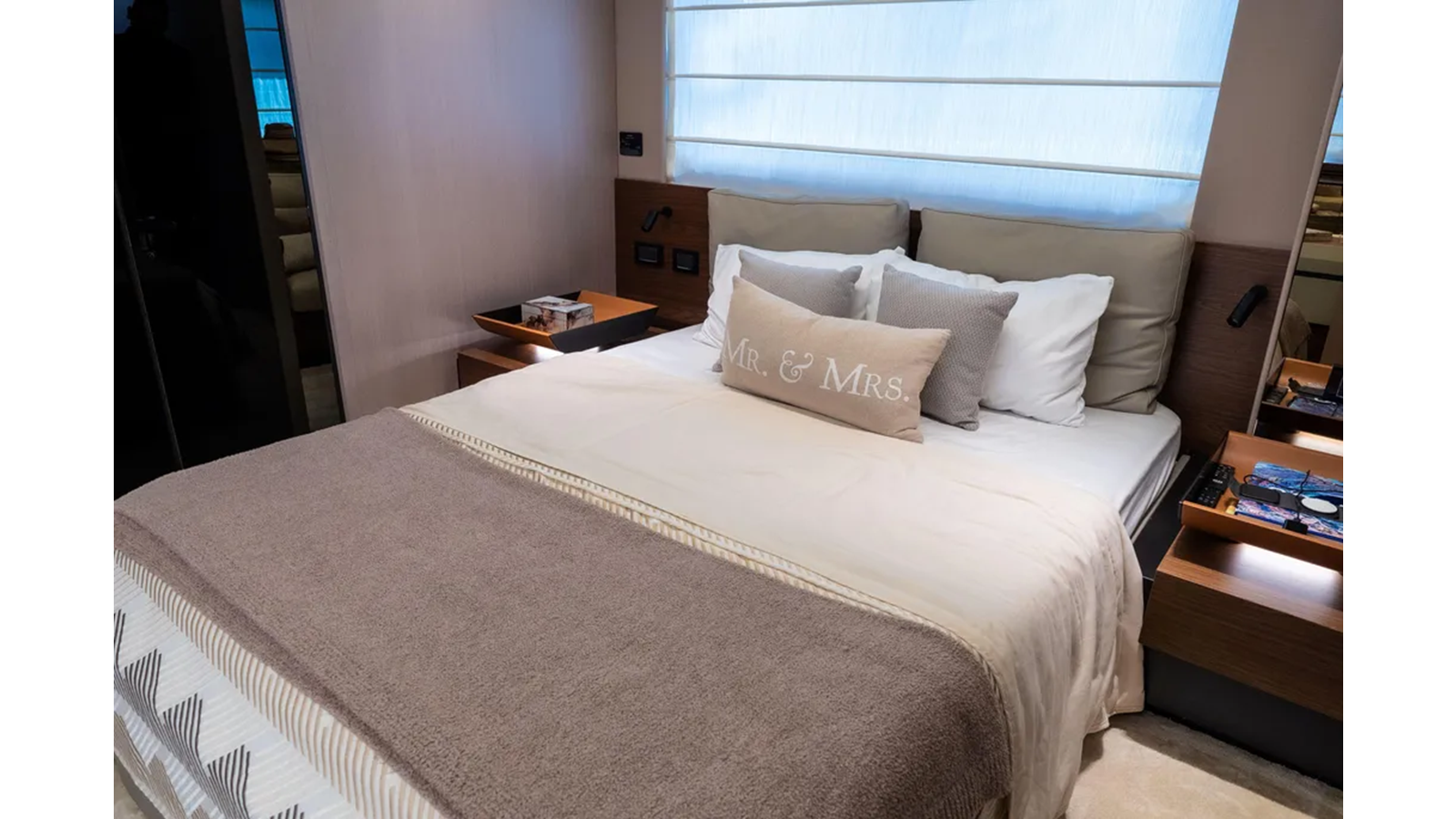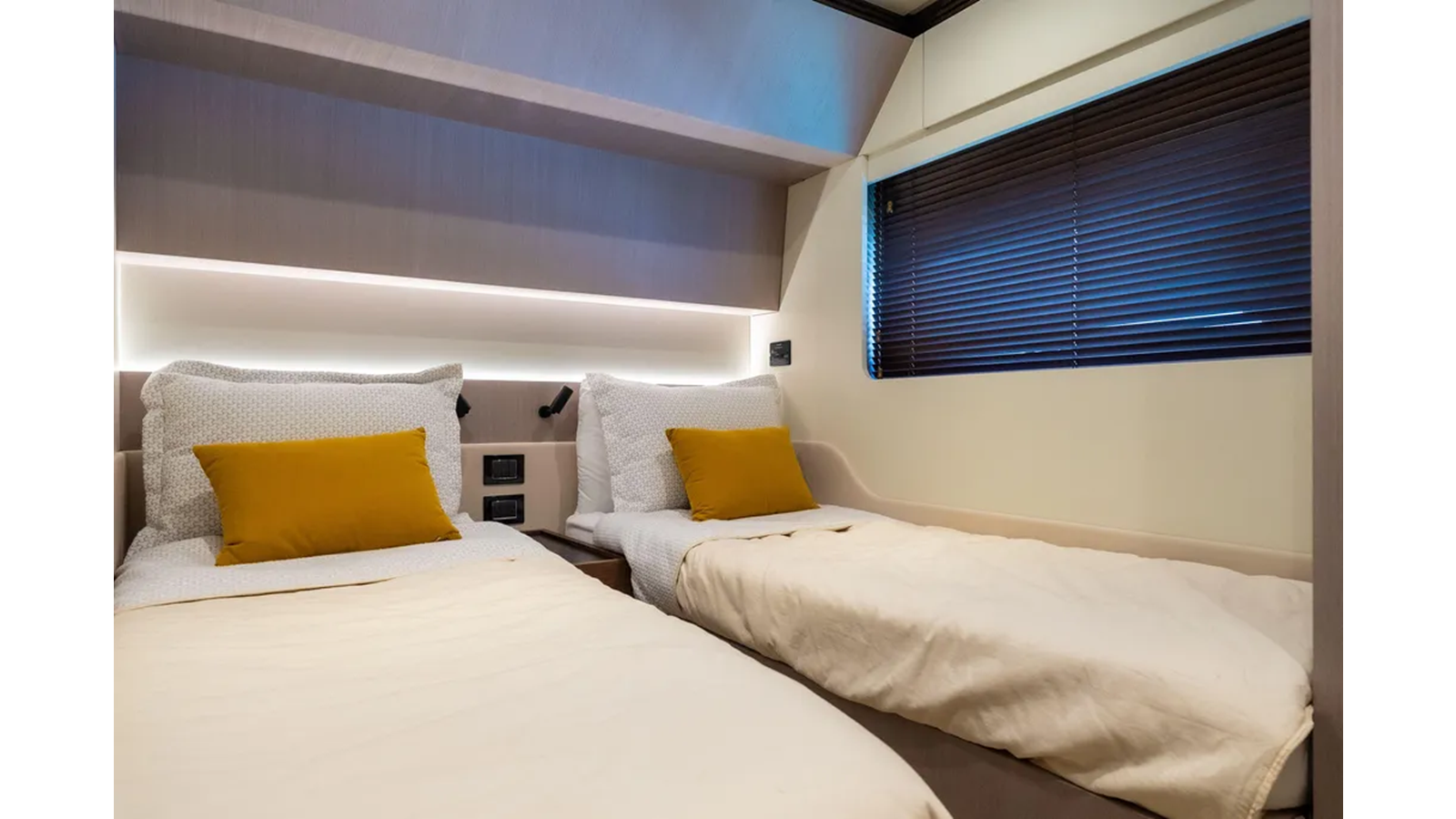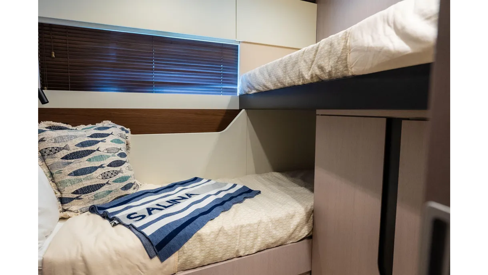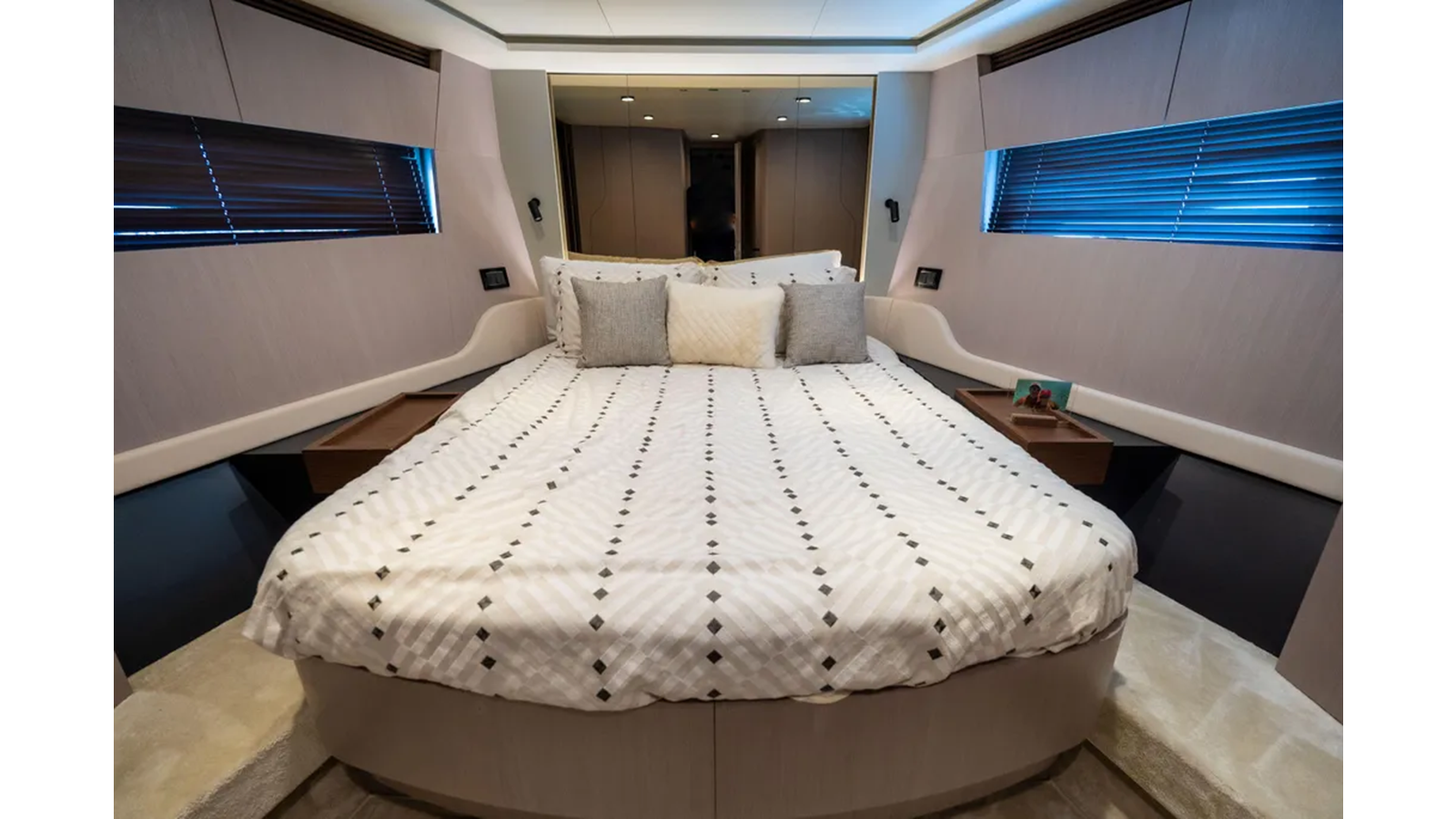 Shaped by an ambitious technological calling to be the most forward-facing sport yacht in her category, the S7 is a paradigm of peak performance and luxurious leisure. A marvel of razor agility and precision, she guarantees the lowest fuel consumption possible and a uniquely quiet allure. The main deck offers a fluid continuum between indoor and outdoor zones, allowing guests to savor their time and space at sea instinctively, in complete and harmonious freedom. Embody an eco-sporty nature with the S7. Thanks to the extensive use of carbon fiber, the adoption of a triple VOLVO IPS engine configuration and a high-efficiency hull, S7 embodies the brand’s revolutionary eco-sport philosophy, delivering maximum performance with a reduction in both fuel consumption and emissions of between 20 and 30% (compared to the traditional propulsion systems), ensuring maximum silence and a sharp, dynamic cruise. The S7’s sporty character is highlighted by her sleek profile, enhanced by the arched line created by the extensive glazing that runs seamless along the superstructure. This magnificent graphical sweep and the cutout bulwarks allow natural light to fill the interiors as much as possible. The carbon fiber-enhanced superstructure offers more spacious environments while maintaining excellent levels of performance and stability. The interior lounge is cool and modernly organized, flooded with light from the large side windows. A deep knowledge of life at sea cultures the latest trends and original design concepts by interior designer Yachtique to realize a dynamic and divergent interior scheme for the S7. The neutral palette of matte-finished colors is at once cozy and chic, softening the sleek, modern furnishings. The surfaces and spaces are designed to minimize obstacles and enhance continuity, expressing the series’ sporty DNA on the inside as well. S7 is the dream boat for contemporary owners who are dynamic and sporty, who love cruising in grand style and in absolute safety, and who also like to keep a close eye on sustainability.