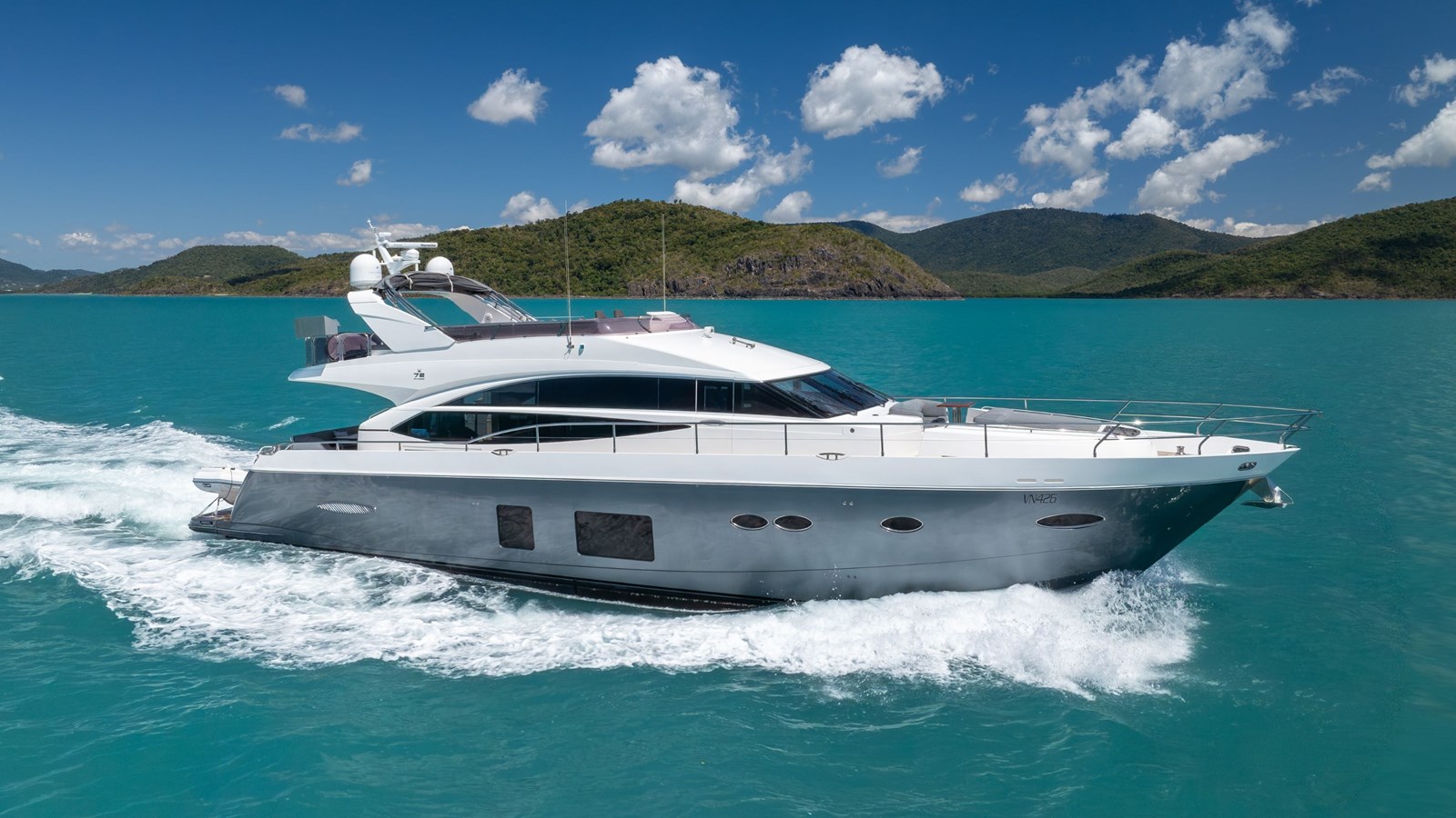Built to the highest standards with every option, ABOUT TIME is perfect for luxurious coastal cruising or extended offshore adventures. Measuring 73’ 4” with an 18’ beam , she offers spacious living across all decks. Twin 1,600HP CAT C32 engines deliver high-speed, long-range performance, supported by a 5,000-litre fuel capacity and Princess’s renowned hull design.