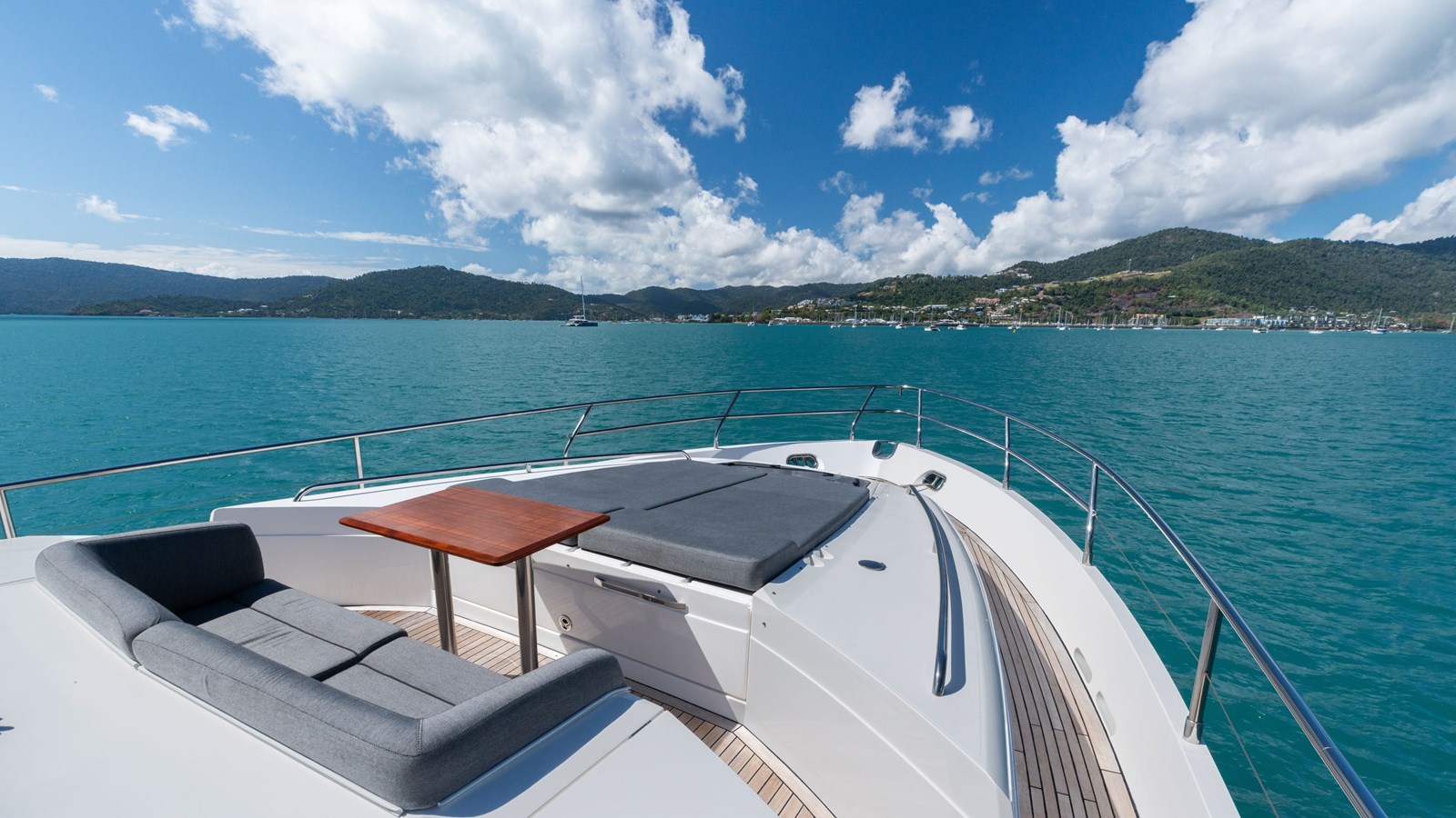 Spacious bow seating and dining for sunrise breakfasts or sunset cocktails