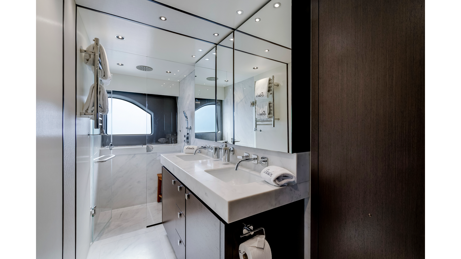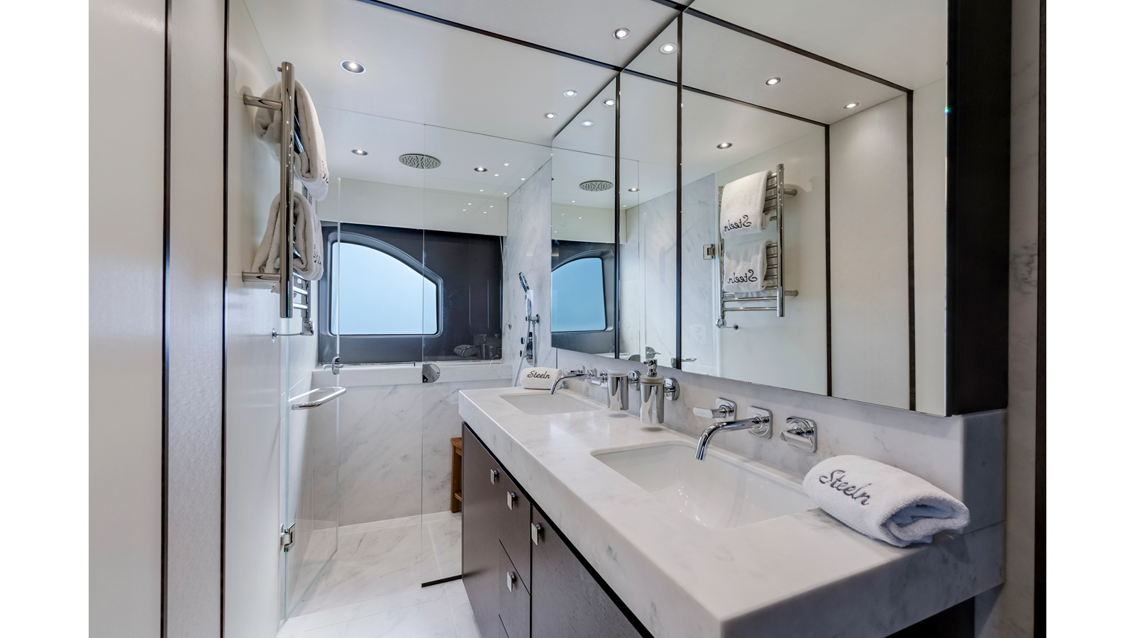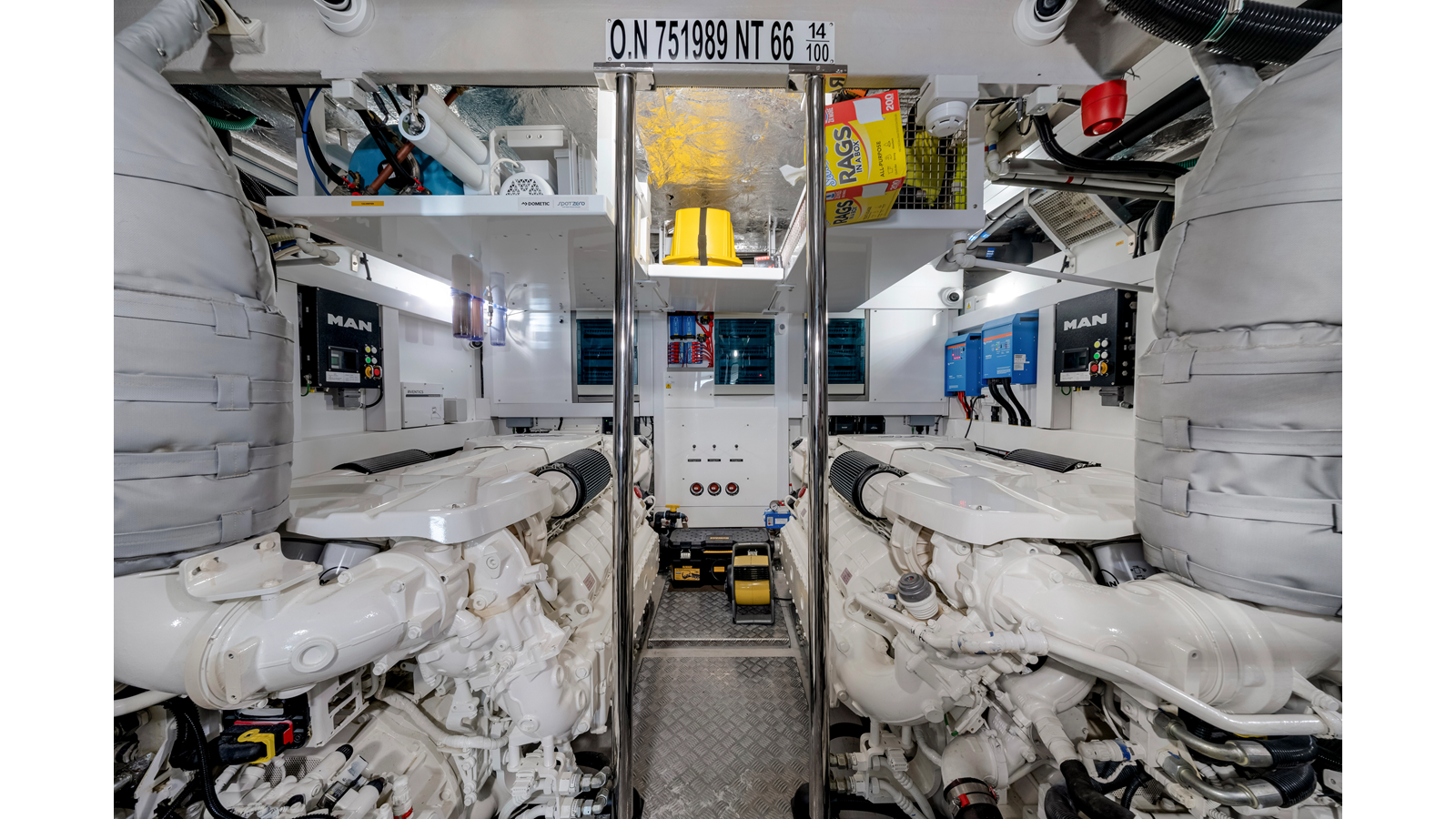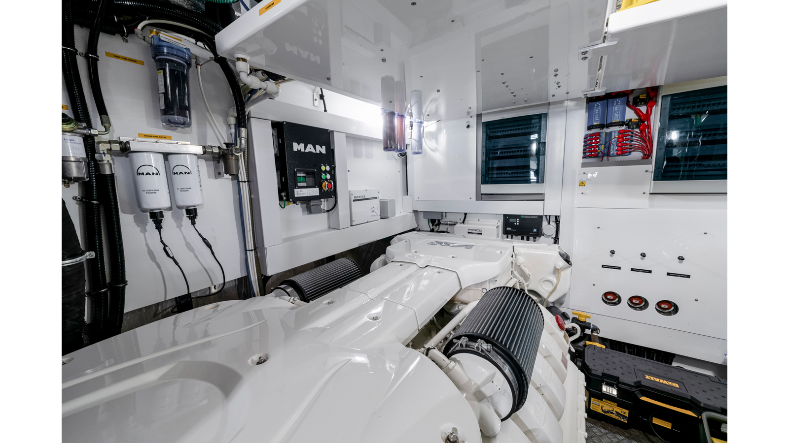 - Fin stabilized and at anchor with Bow and Stern Thruster for easy maneuvering.