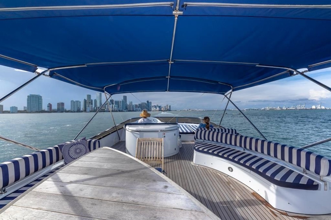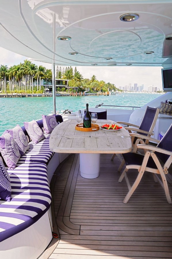Yacht for sale is a 2003 SUNSEEKER 82' "ALAINA" Motor Yacht in Miami Beach, Florida, USA. The 82' Sunseeker Yacht offers luxurious accommodation for up to eight guests across four beautifully appointed staterooms. The expansive Master Suite and VIP Stateroom are complemented by two additional guest cabins — one with twin beds and the other with bunks — each thoughtfully designed for comfort and style. Every stateroom is finished to an exceptional standard, featuring rich materials, elegant details, generous storage, and a private en-suite head.