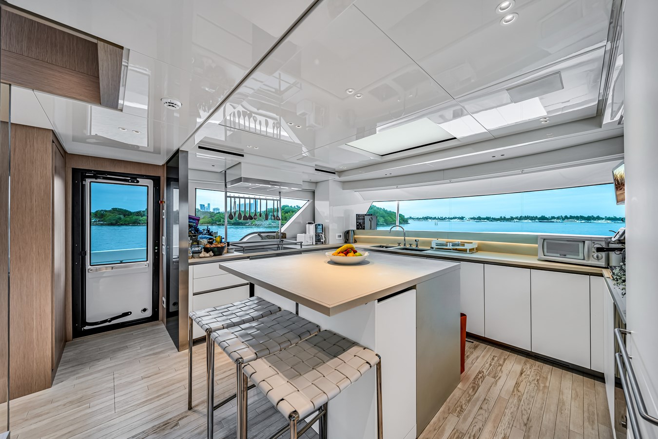 🔹 Unique Layout – Custom forward country-style kitchen on main deck with full panoramic windows.
