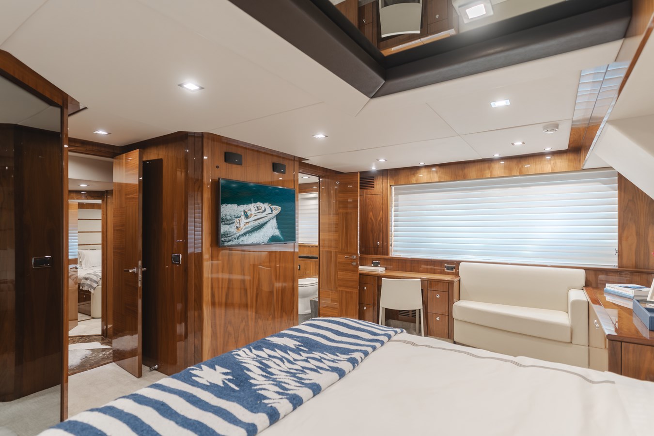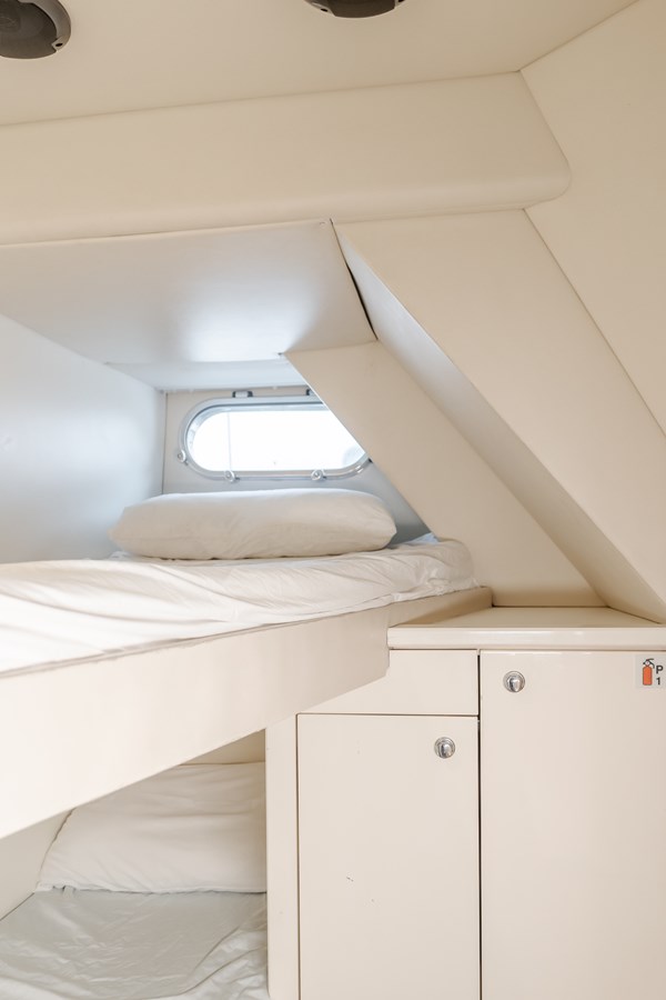 "Indecent Proposal 4" has been cared for meticulously by her owner, with no expenses spared throughout the years. All mechanical services are up to date on her MTU main engines and brand-new upgraded Kohler generators. She boasts four large staterooms, each with ensuite heads, and a day head on the main deck. Equipped with zero-speed fin stabilization, ensuring a comfortable ride underway, or at anchor.