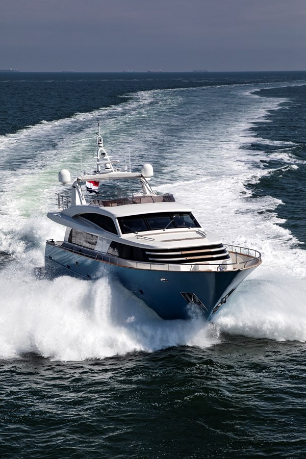 2021 Van der Valk HELGA - 27.3m Motor Boat Details & SpecsThe fifth hull in the Van der Valk Raised Pilothouse M/Y range, HELGA was designed inside and out by Guido de Groot and sports an instantly recognizable pastel-blue hull.